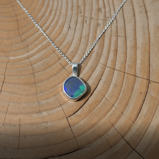 Silver pendant with a Lightning Ridge doublet, 8x8mm approx.