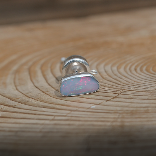 Silver tie tack with beautiful Lightning Ridge crystal opal.