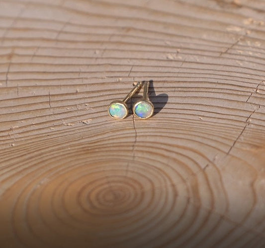 Brilliant 3mm 18k gold ear studs|earrings|gem opal