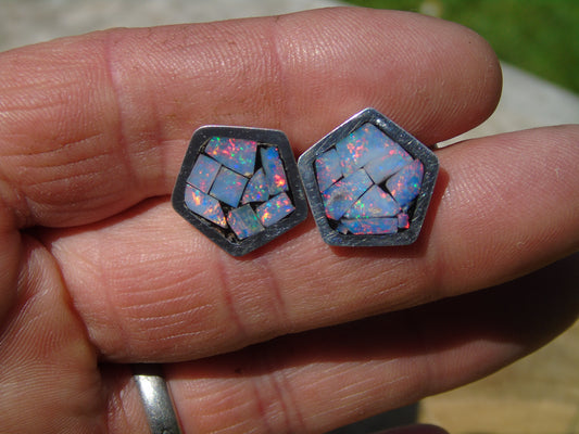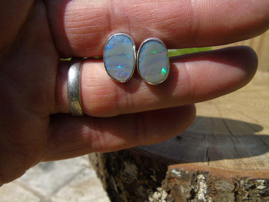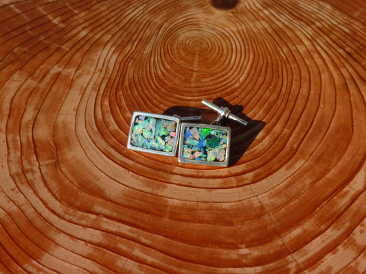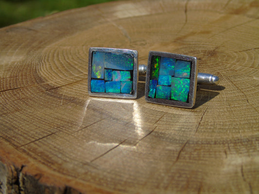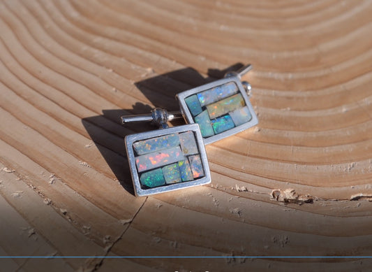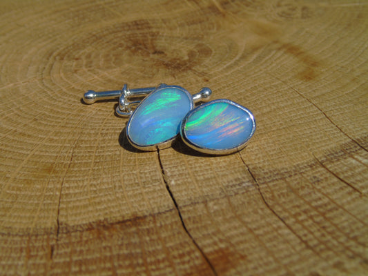 Sterling Silver opal cufflinks, with semi-black Lightning Ridge opals