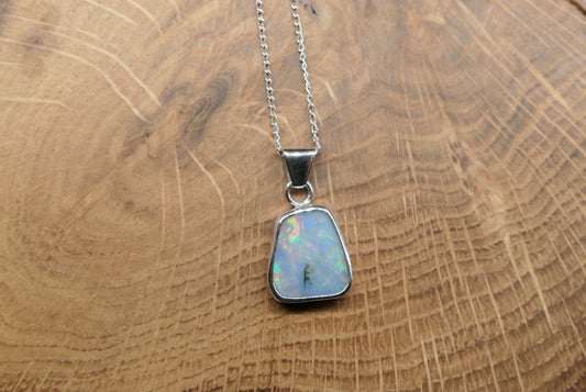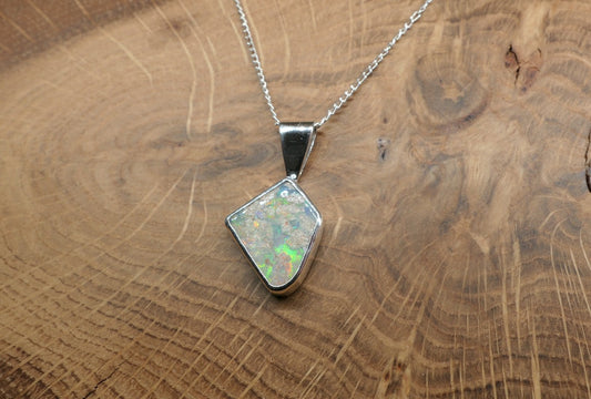Silver opal pendant with a Mintabie solid opal