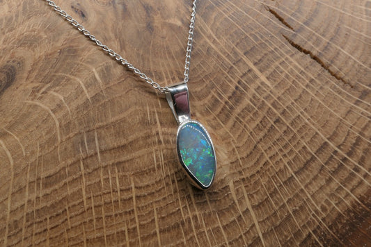 Silver pendant with a Lightning Ridge doublet