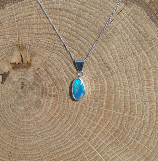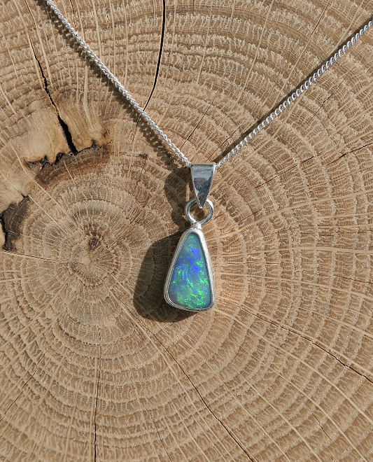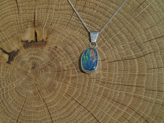 Lightning Ridge doublet silver pendant