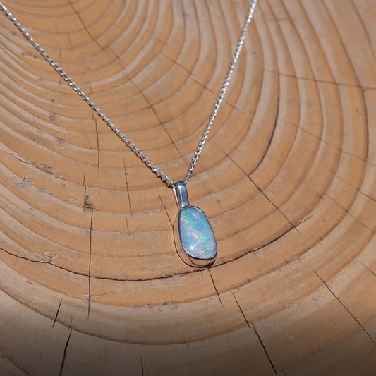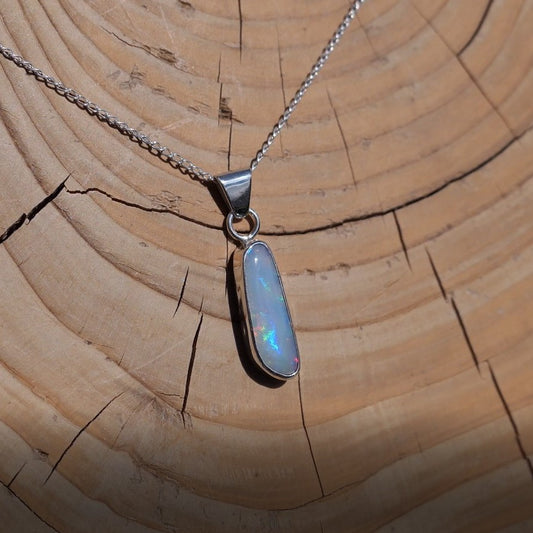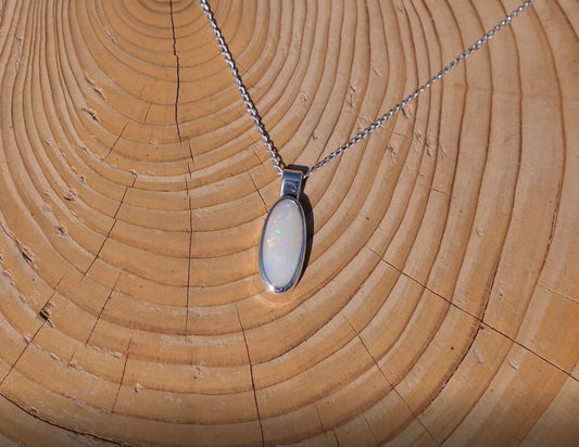 Silver opal pendant with white base Coober Pedy opal, bright multicoloured pinfire