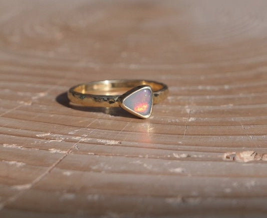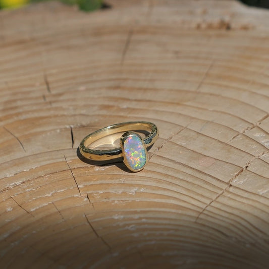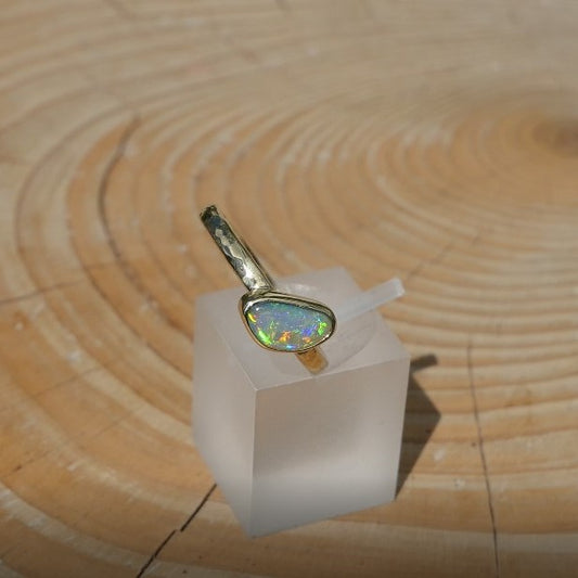 Coober Pedy opal ring with 18k gold bezel size N-1/2