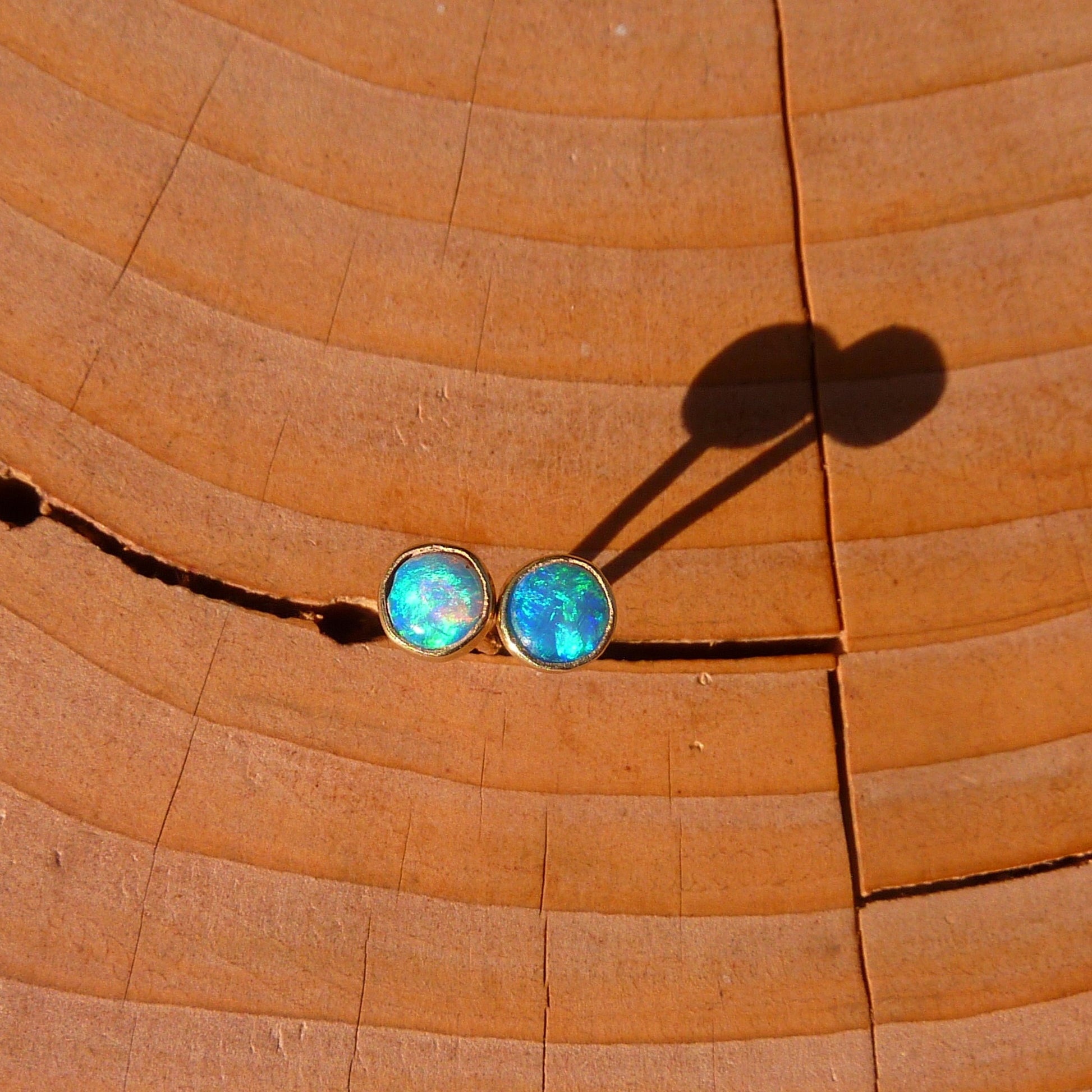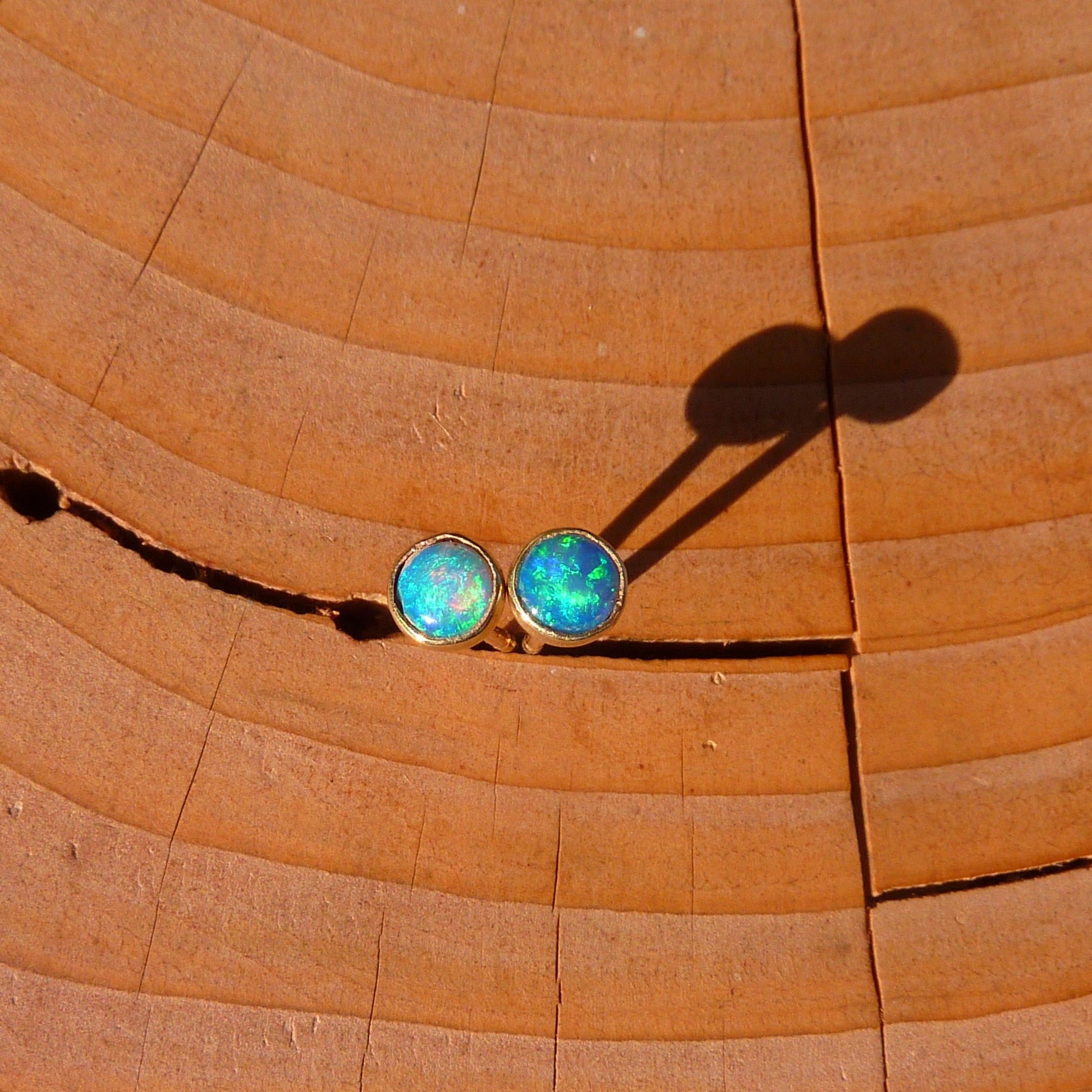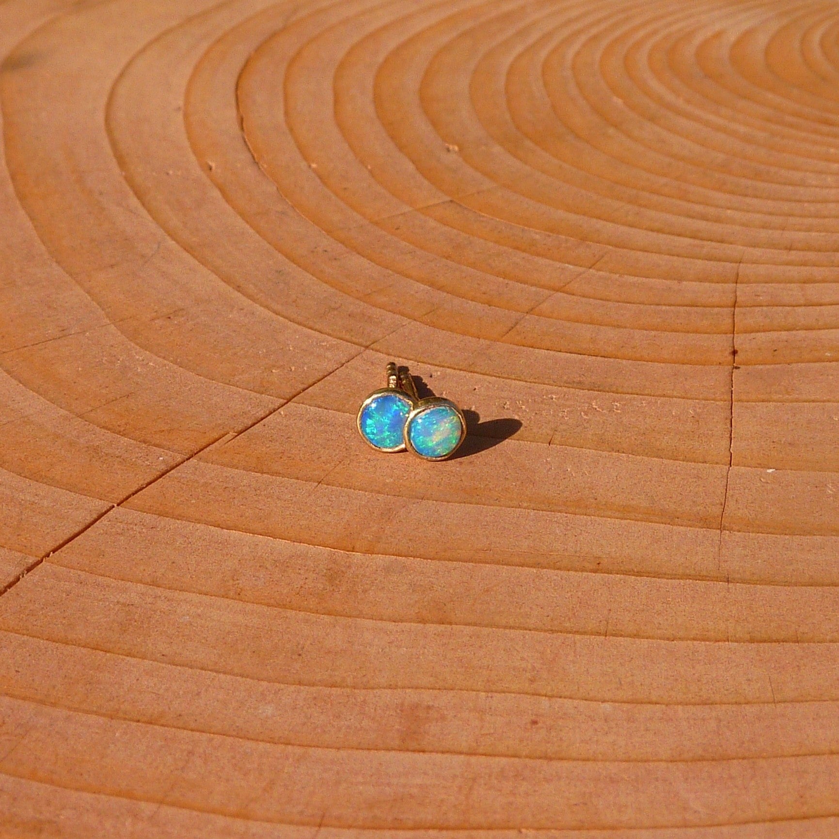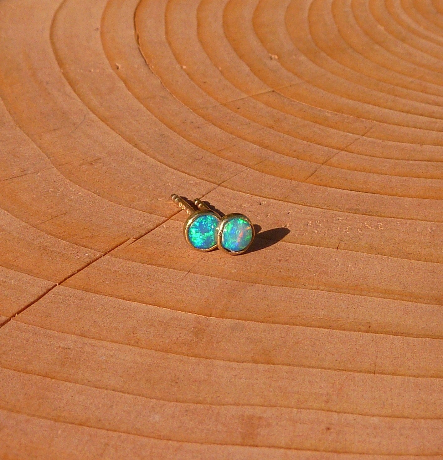 Opals are solid Lightning Ridge, very bright blue and greens.