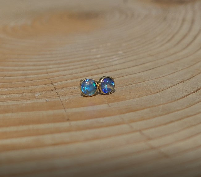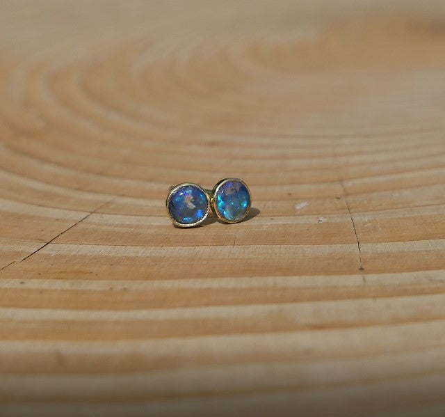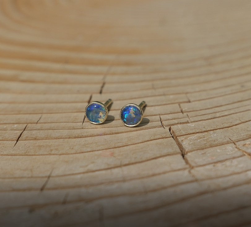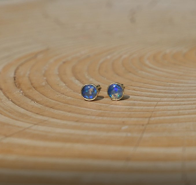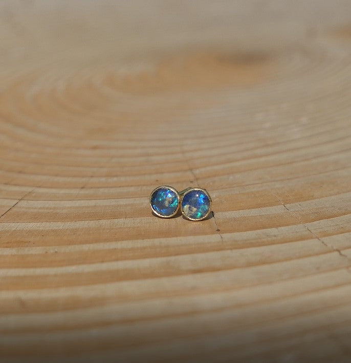 4mm 18k gold earstuds with brilliant blue flash