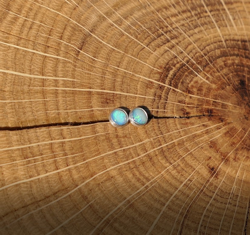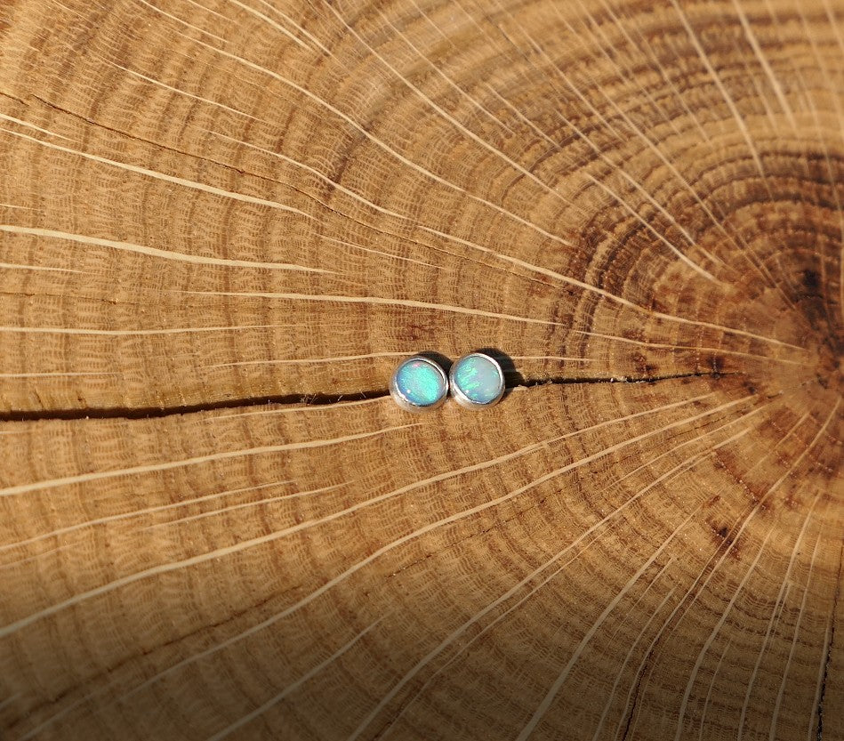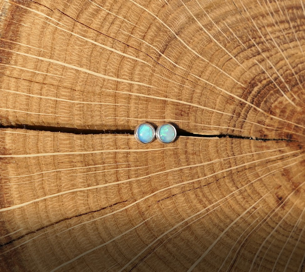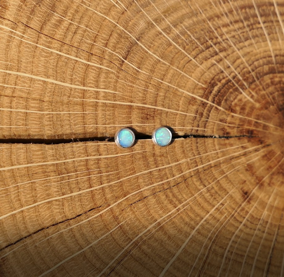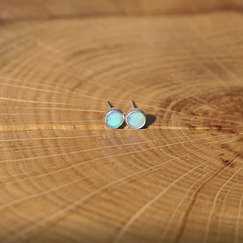 Solid 4mm silver opal earstuds.