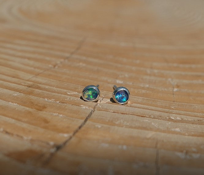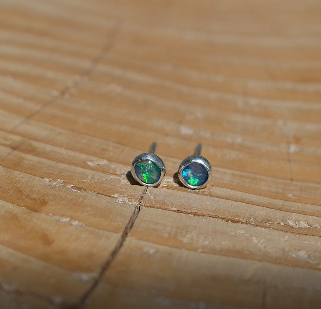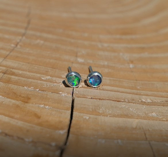 Show off your refined style with these luxurious 4mm silver earstuds. Featuring vibrant Lightning Ridge opals, these earstuds boast mesmerizing flashes of green and blue. Perfect for adding subtle sparkle to any outfit, these earstuds are guaranteed to make you stand out from the crowd.