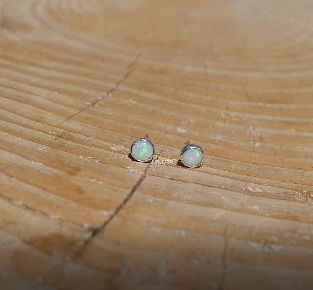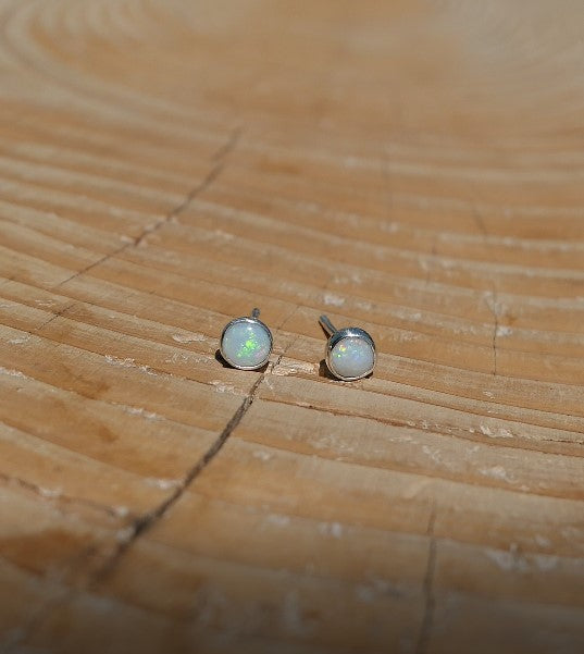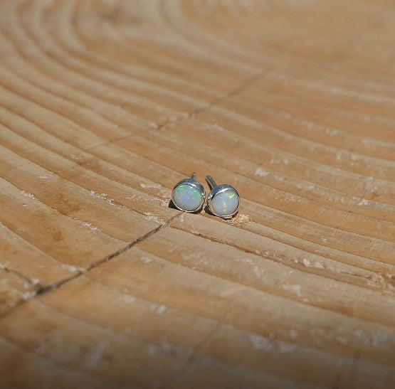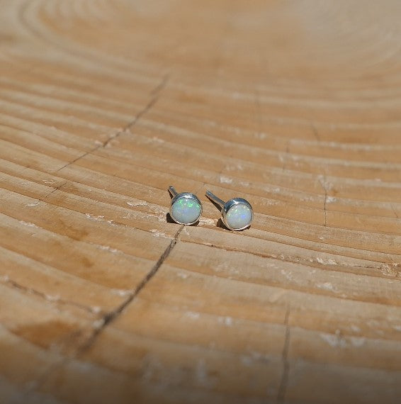 Adorn your ears with these 4mm silver earstuds, sparkling with a rainbow of captivating colours against an elegant white opal base.