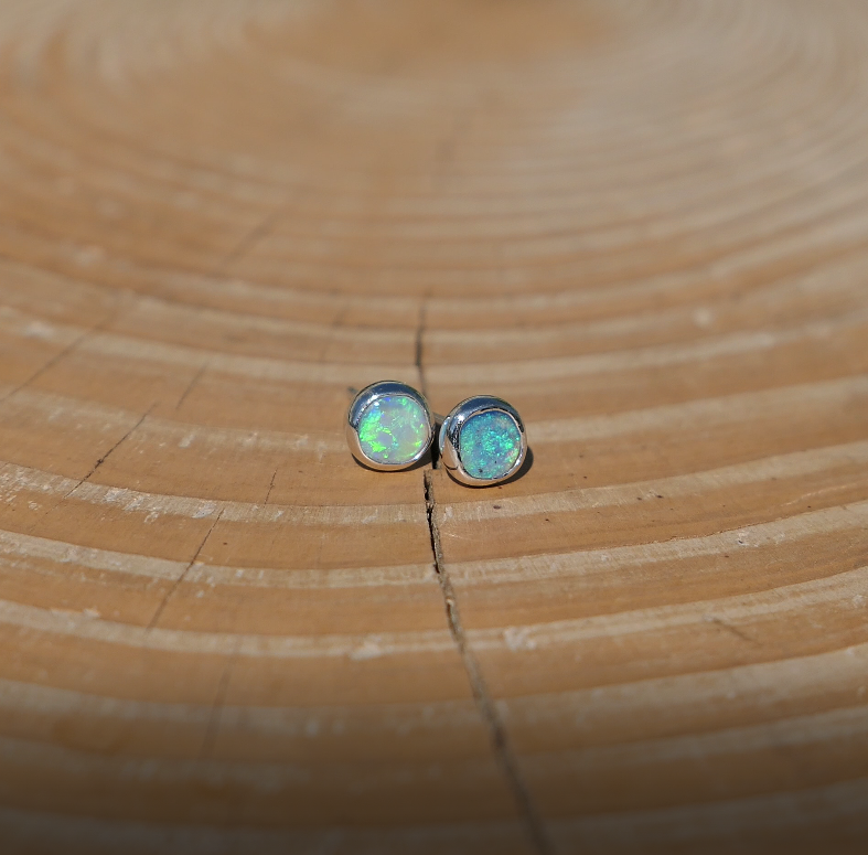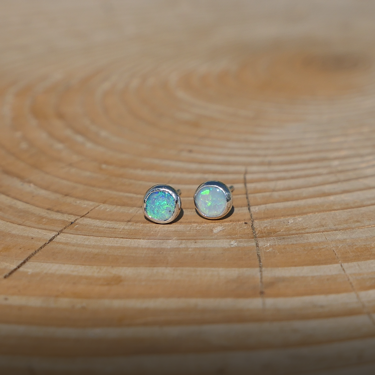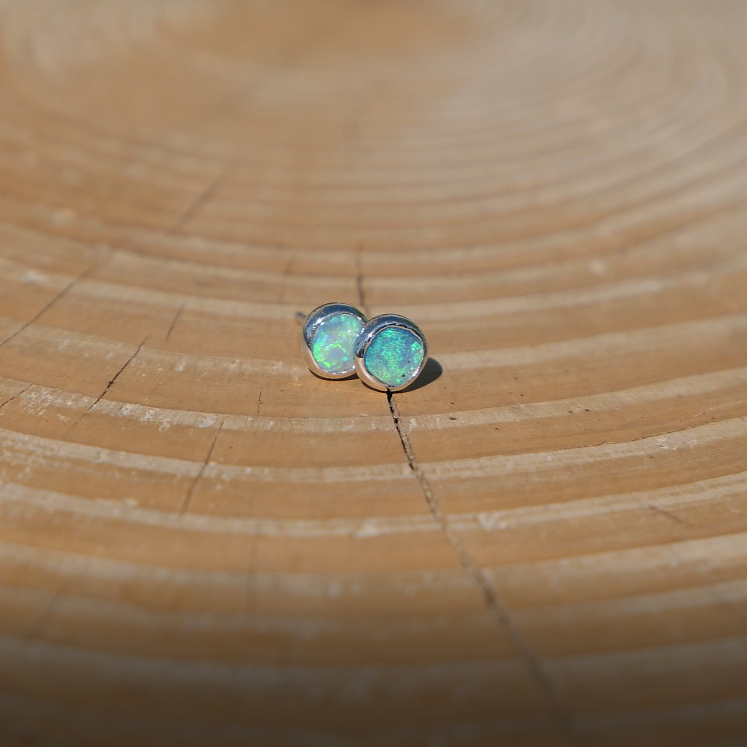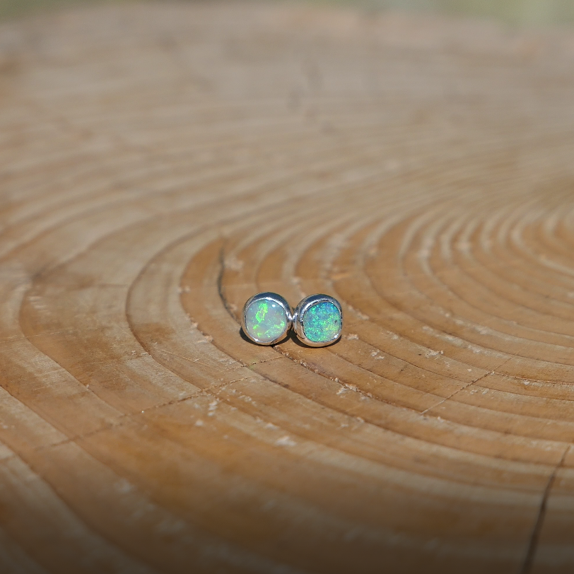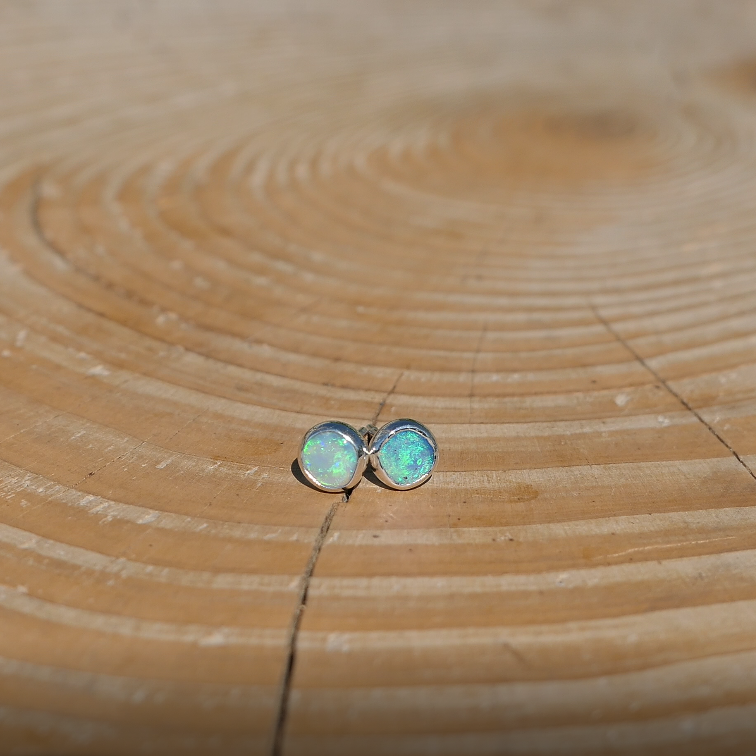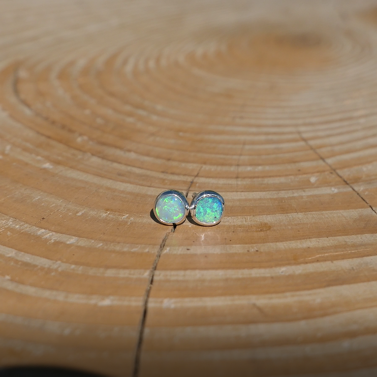 5mm silver earstuds with light green opals, nice, very bright colours.