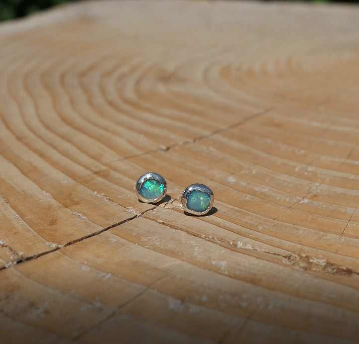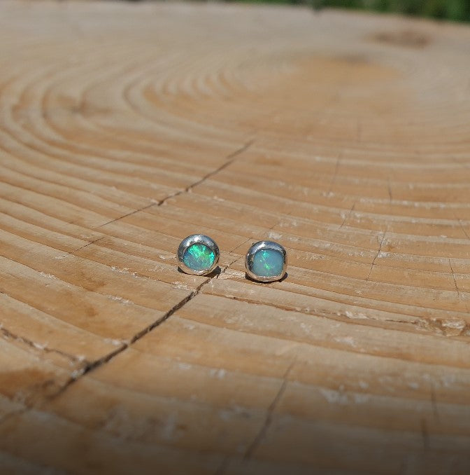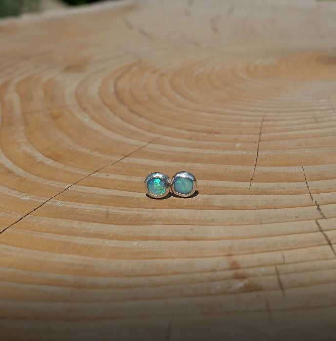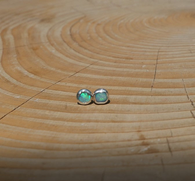 5mm silver earstuds with bright green solid opals from Coober Pedy