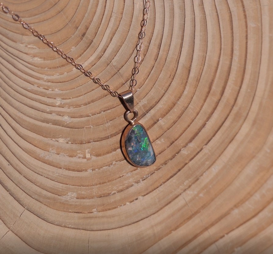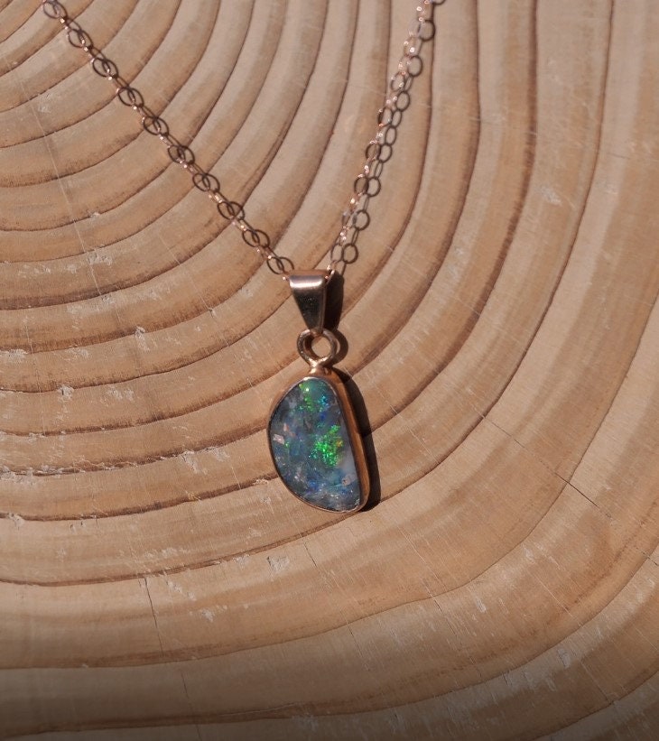 9k rose gold opal pendant necklace