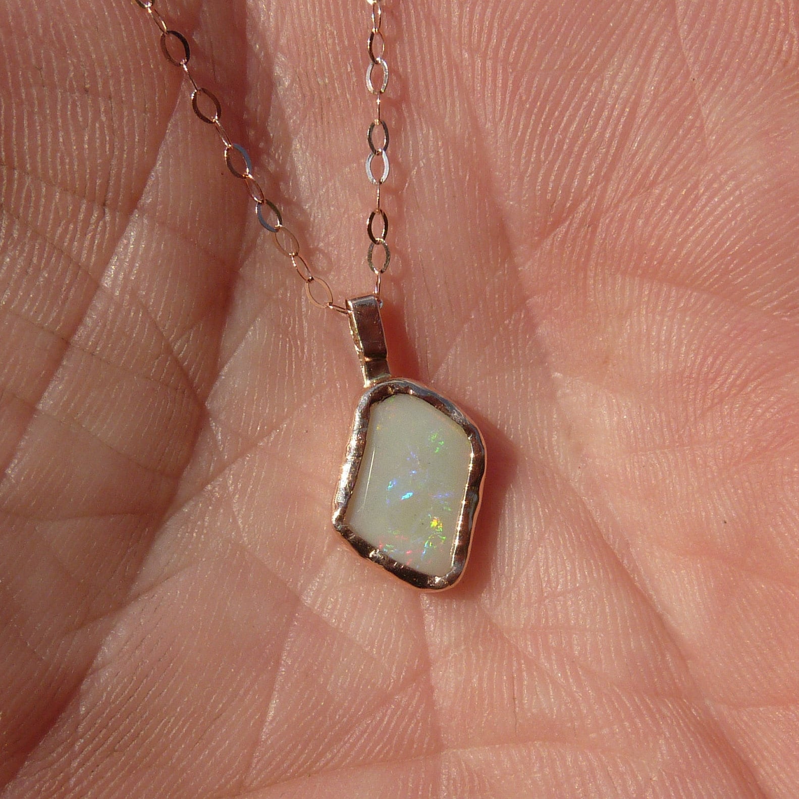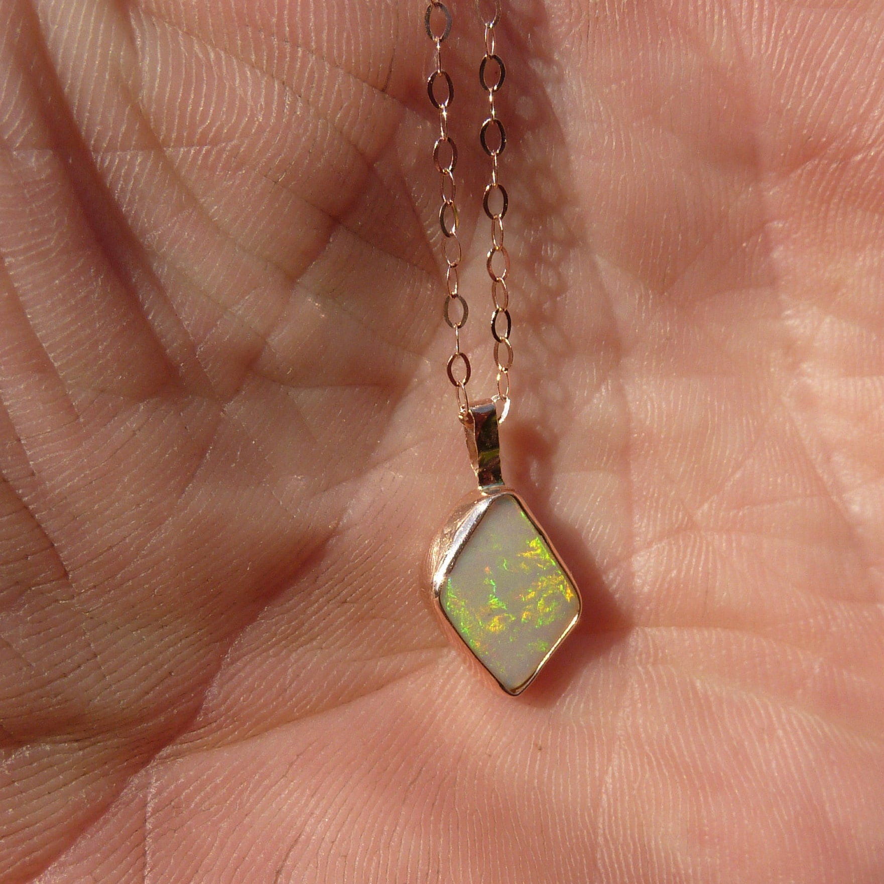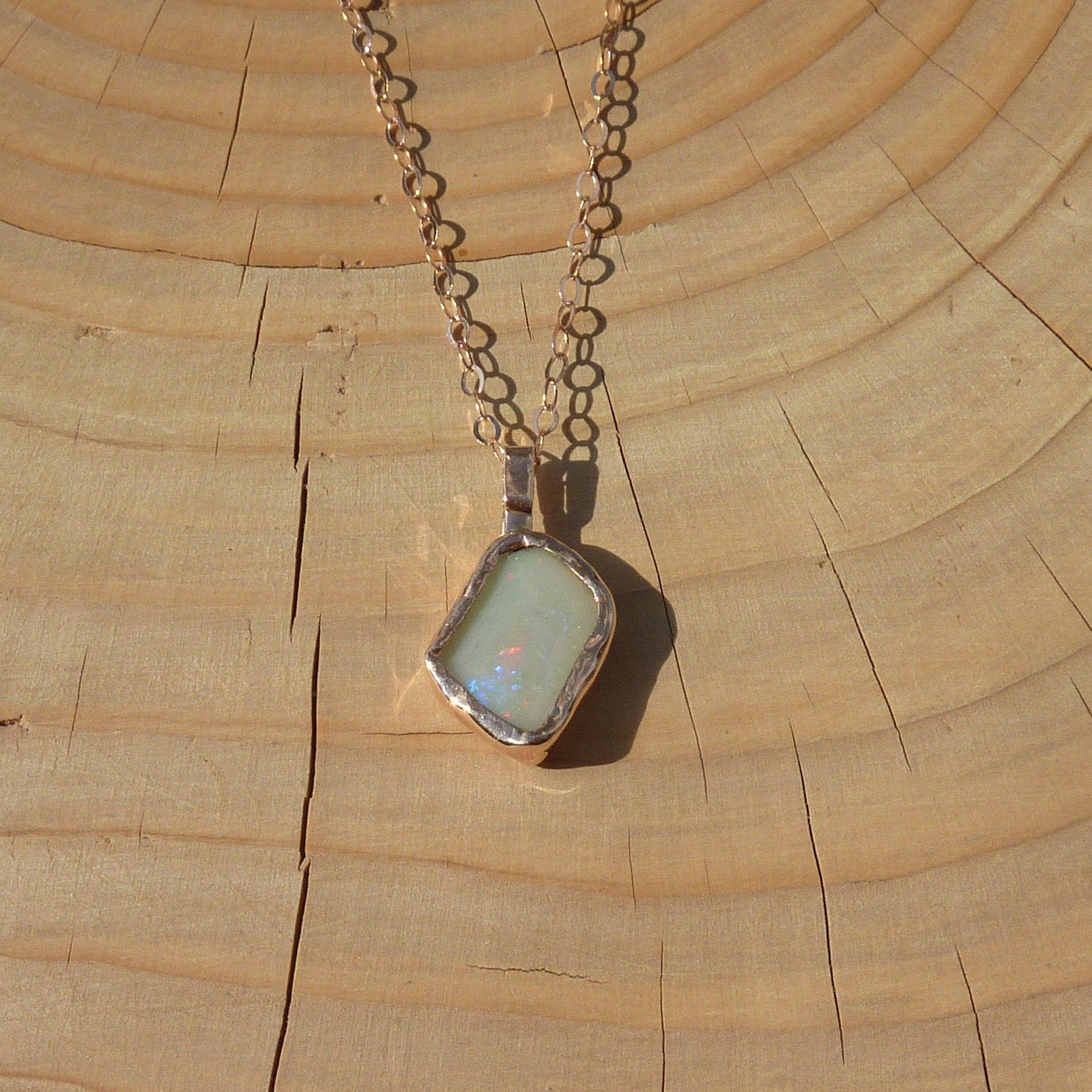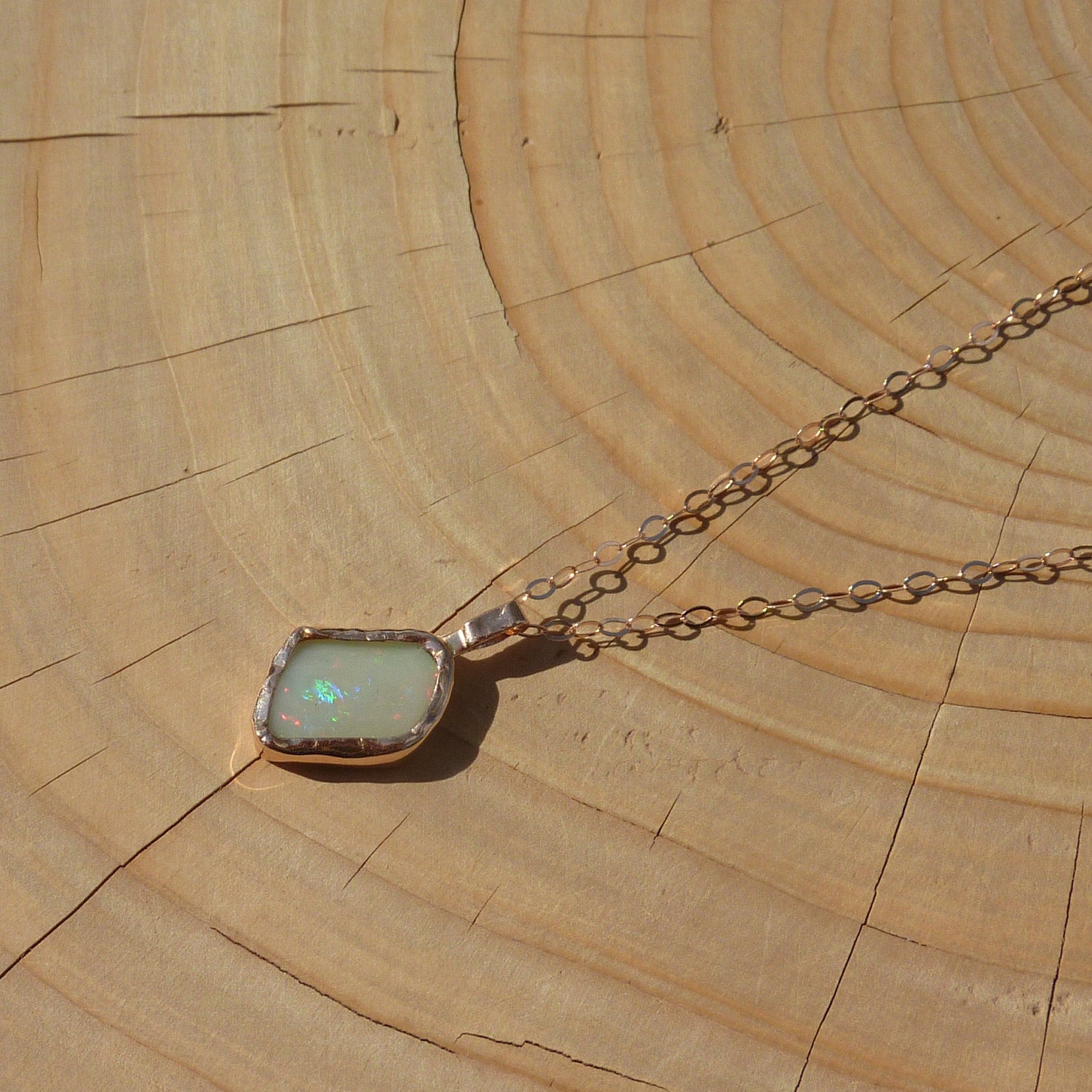 9k rose gold unique double sided opal pendant