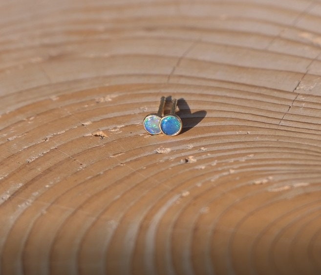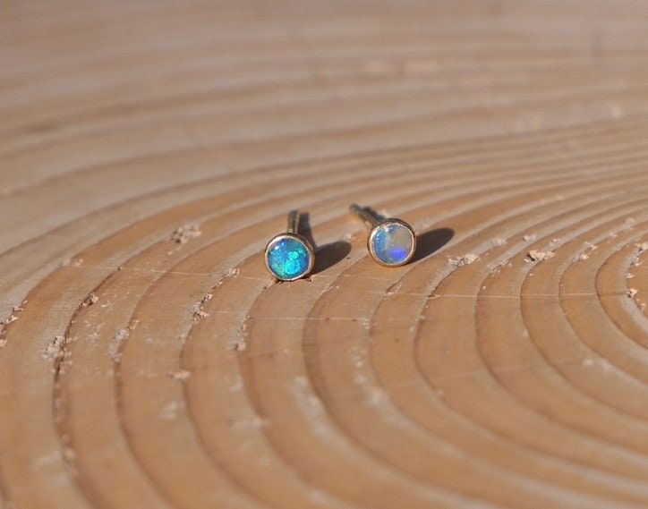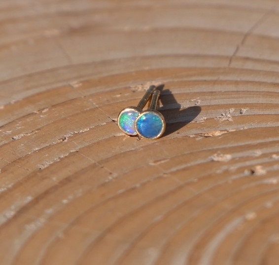 Brilliant 4mm 18k gold ear studs|earrings|gem opal