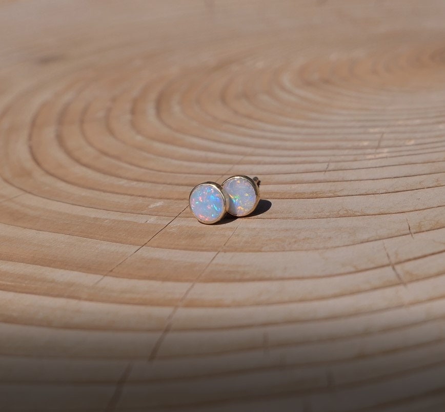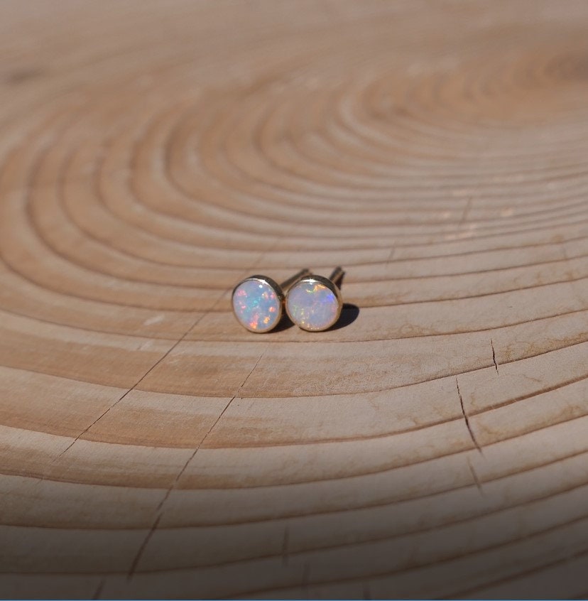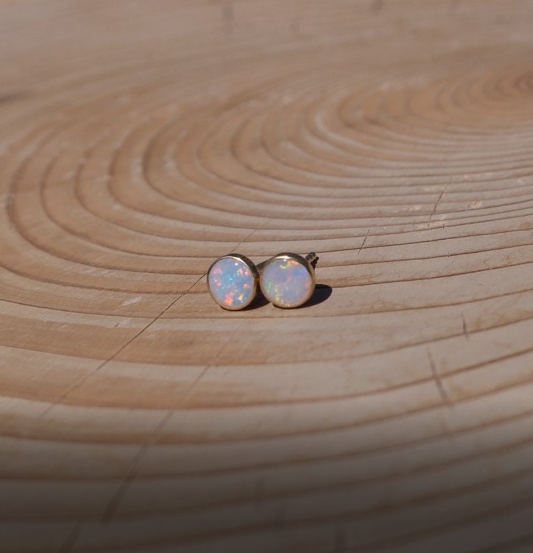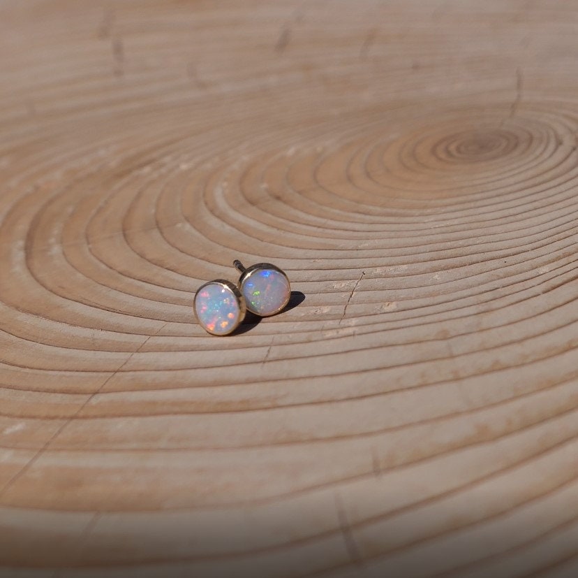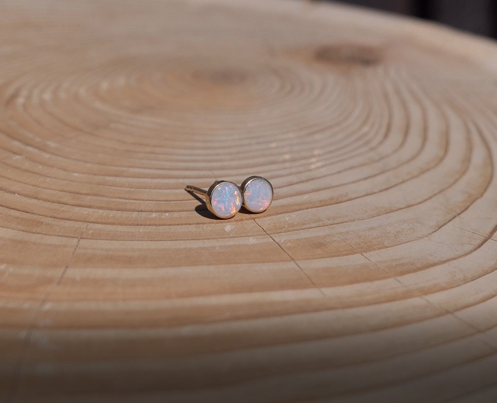 Brilliant 5mm 18k gold ear studs|earrings|gem opal