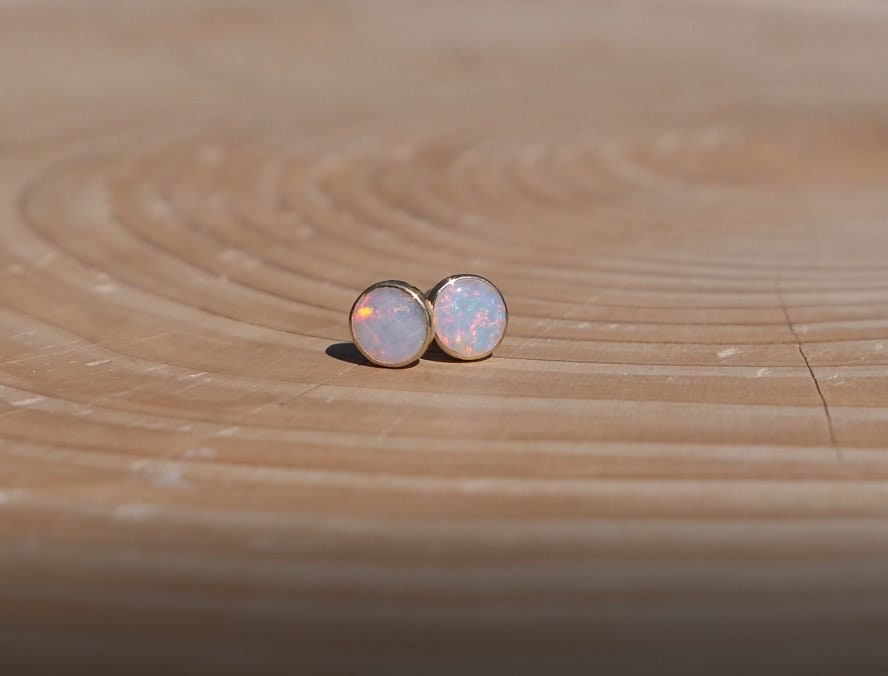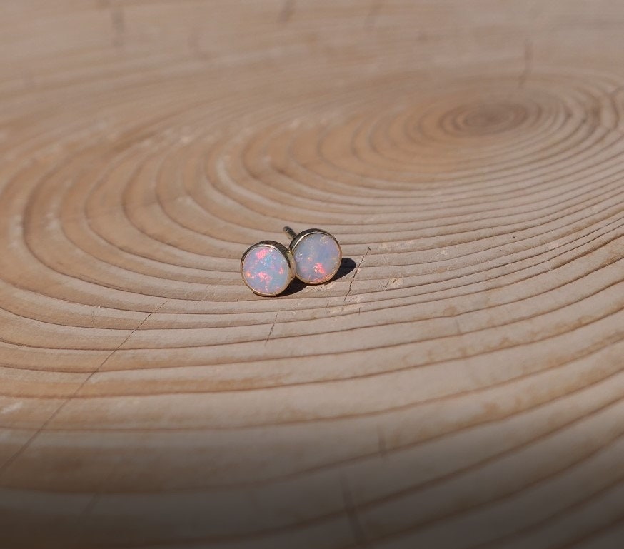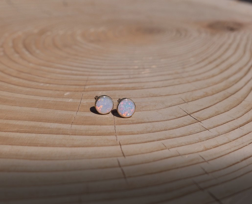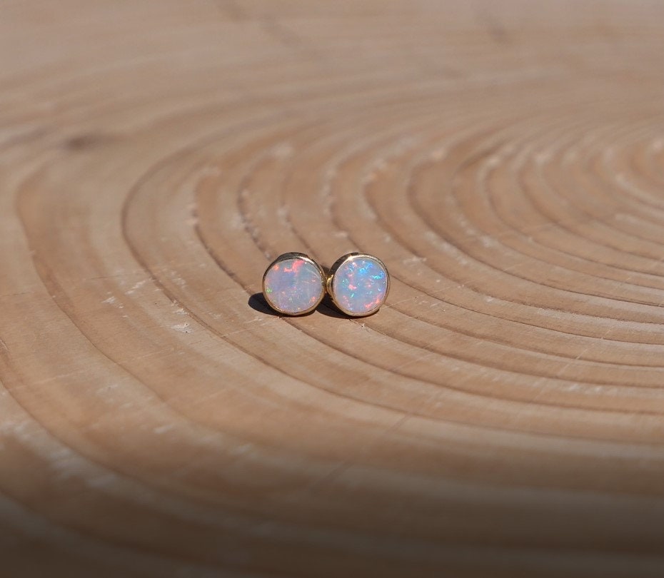 Brilliant 5mm 18k gold ear studs|earrings|gem opal