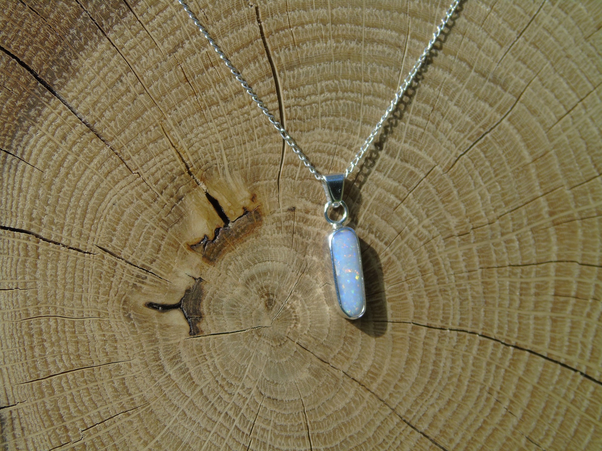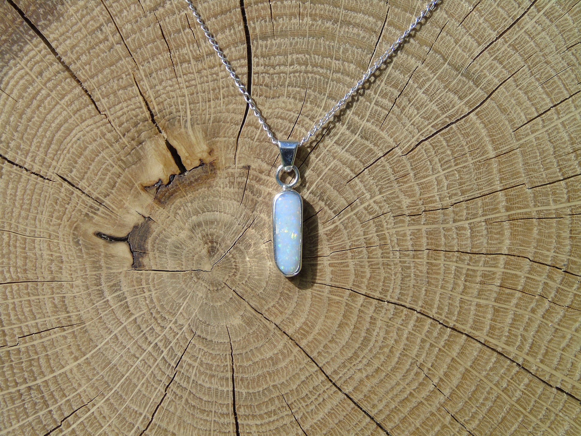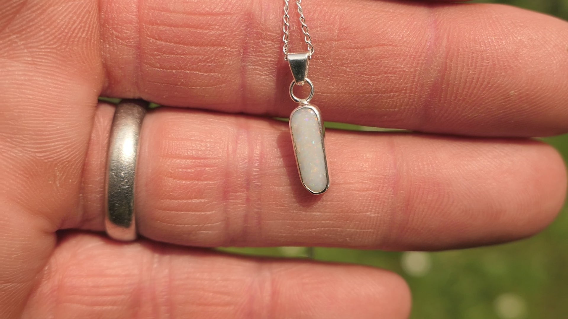 Pendant measures 18x5mm overall, opal 13x5mm.