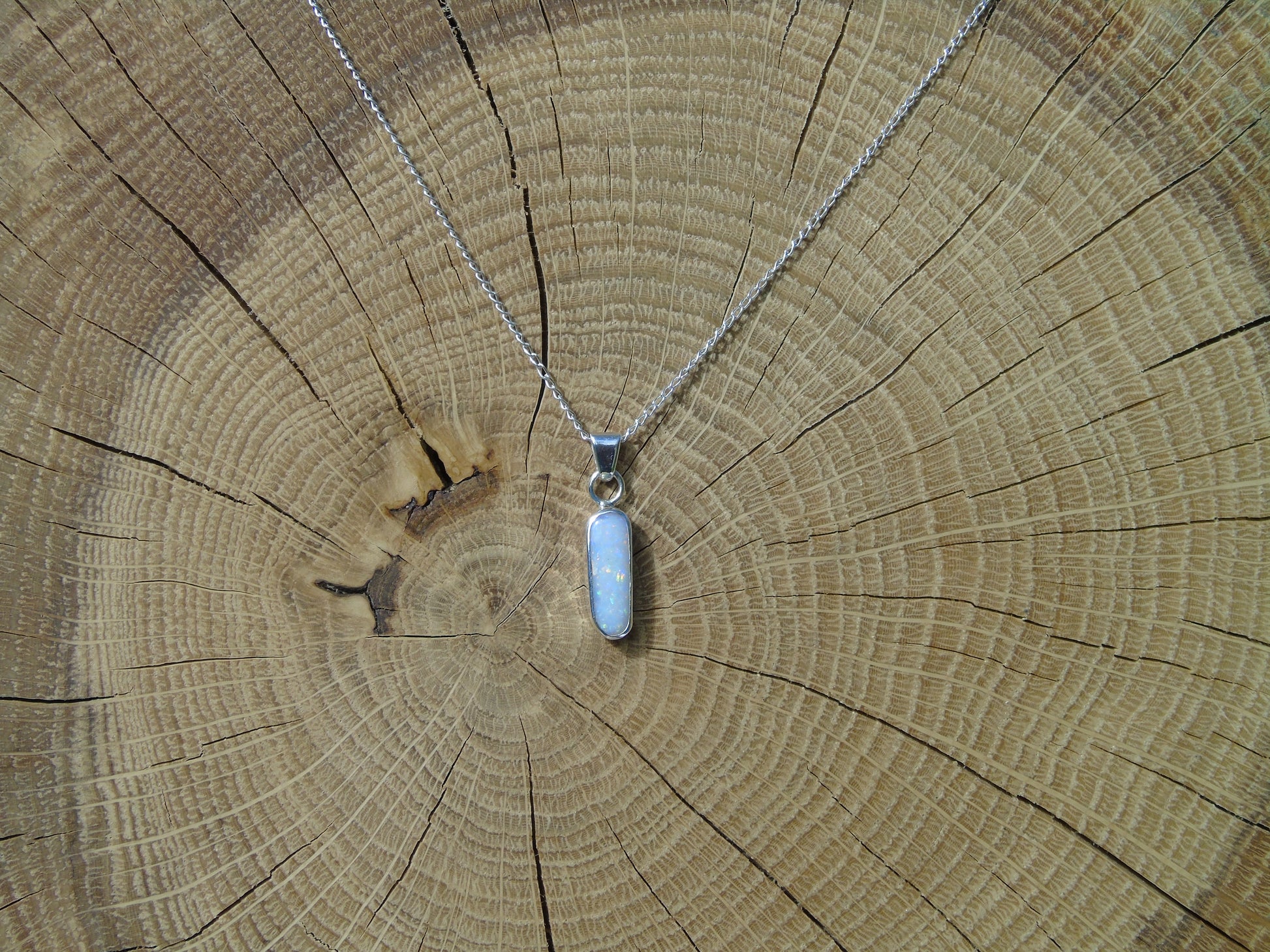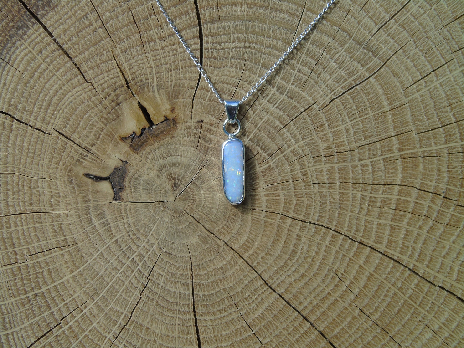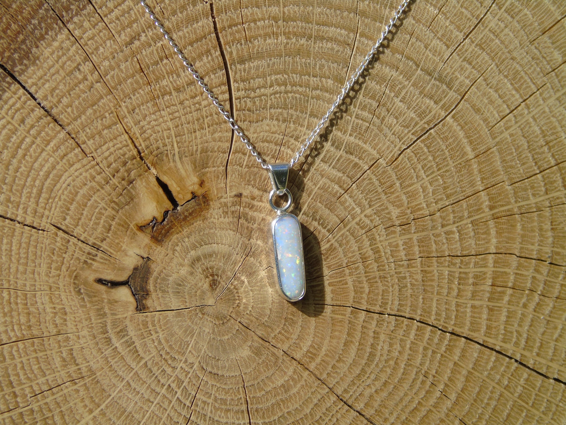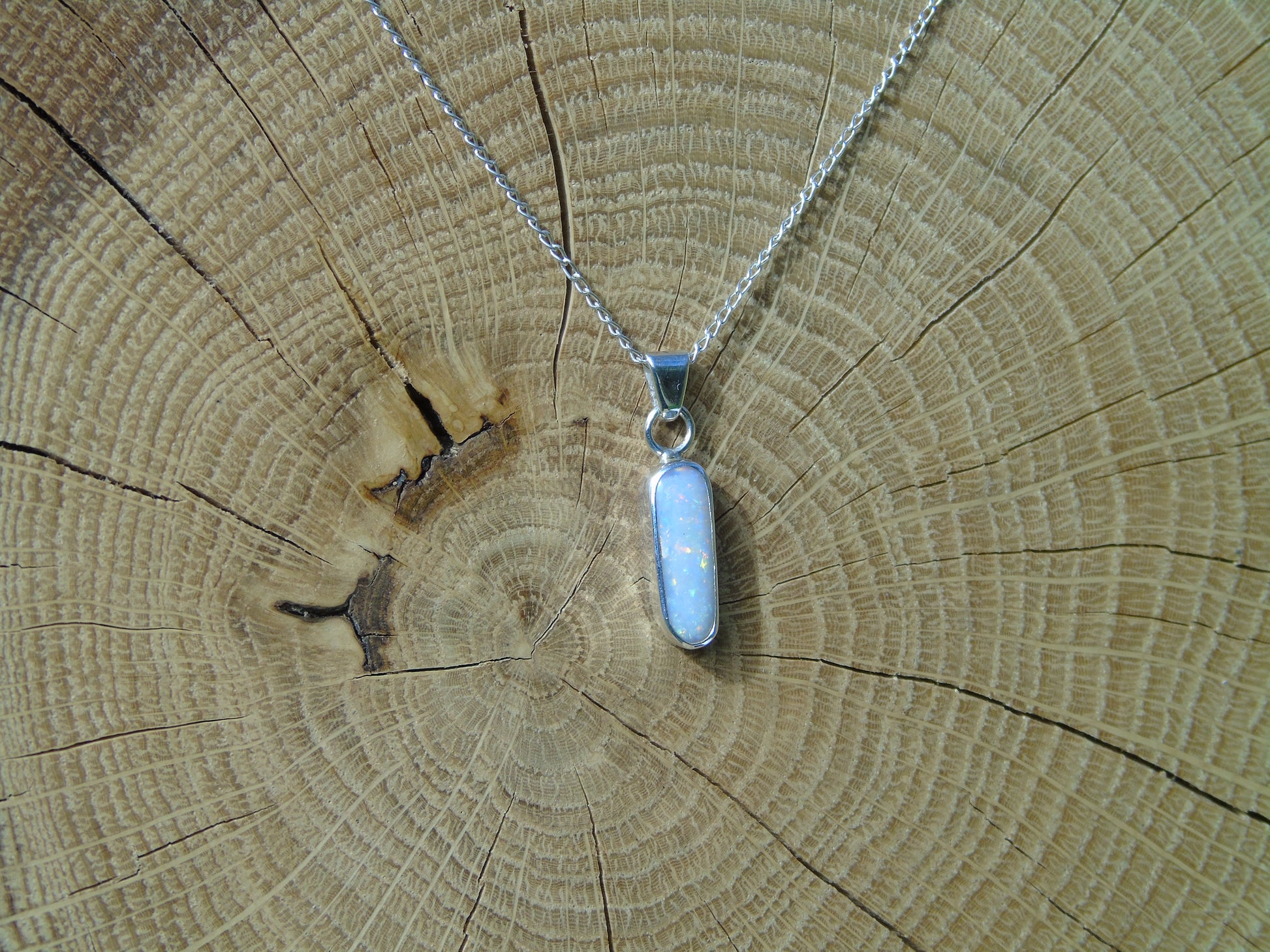 Pendant measures 18x5mm overall, opal 13x5mm.