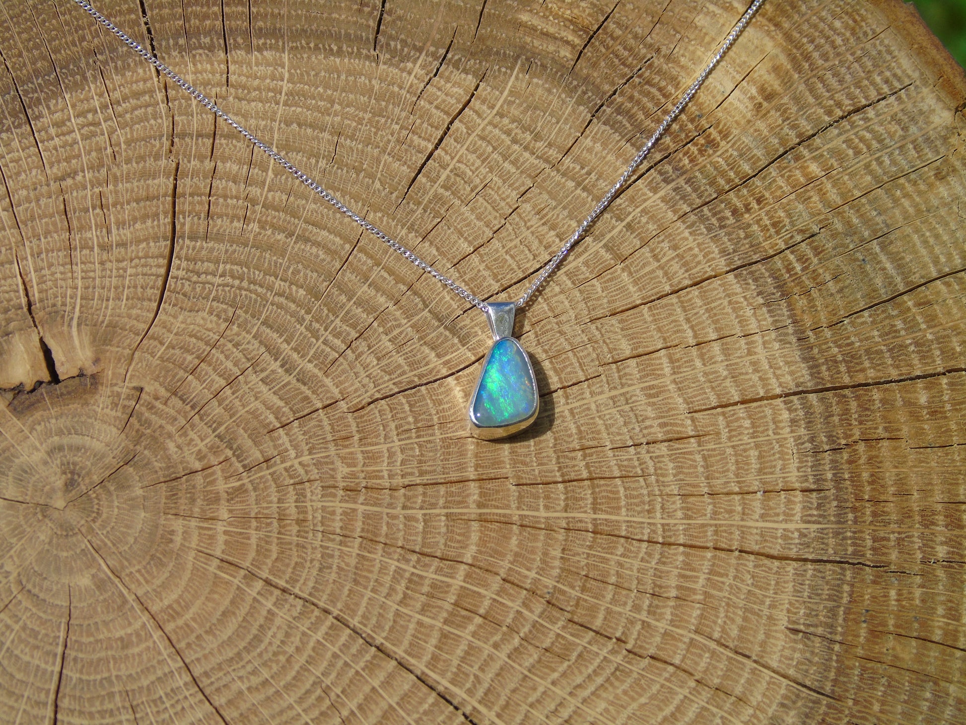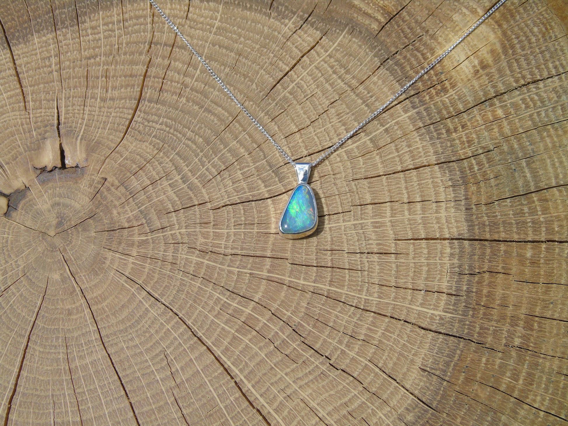 Pendant measures 16x7mm overall, opal 12x7mm.