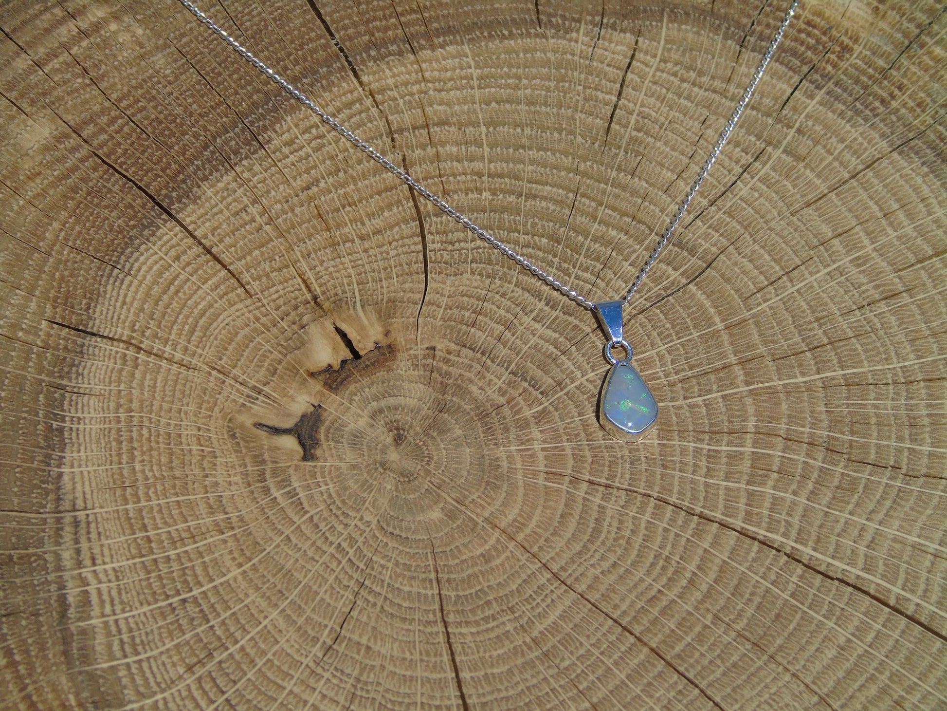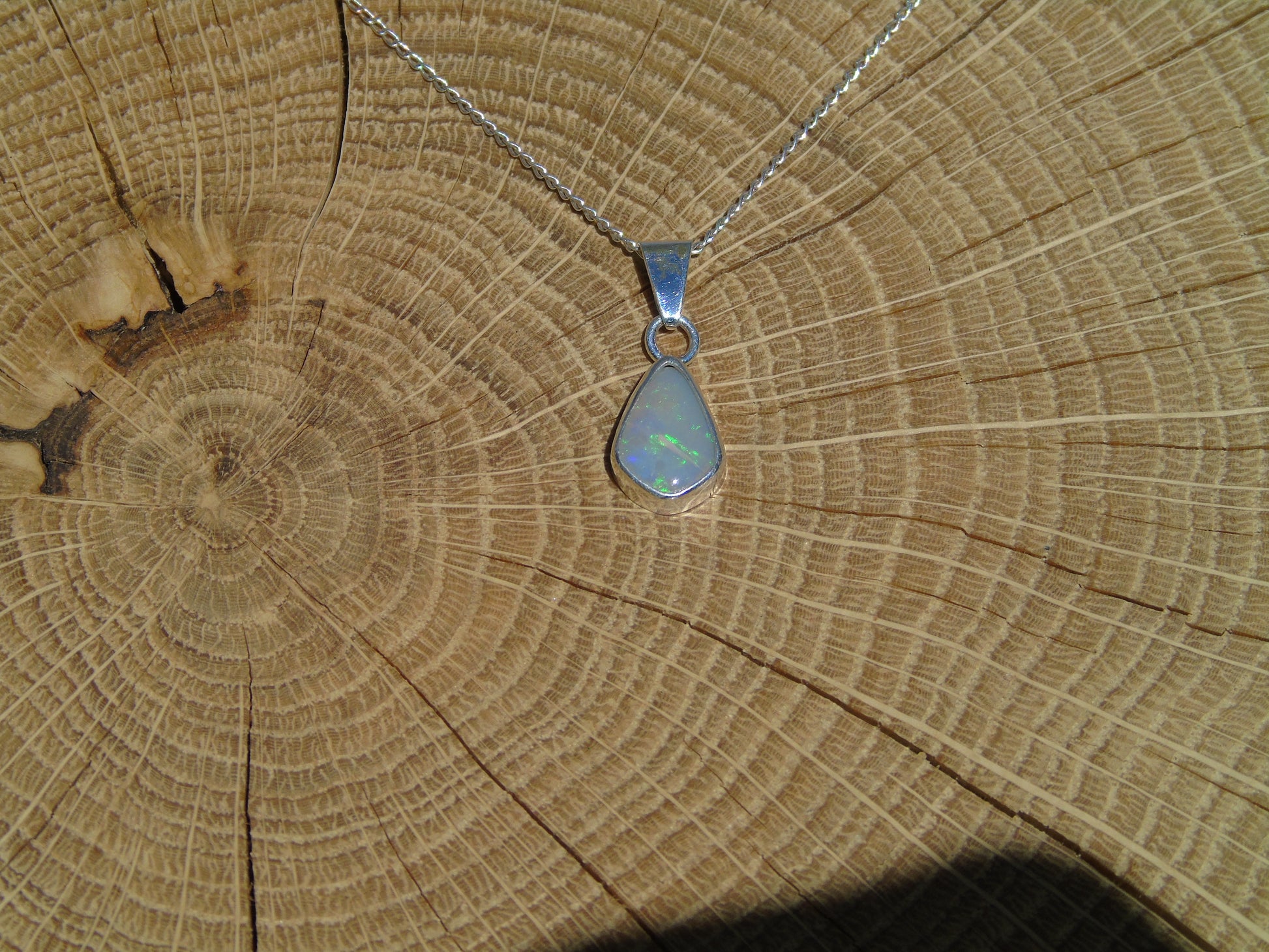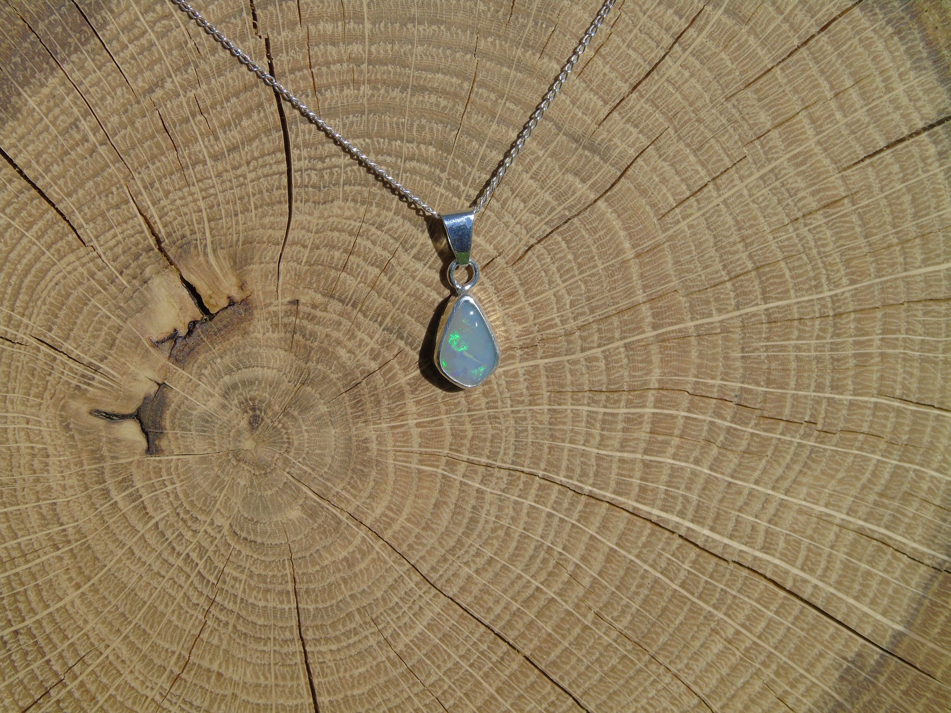 Pendant measures 18x7mm overall, opal 10x7mm.
