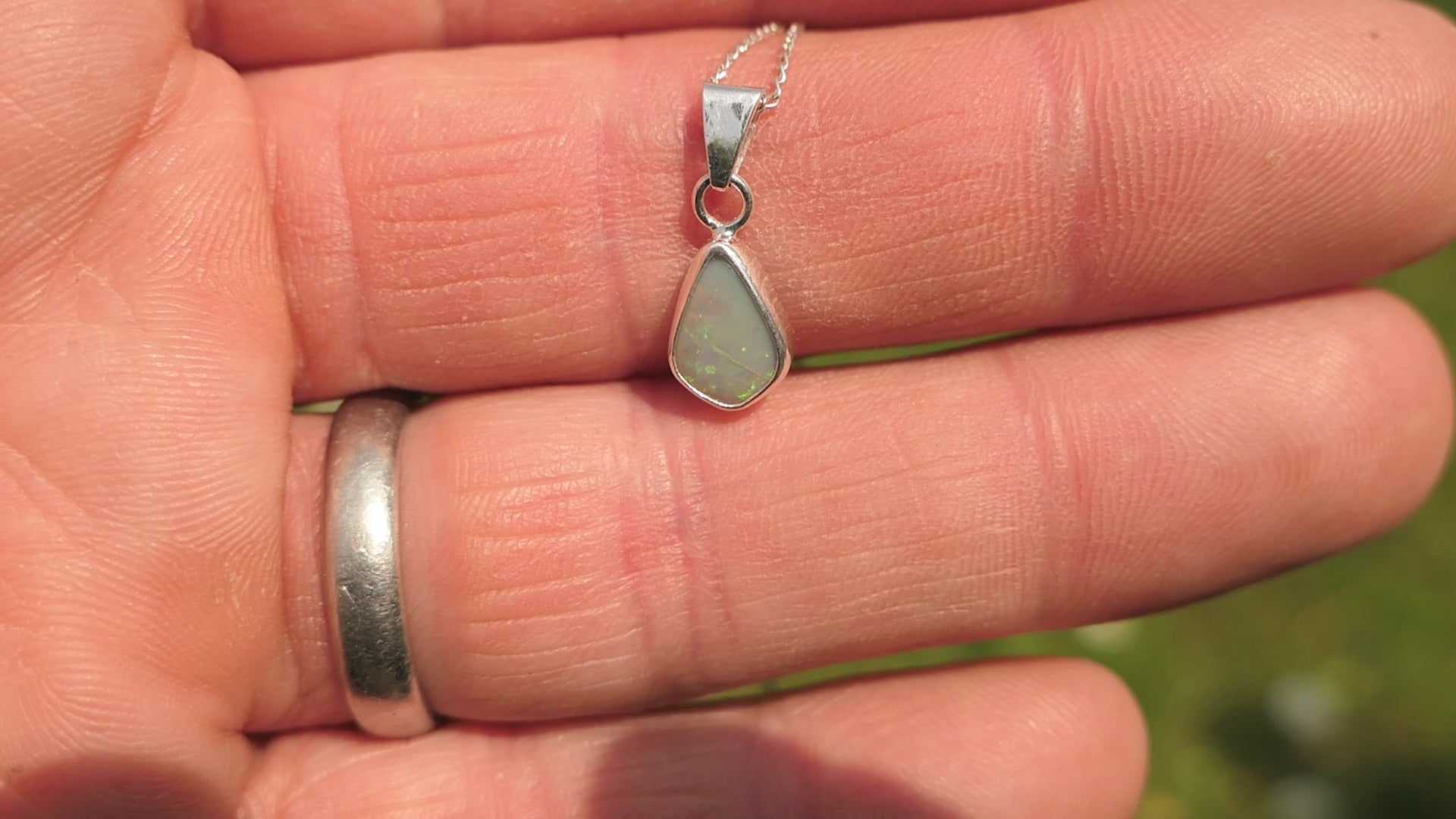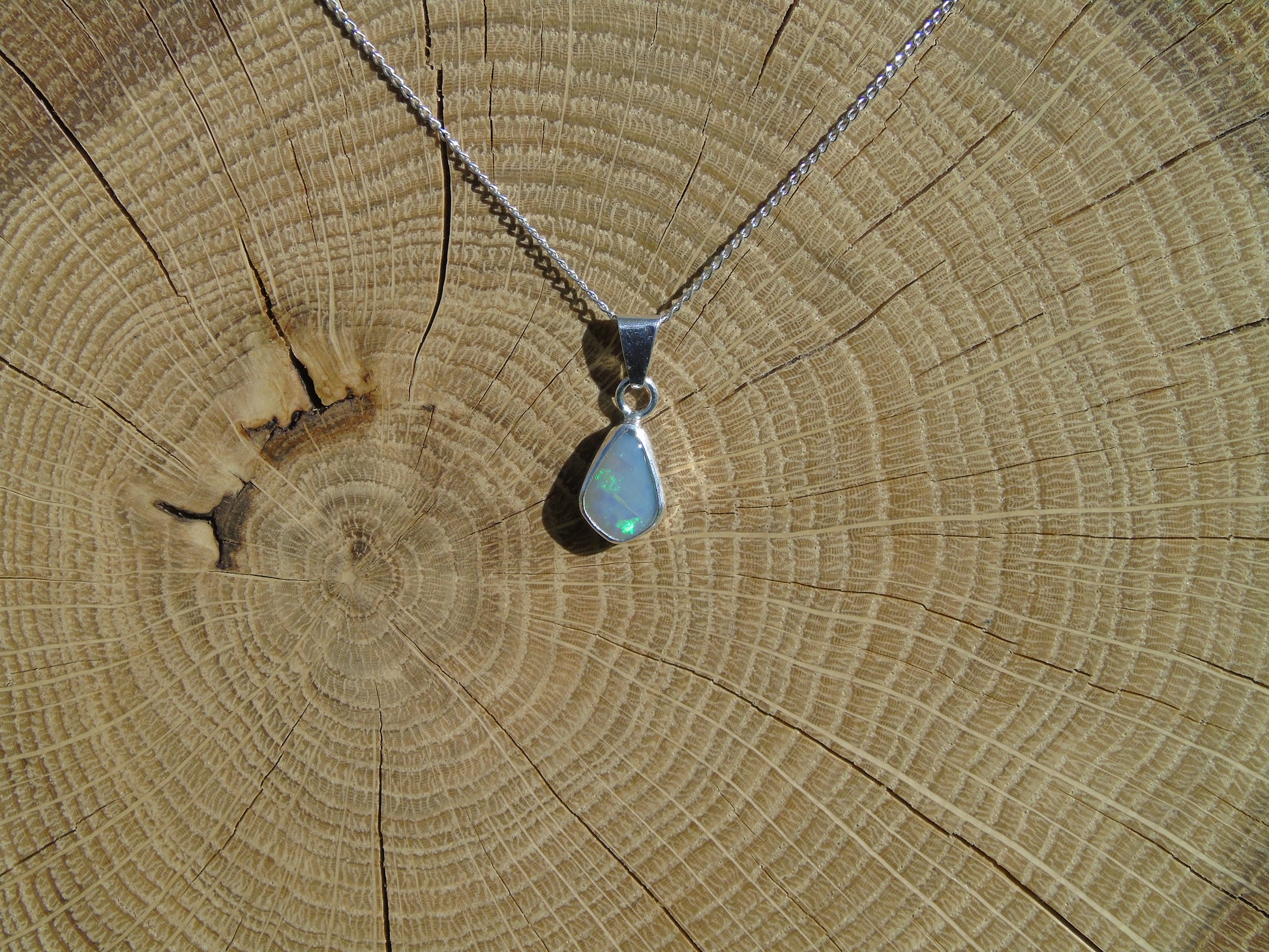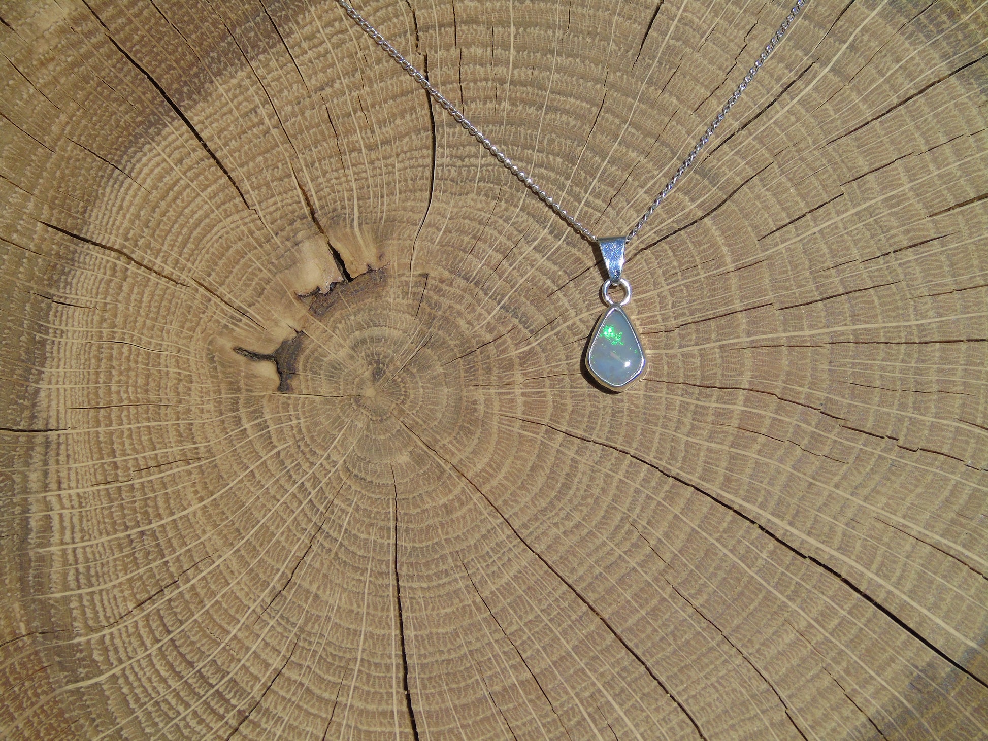 Pendant measures 18x7mm overall, opal 10x7mm.