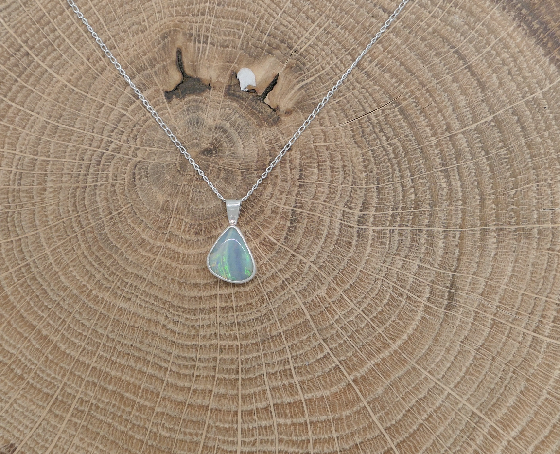 Opal approximately 9x8 mm, pendant 14x8mm overall.
