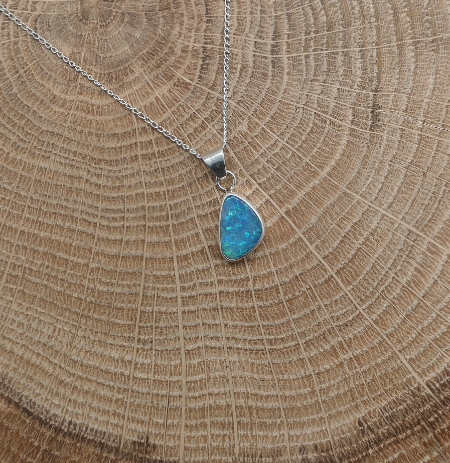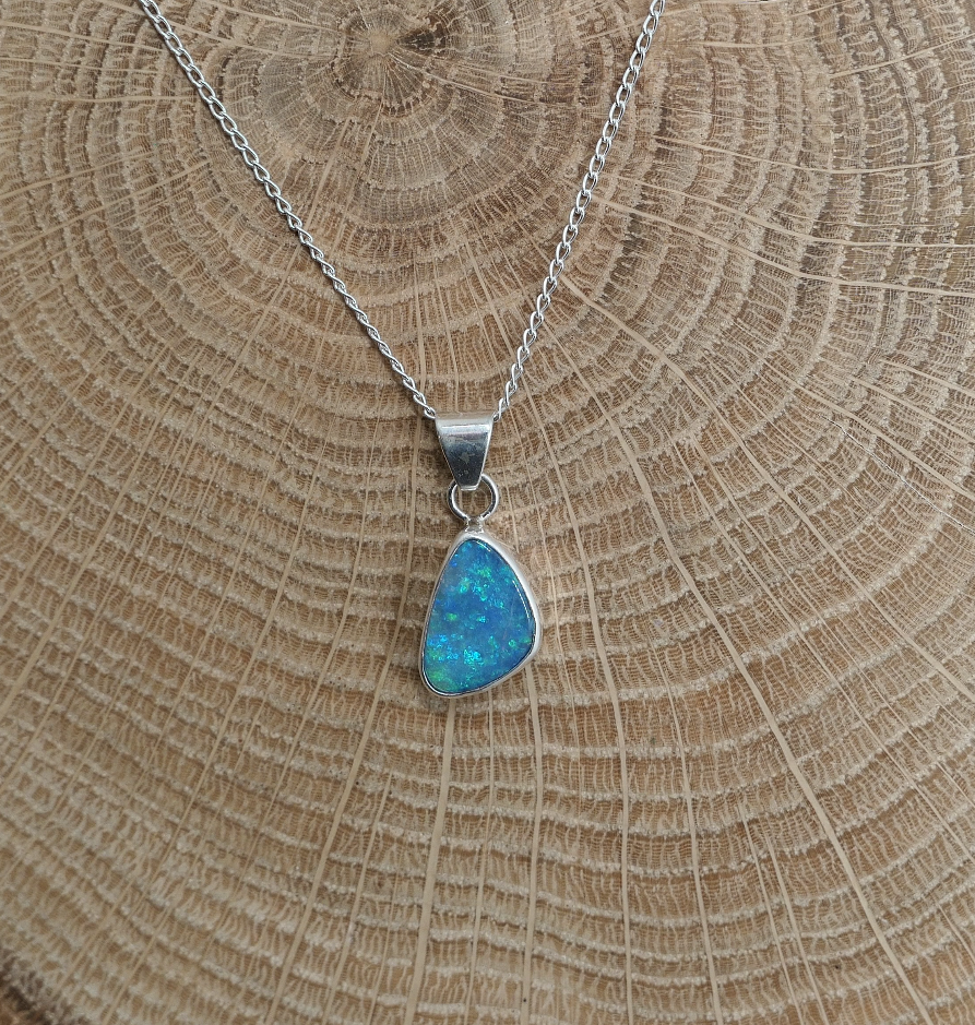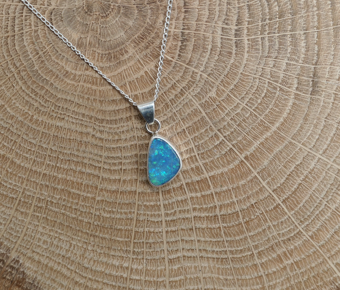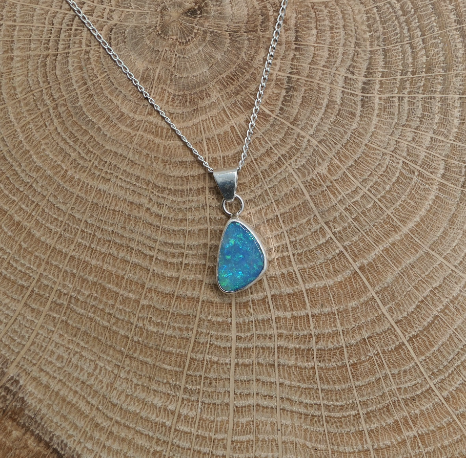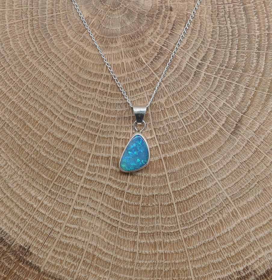 Add a pop of color to your style with this stunning silver opal pendant. The blue and green hues of the opal will catch everyone's eye.. Perfect for any occasion, this pendant will elevate your look effortlessly.