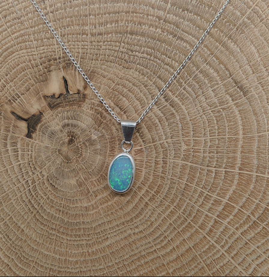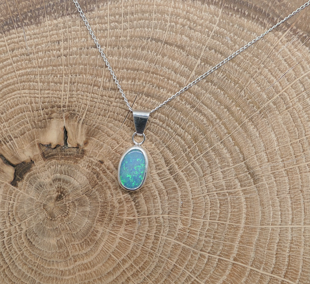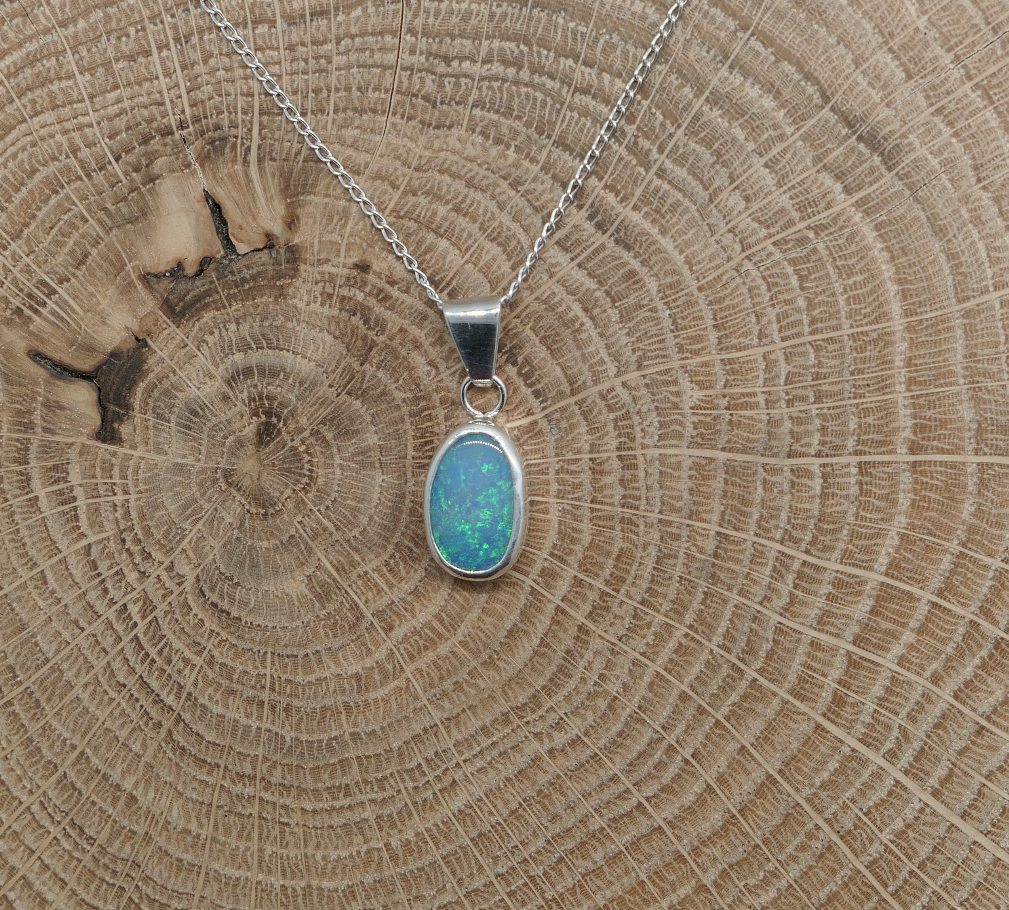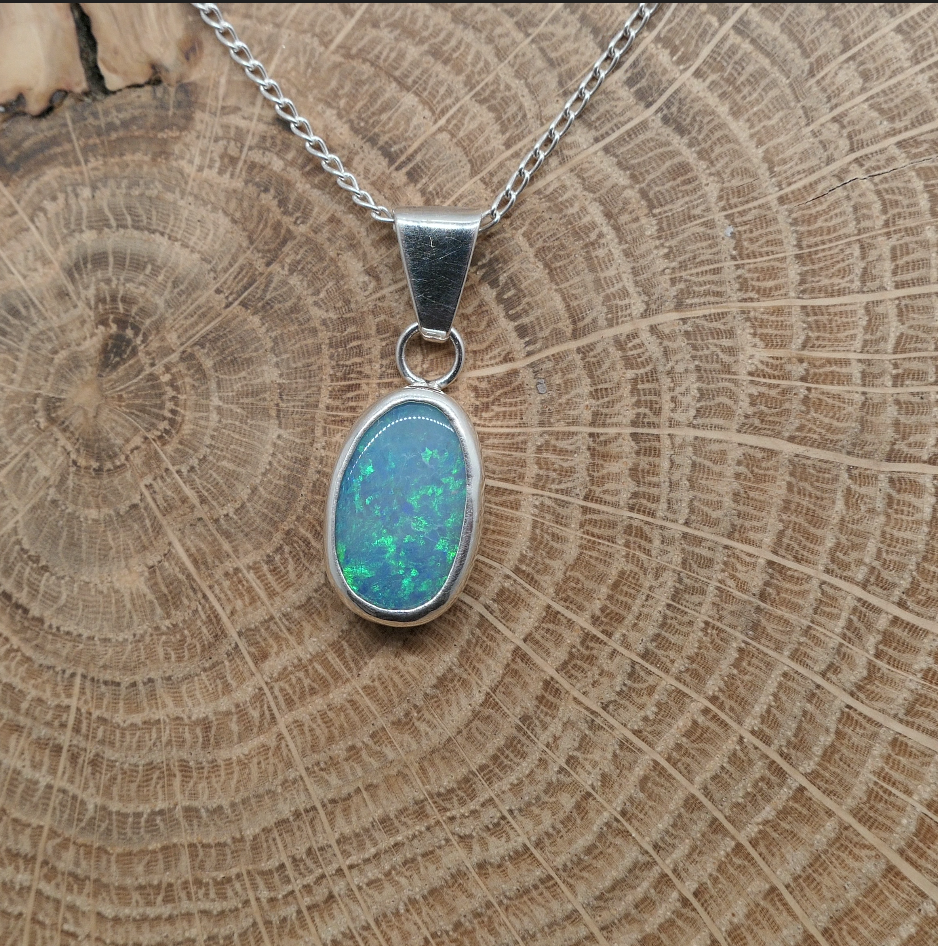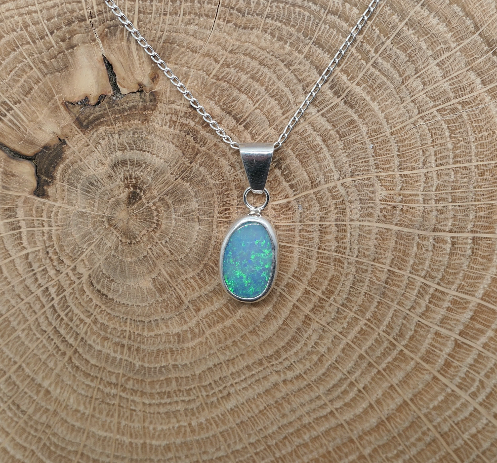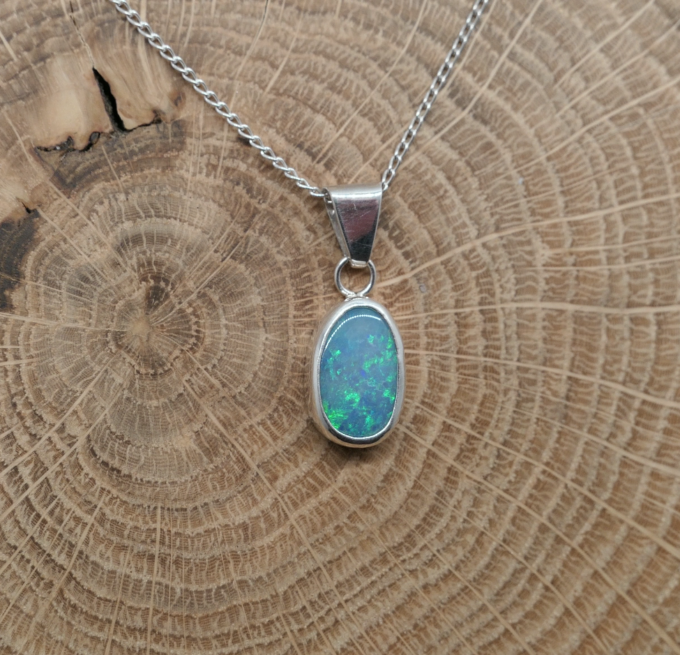 Silver opal pendant with a Coober Pedy doublet opal.