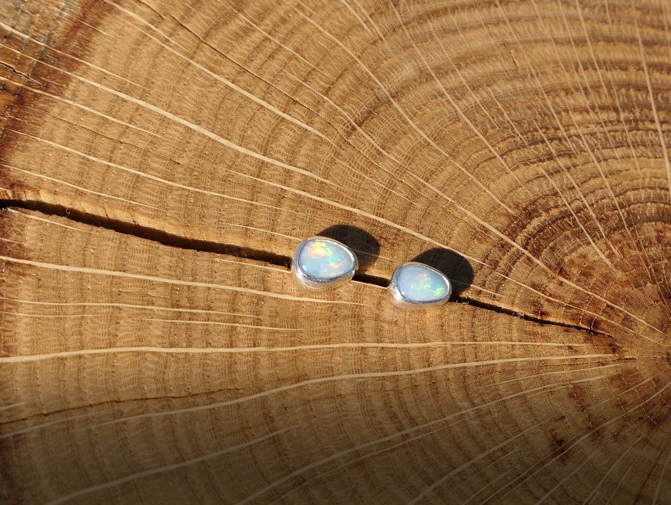 Silver opal earstuds, custom made with a pair of matching 6x4mm Coober Pedy opals.