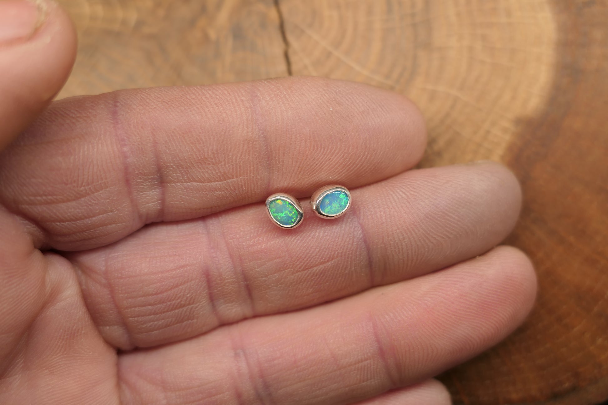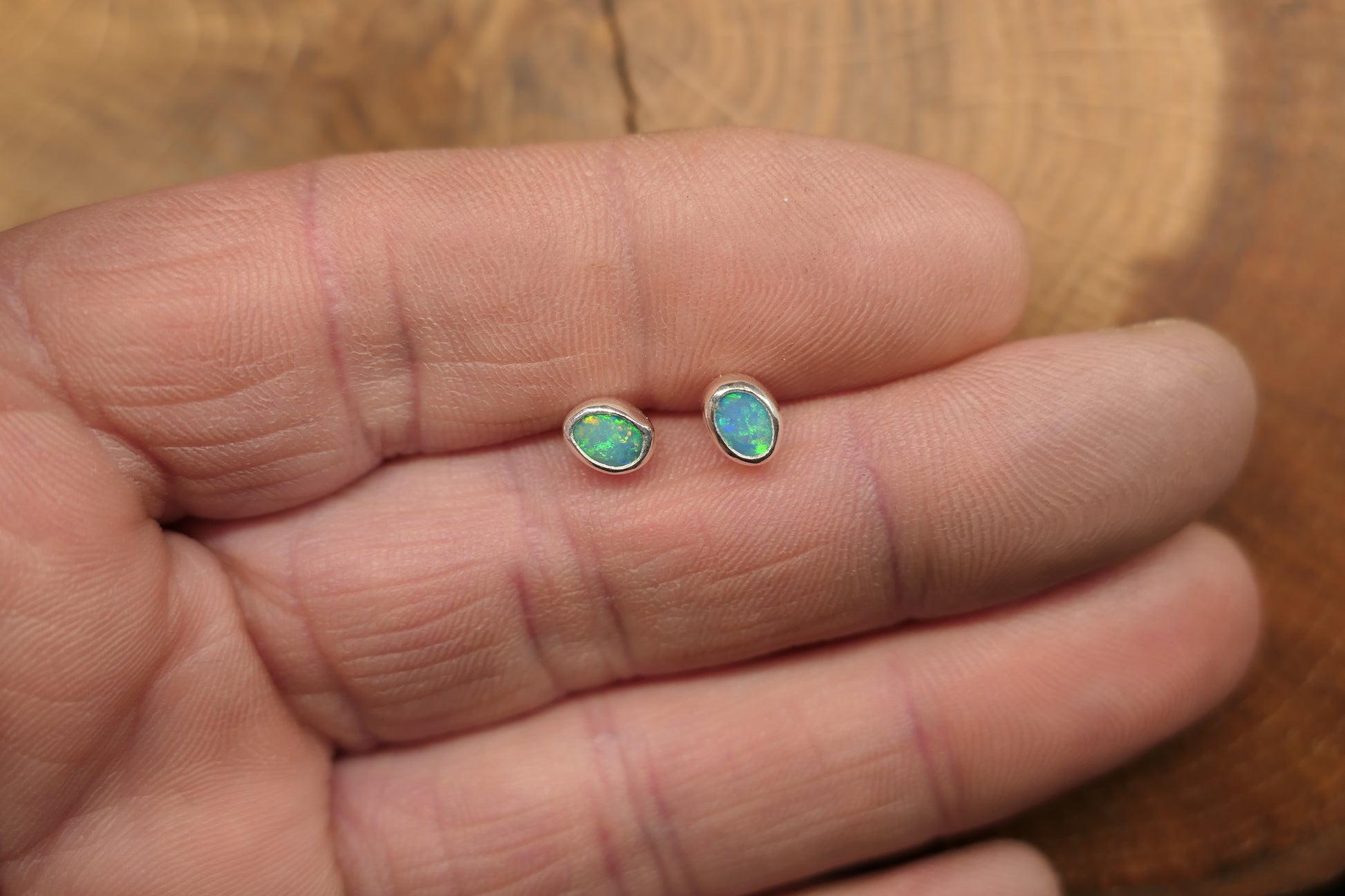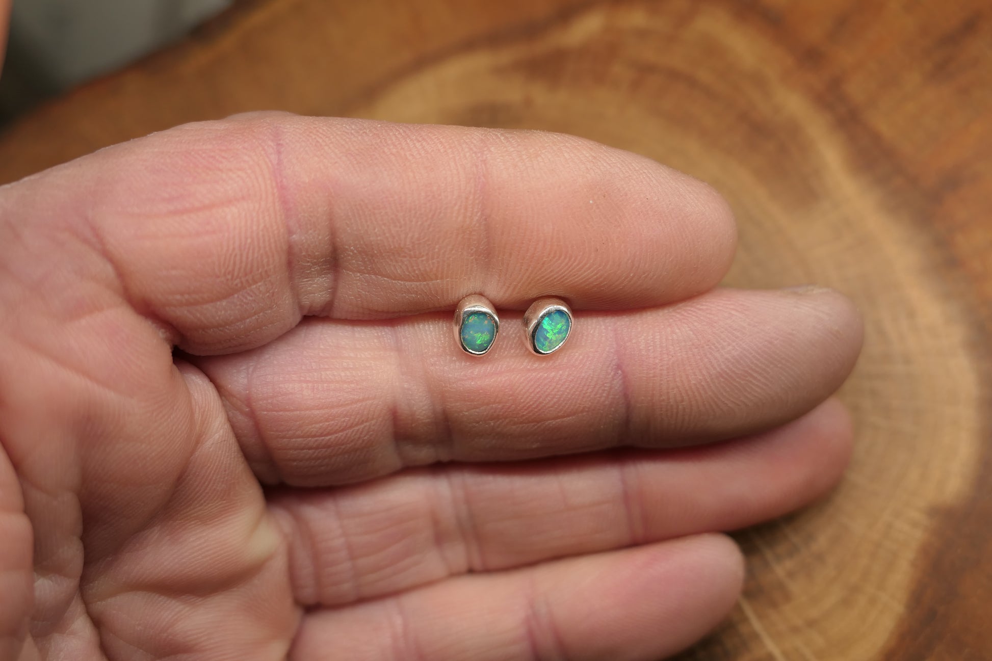 Silver opal earstuds, custom made with a pair of matching 6x4mm Coober Pedy opals.