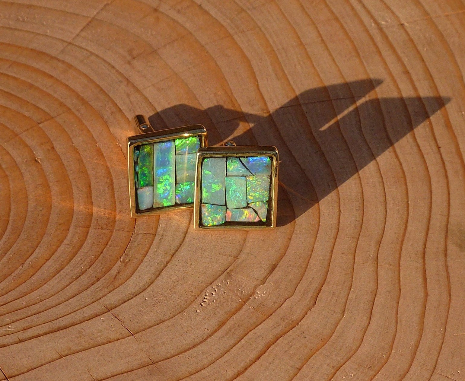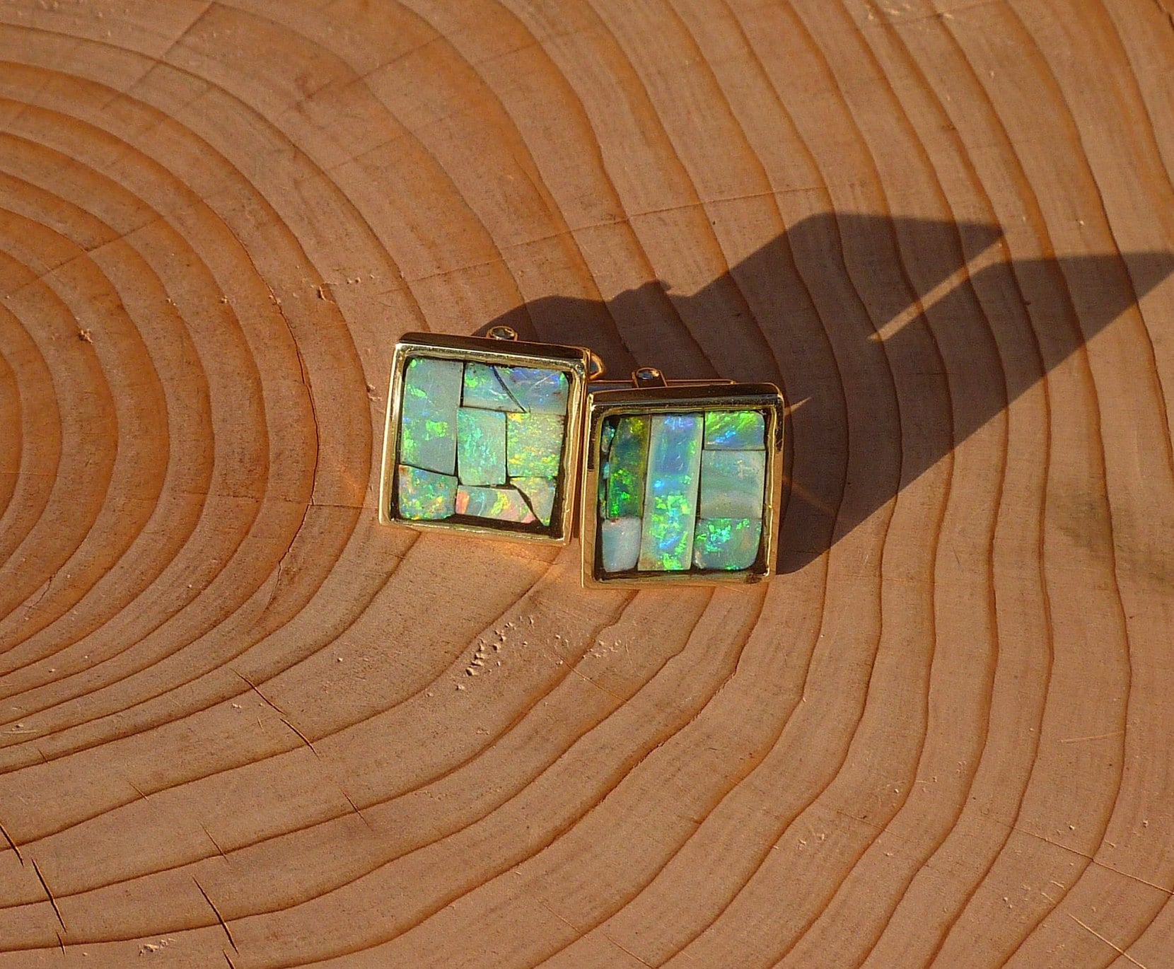 Set with natural Australian opal inlay from Coober Pedy set in resin.