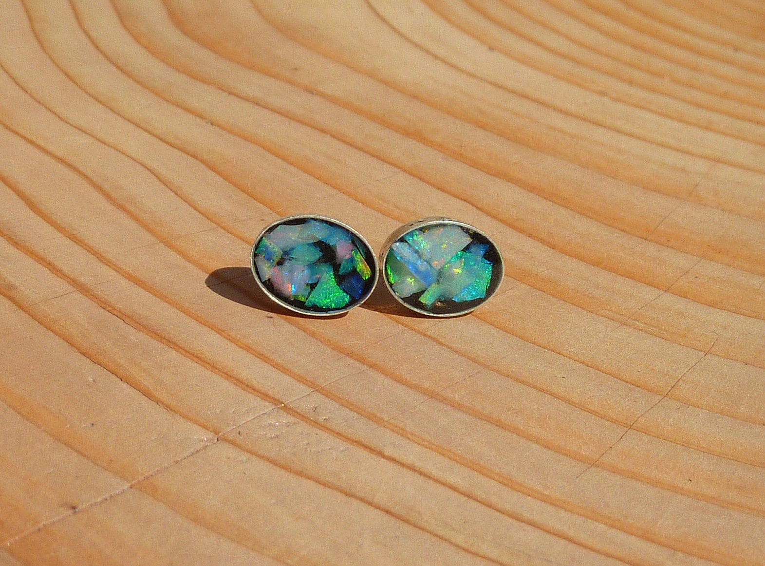 Opal inlay stud earrings