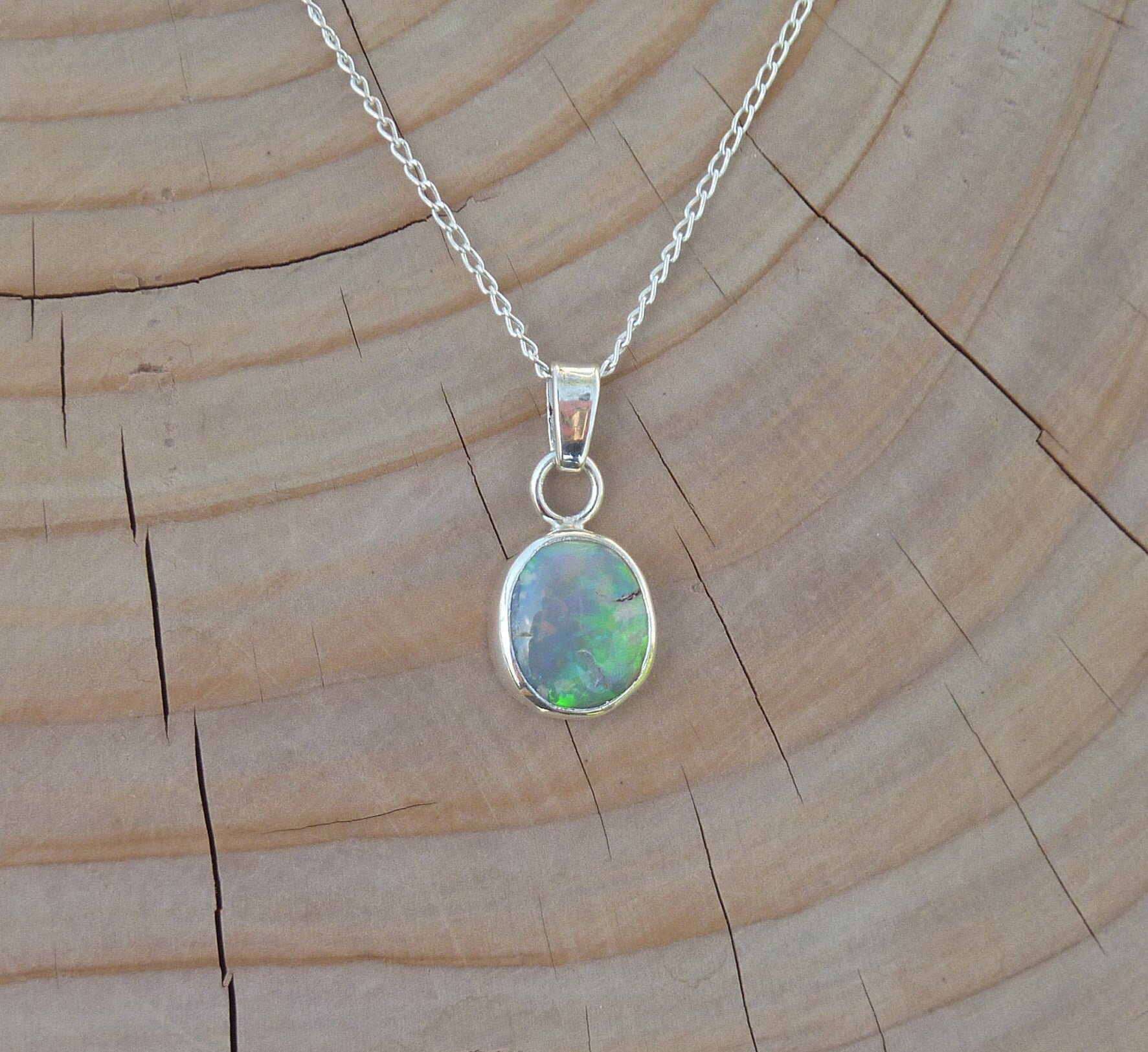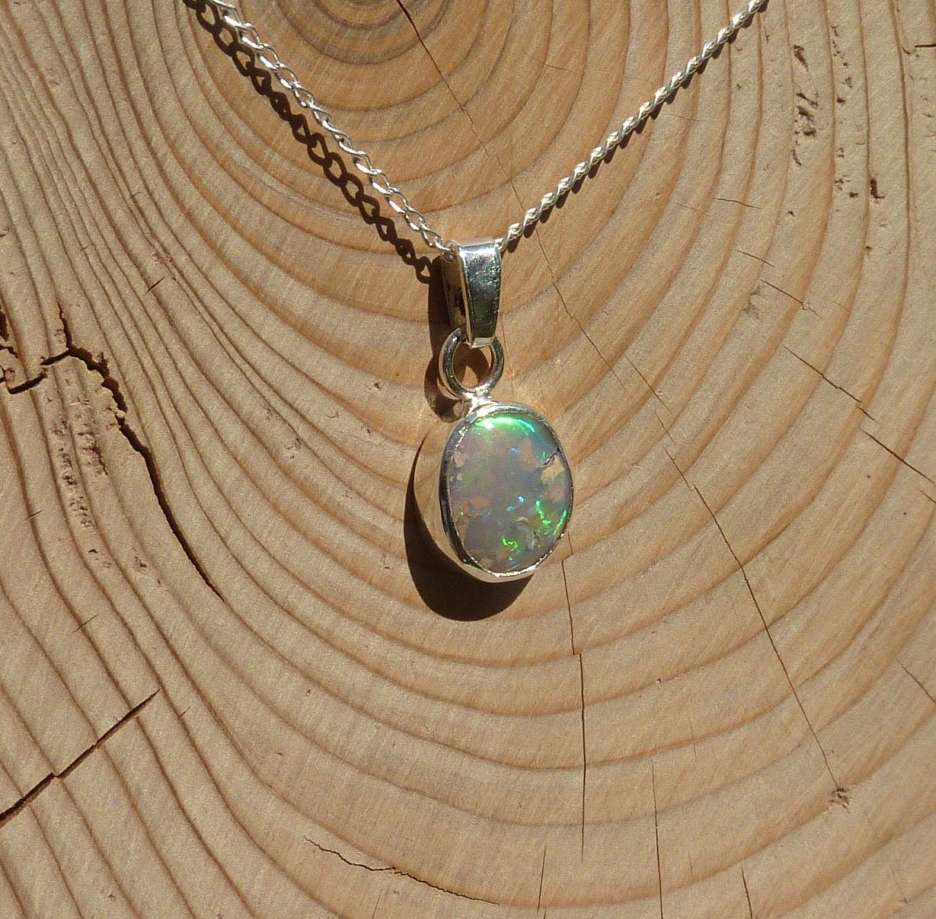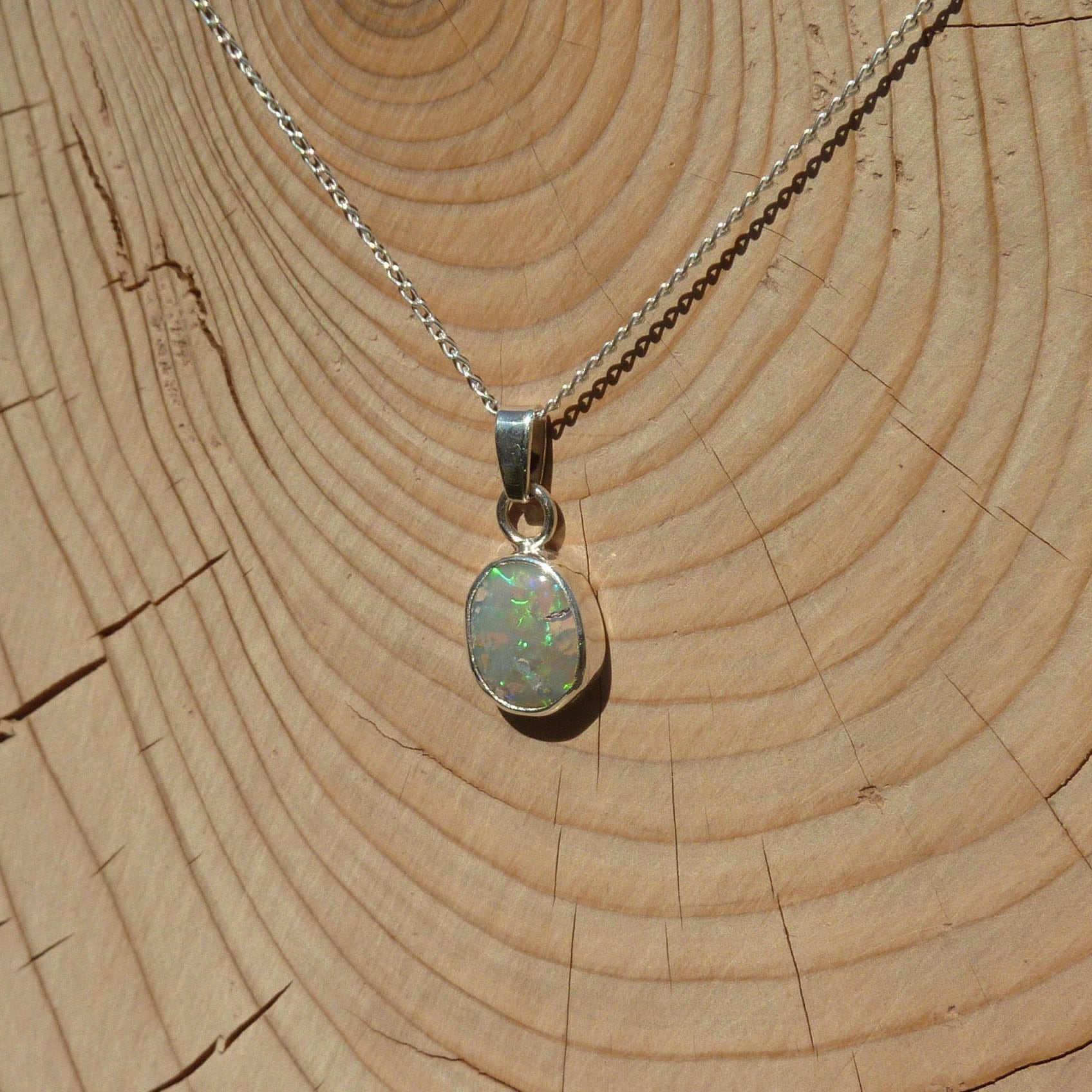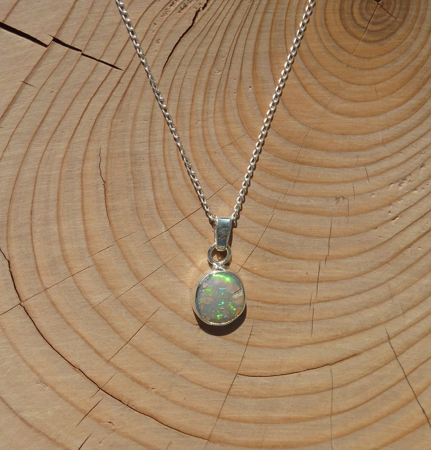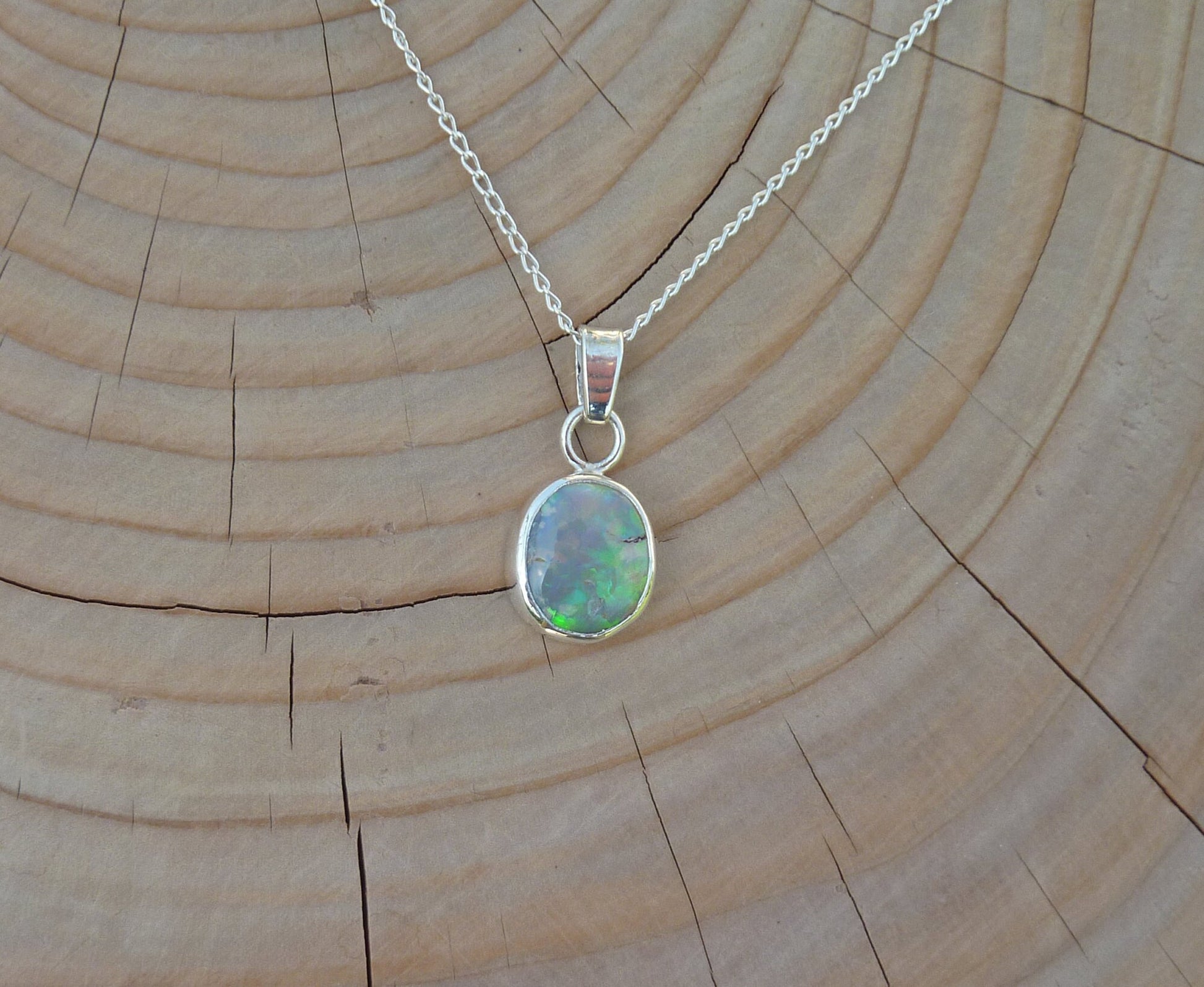 Solid opal pendant in silver.