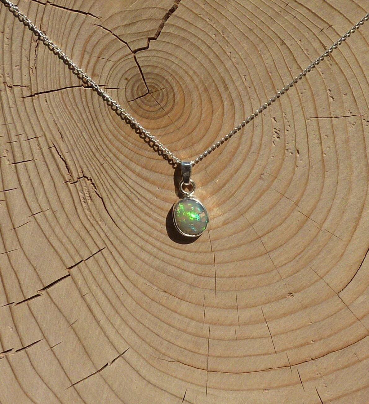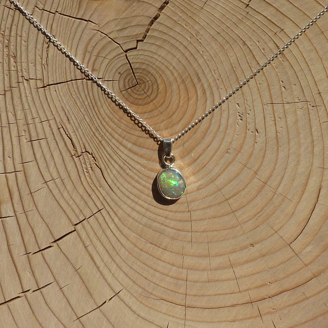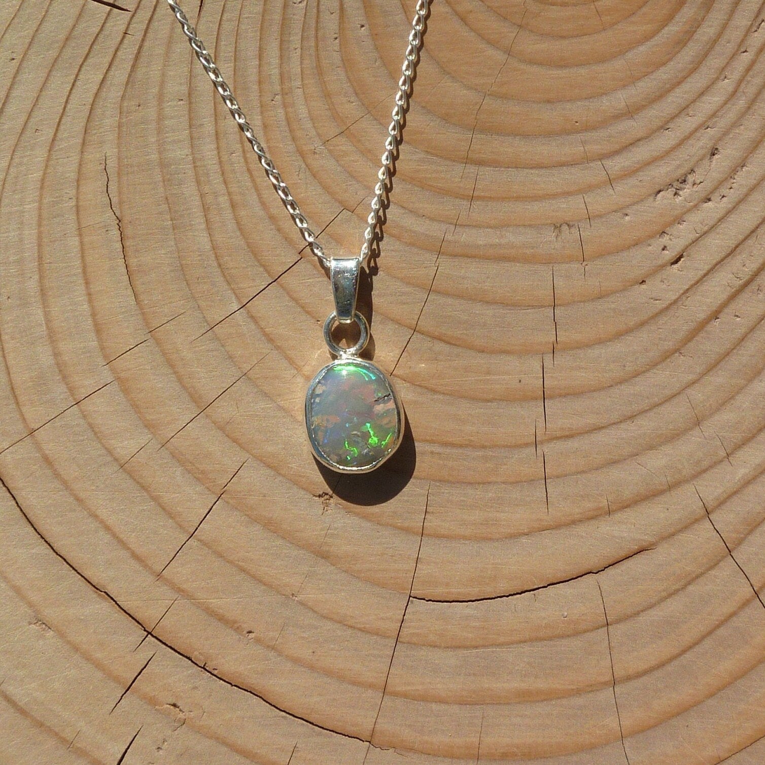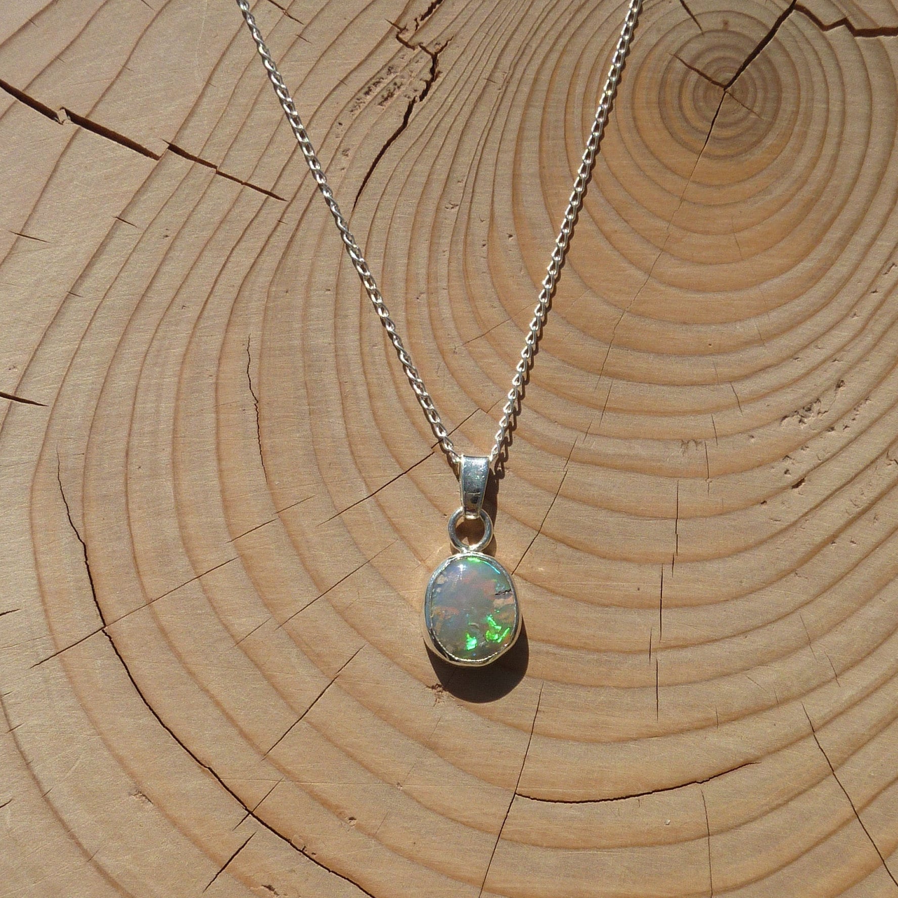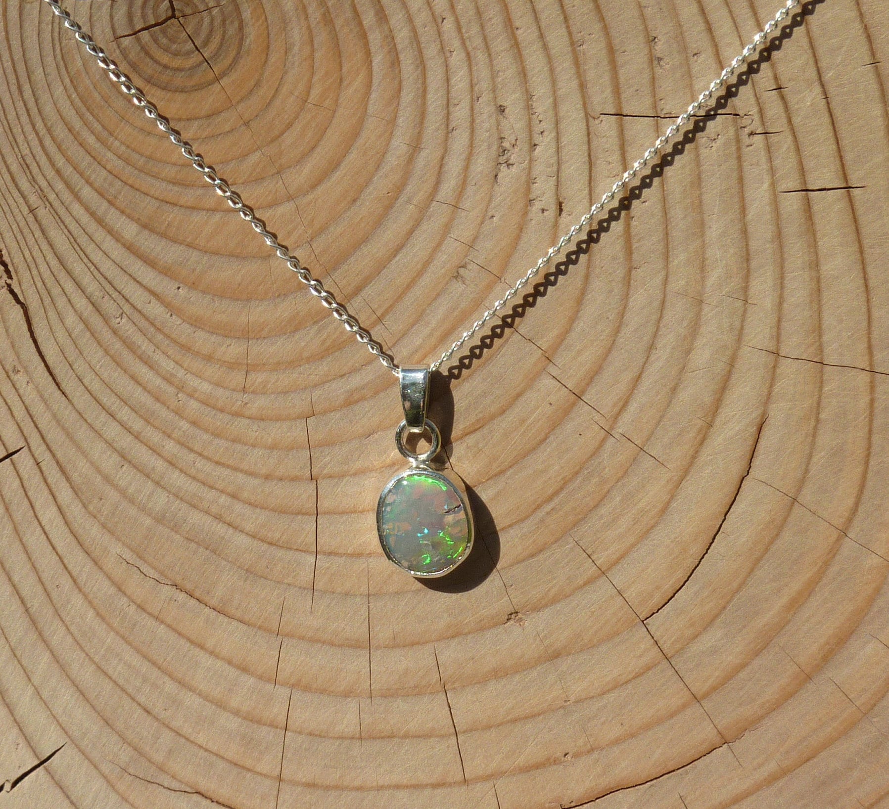 Solid opal pendant in silver.