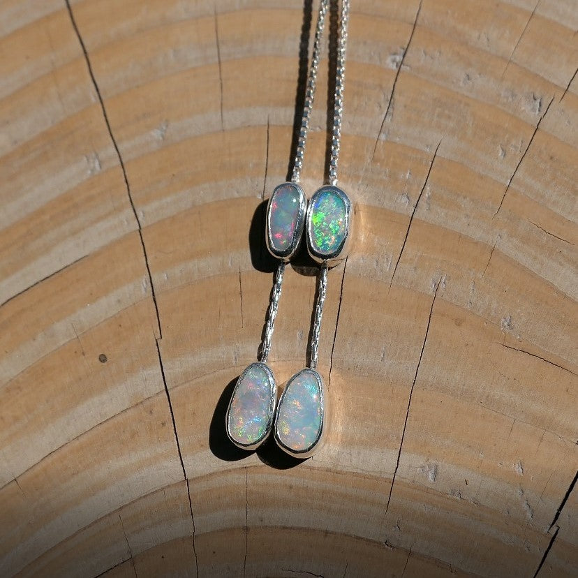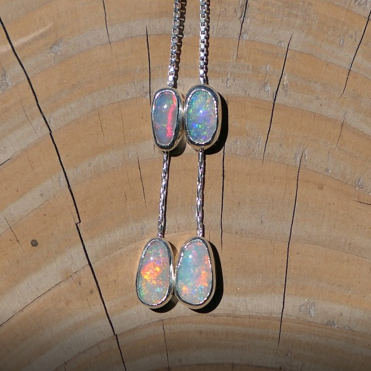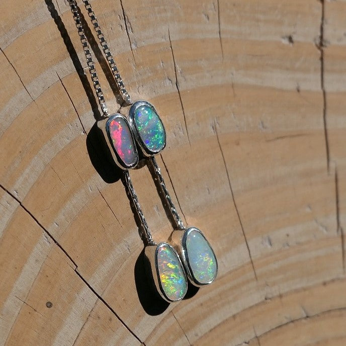 Unique one-off pieces, opals are very bright gems, and the colours change constantly with any movement.