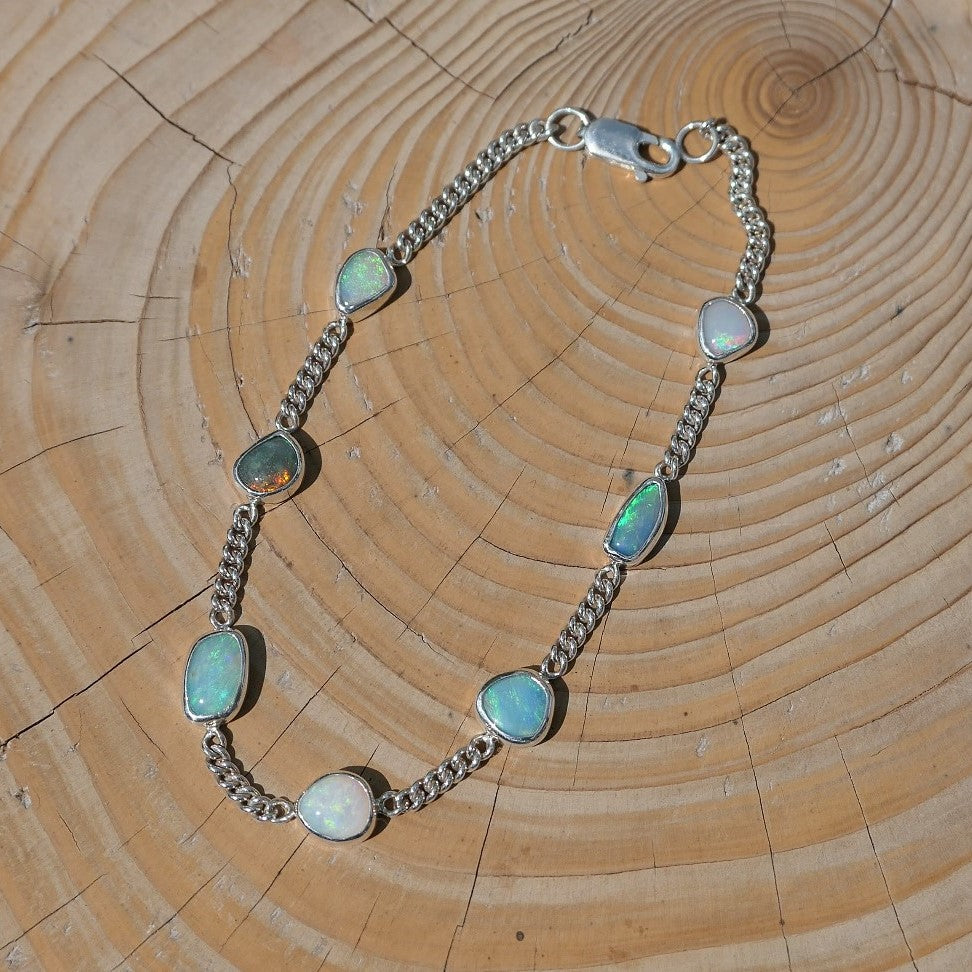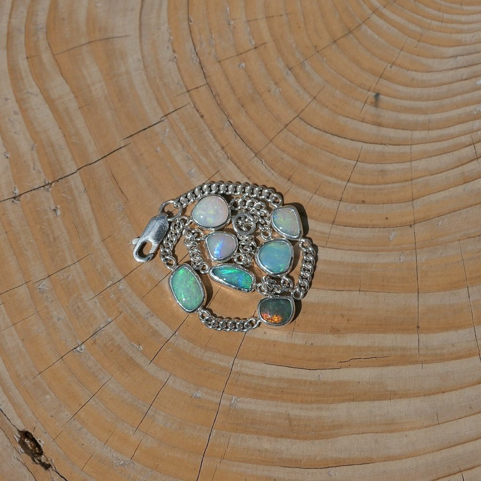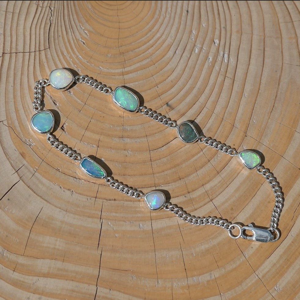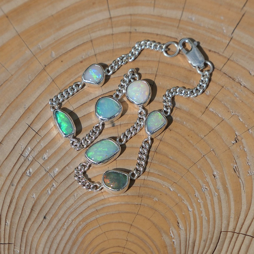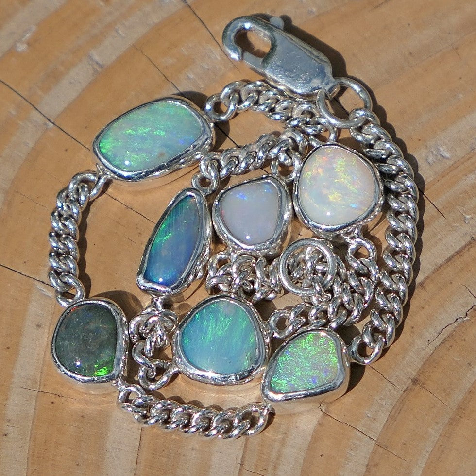 Silver opal bracelet, with 7 solid Coober Pedy opals.