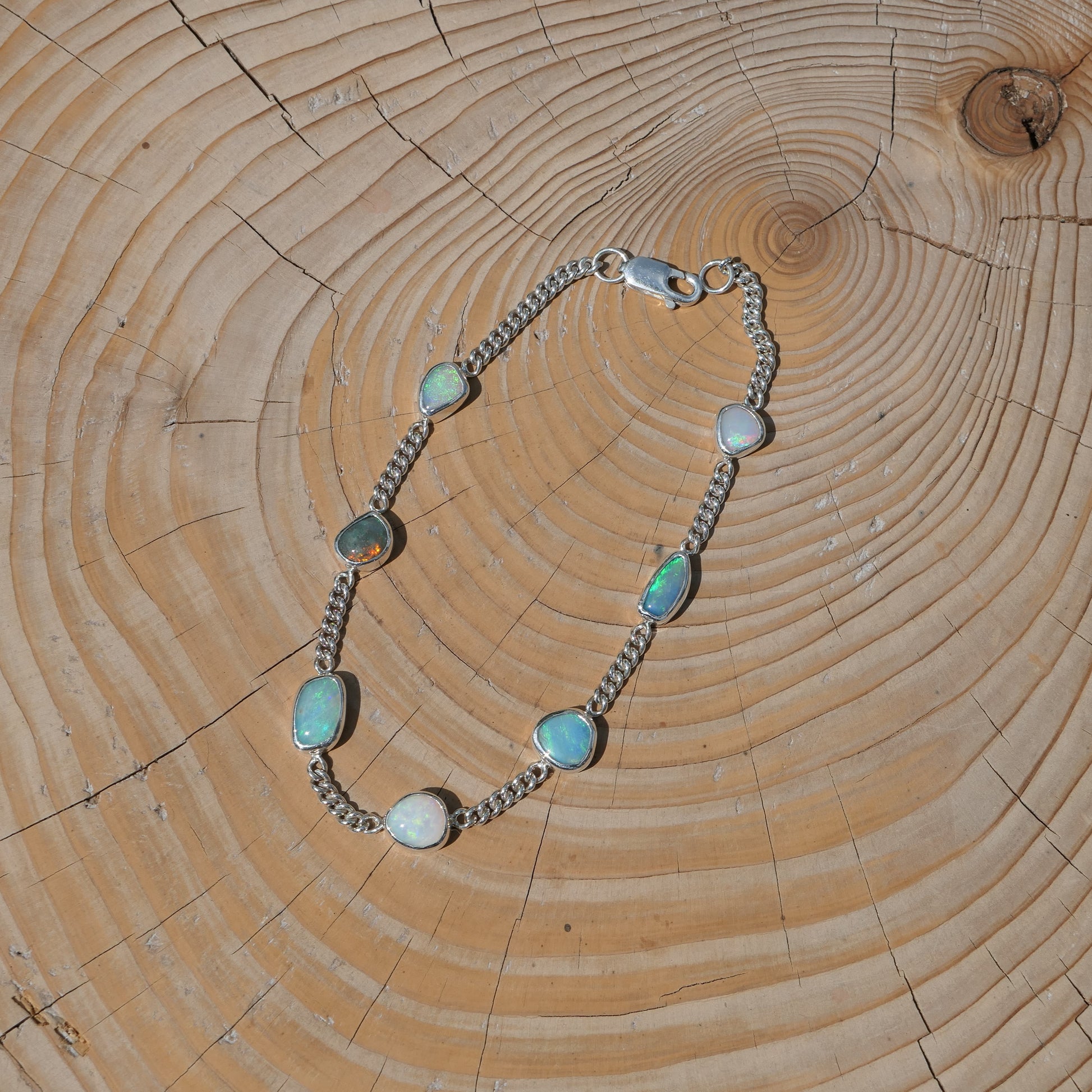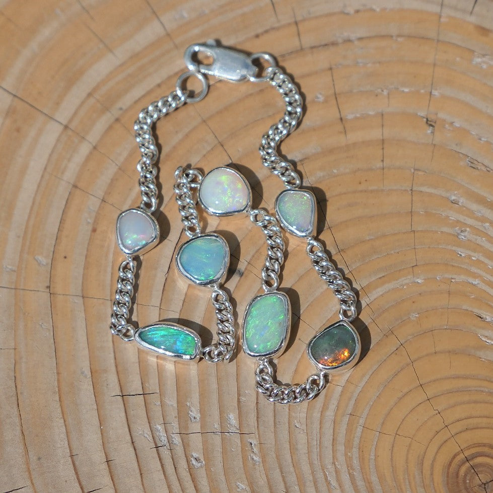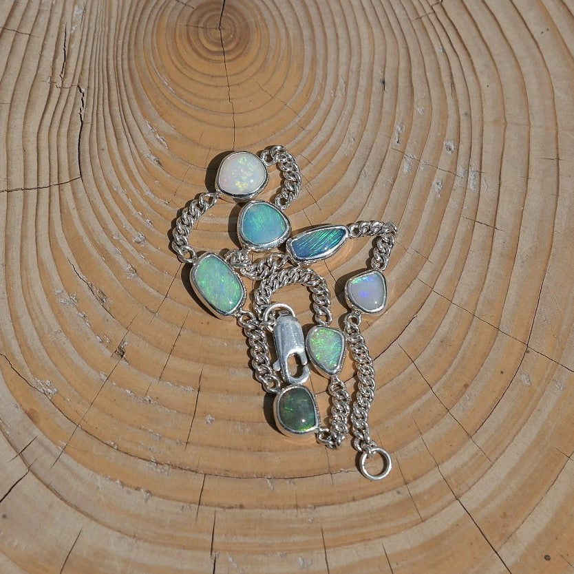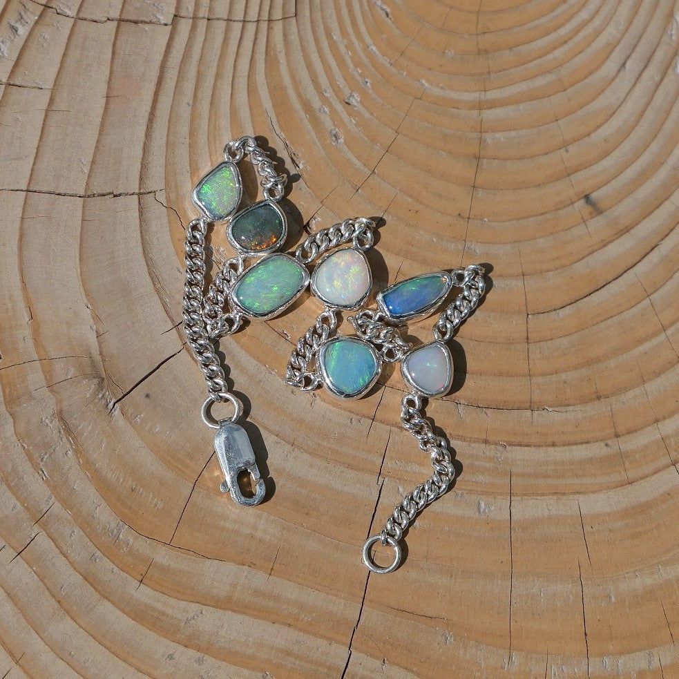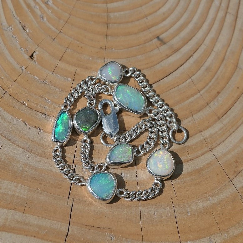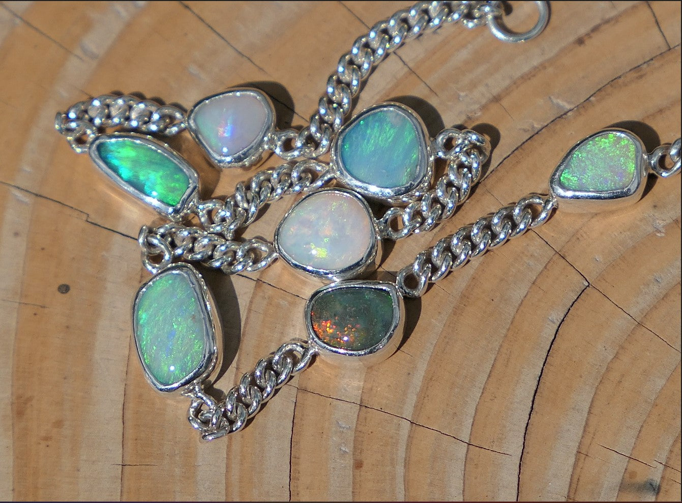 Silver opal bracelet, with 7 solid Coober Pedy opals.