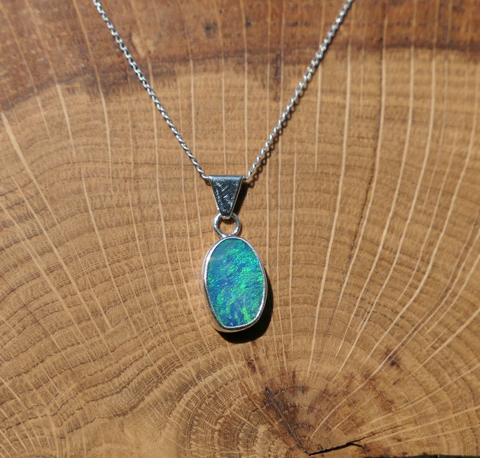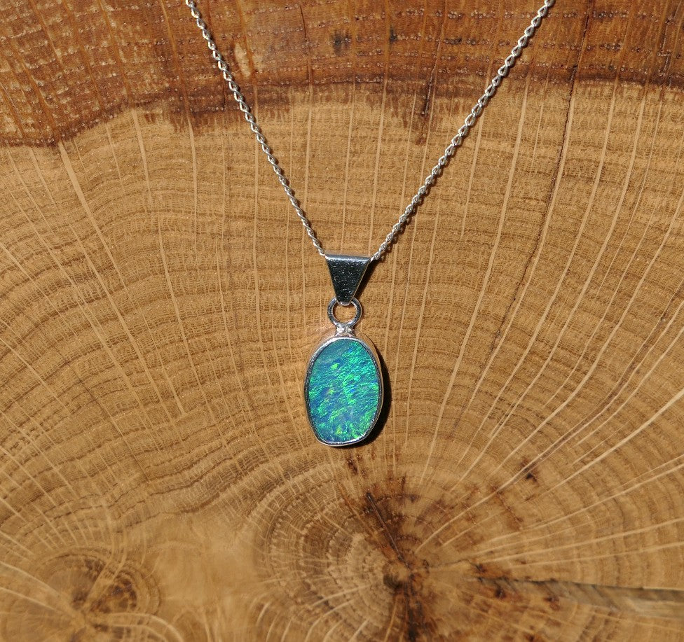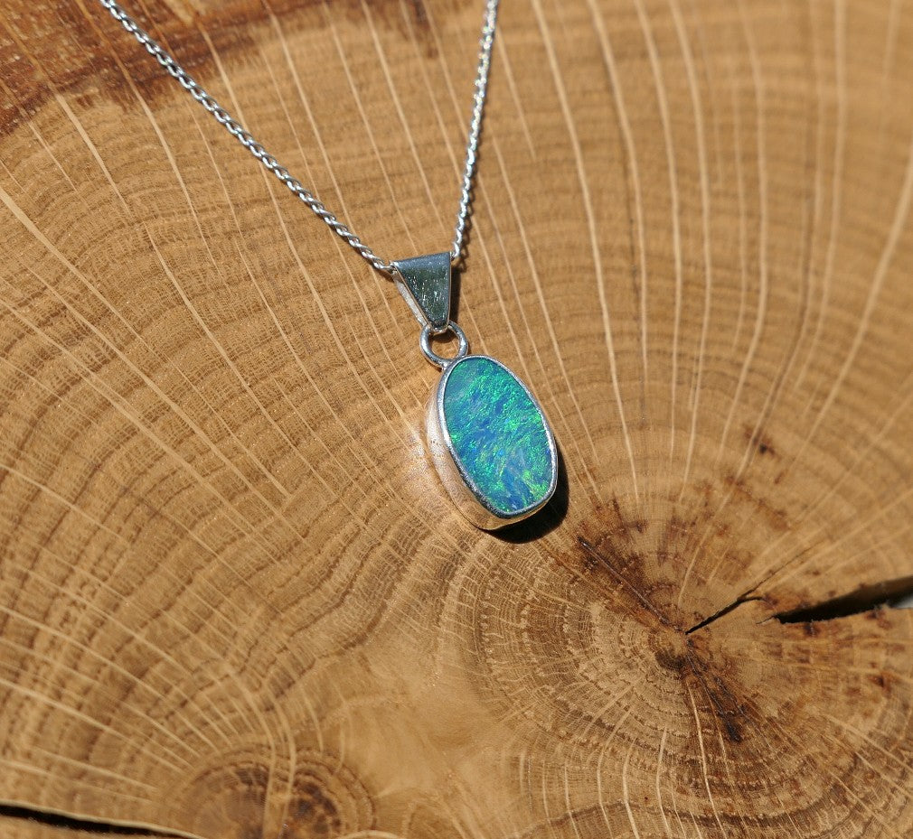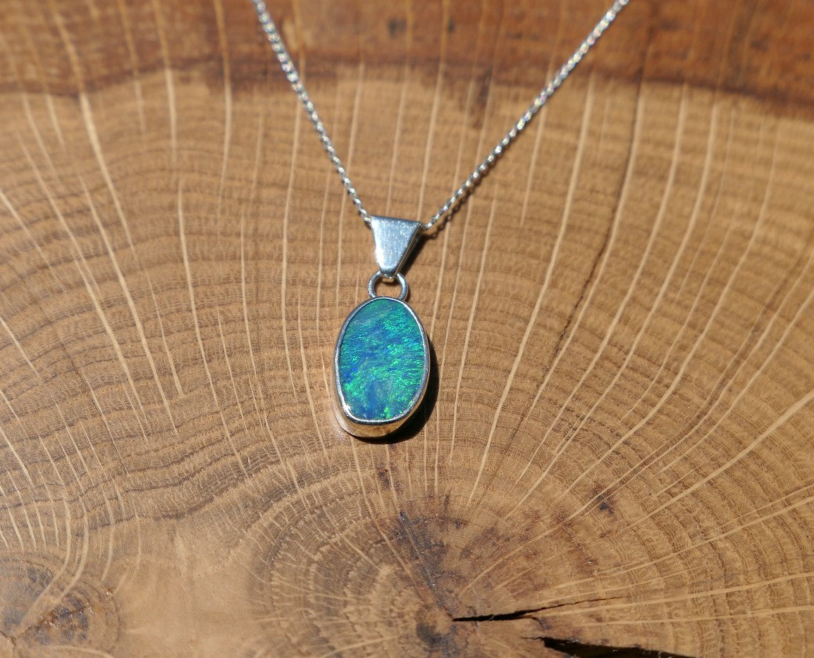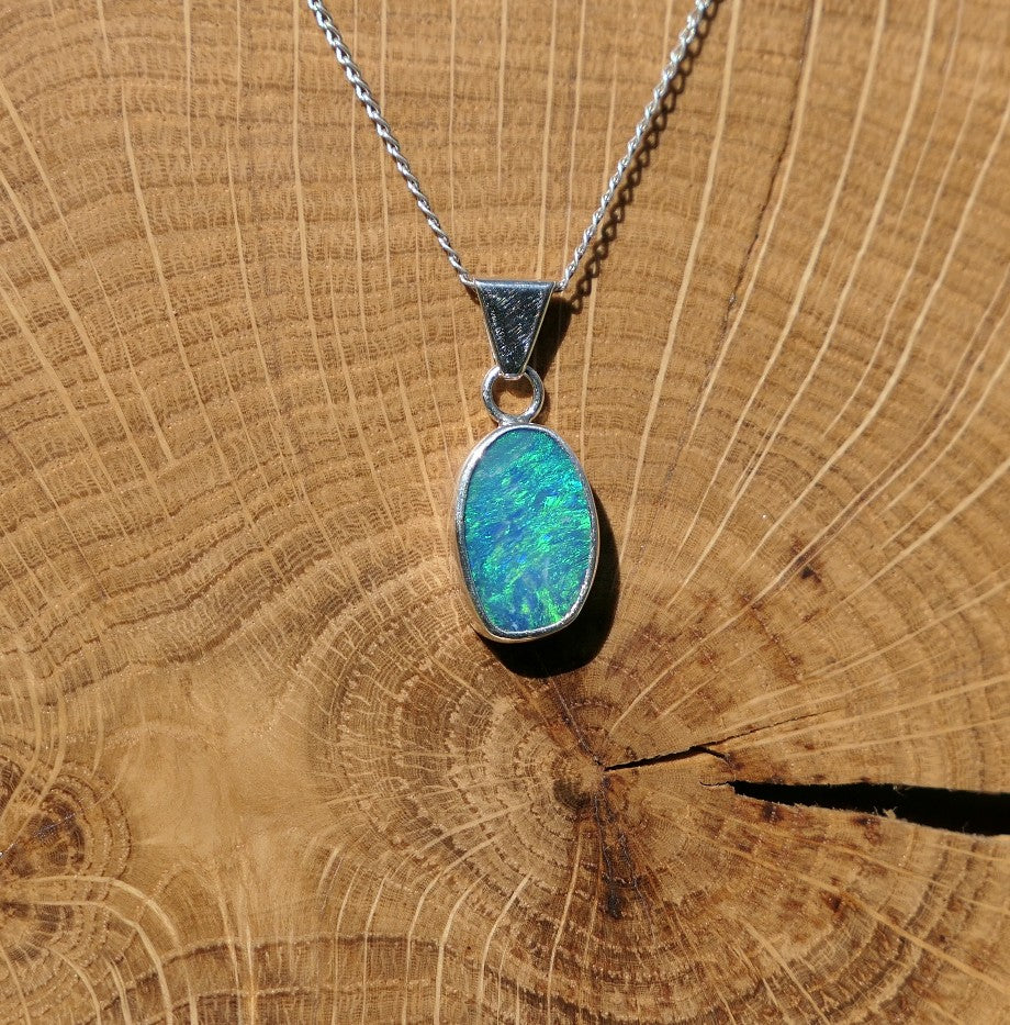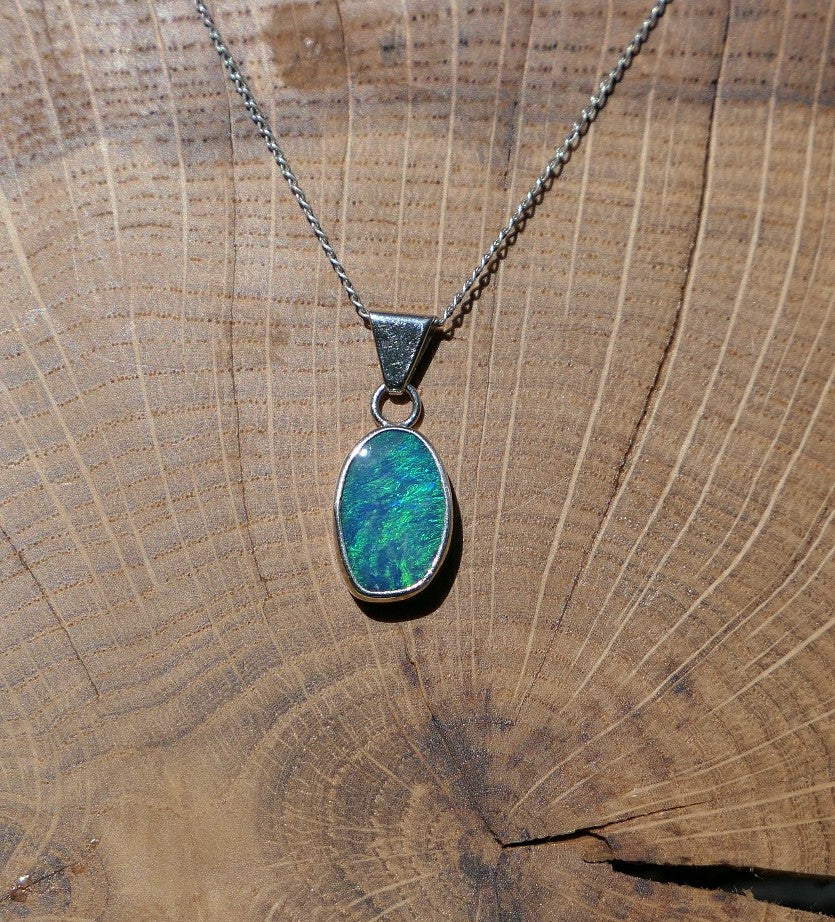 Silver opal pendant with a Coober Pedy doublet.