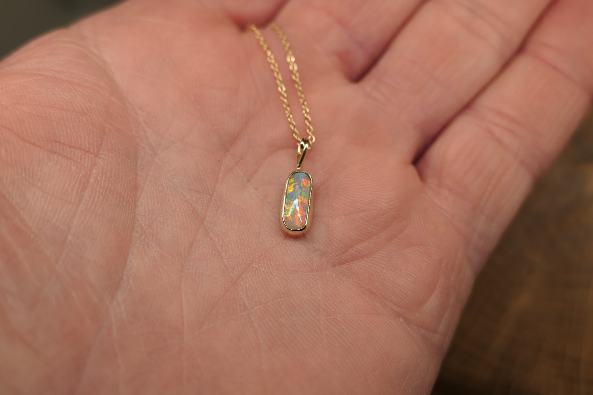 18k gold opal pendant with a Lightning Ridge black opalised belemite.