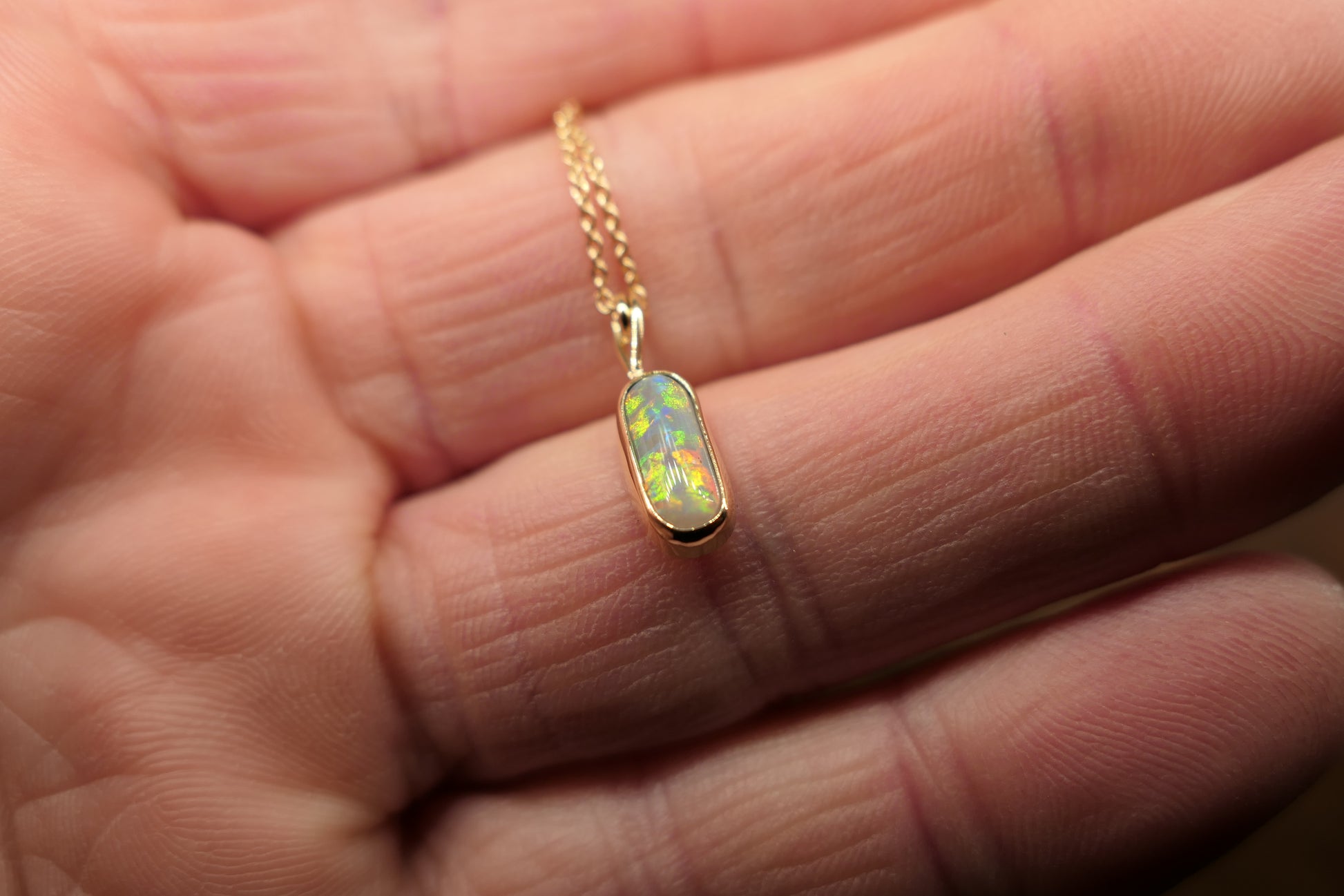 18k gold opal pendant with a Lightning Ridge black opal