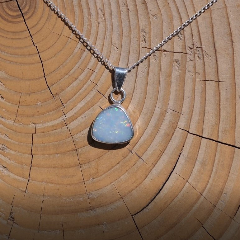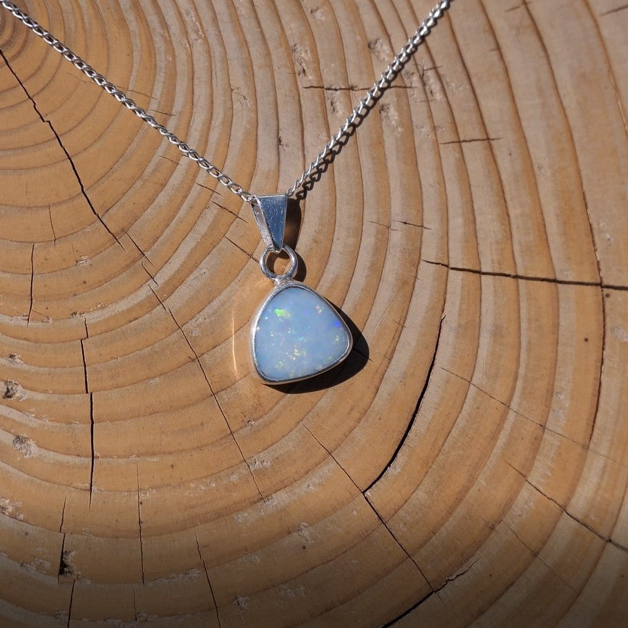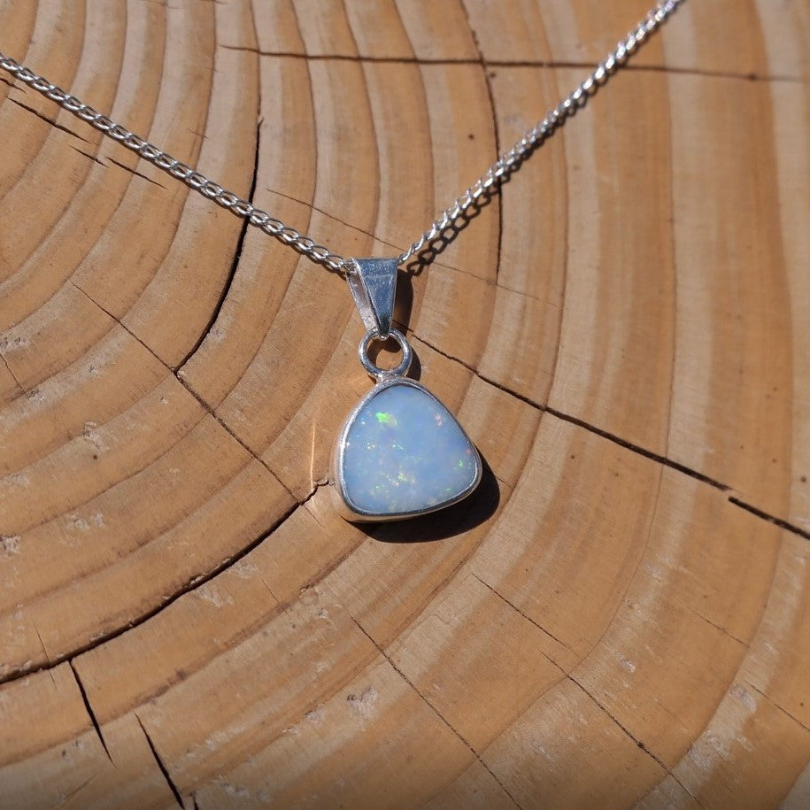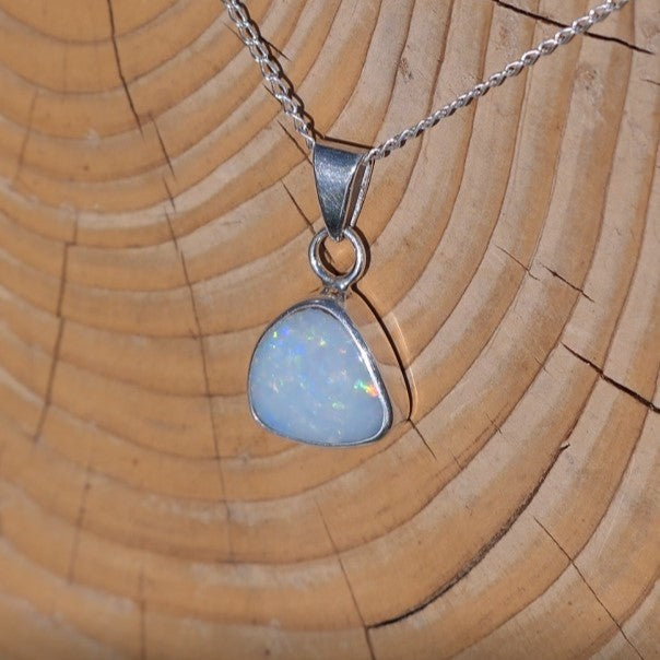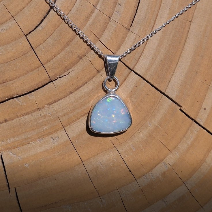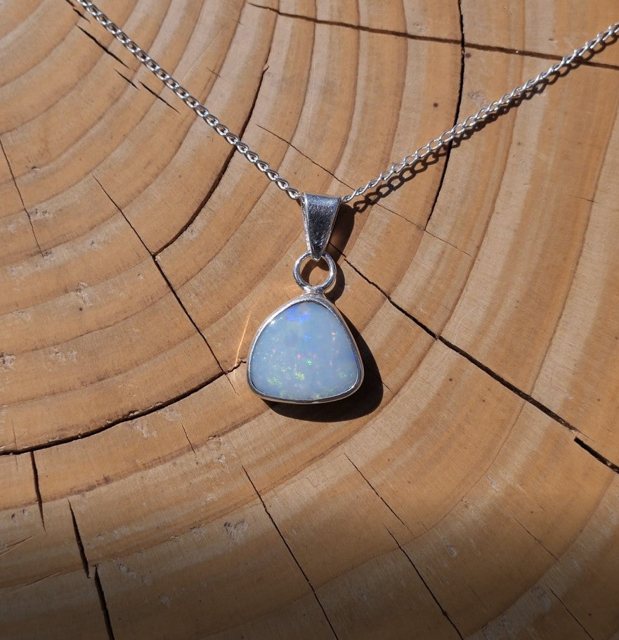 Silver opal pendant with white base Coober Pedy opal, bright multicoloured pinfire