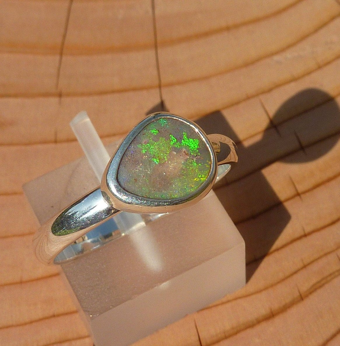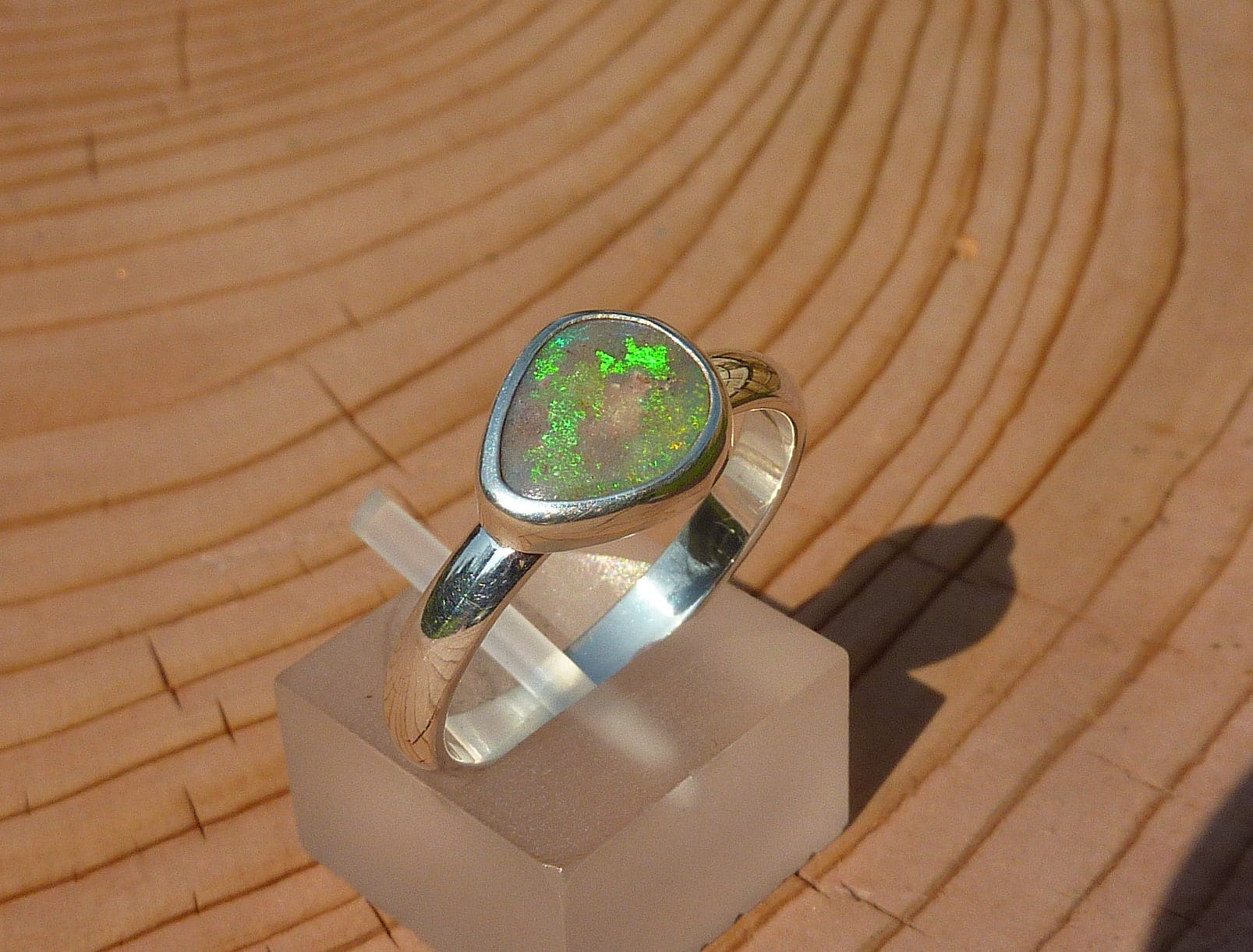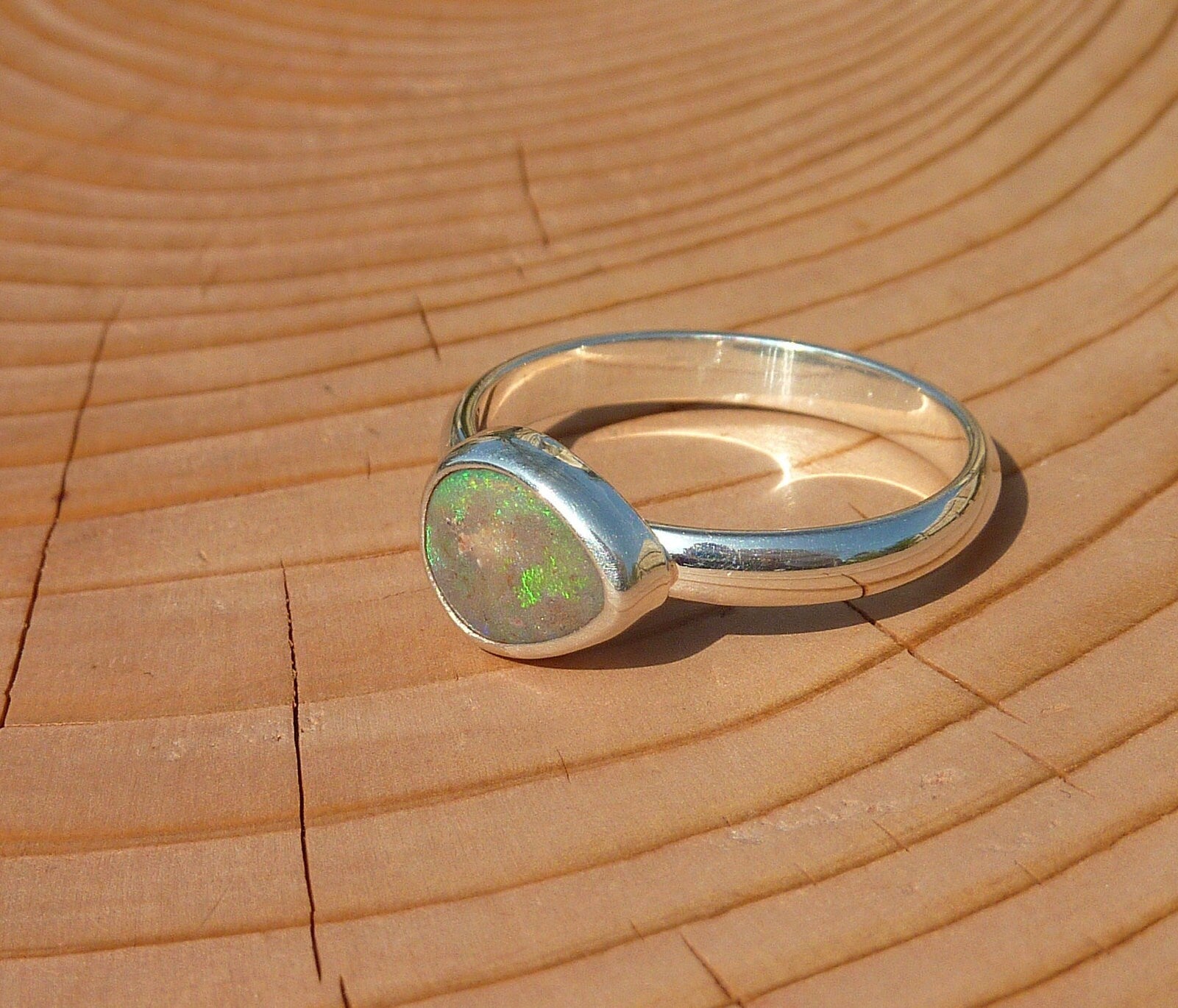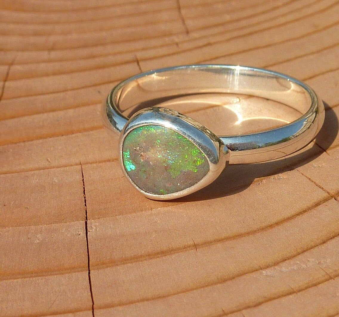 Silver opal ring, opal is a solid from Coober Pedy, South Australia.