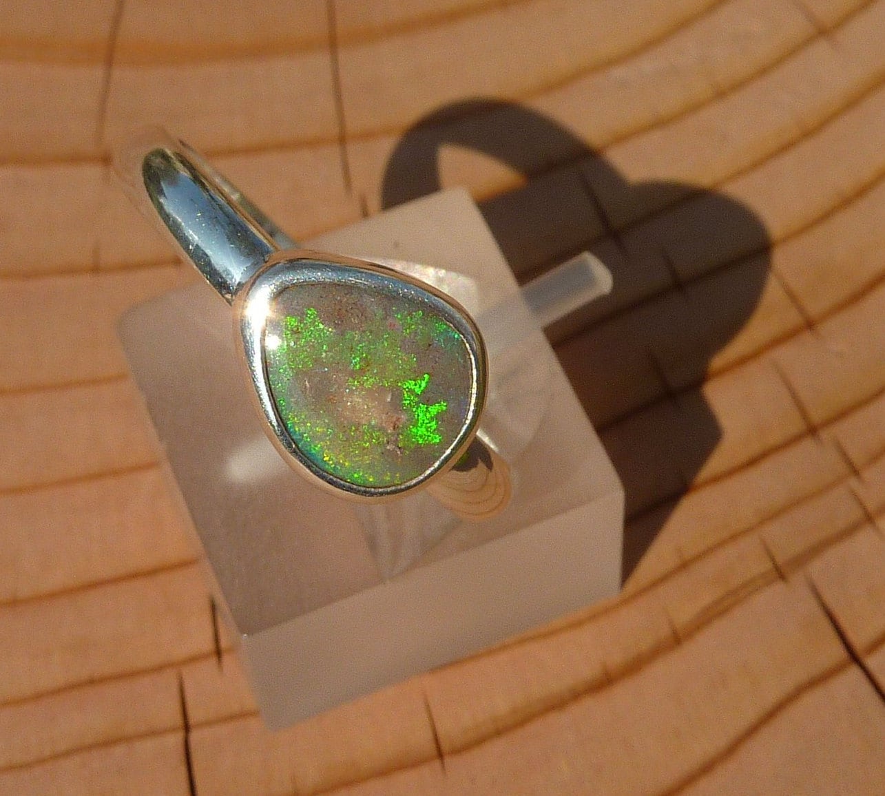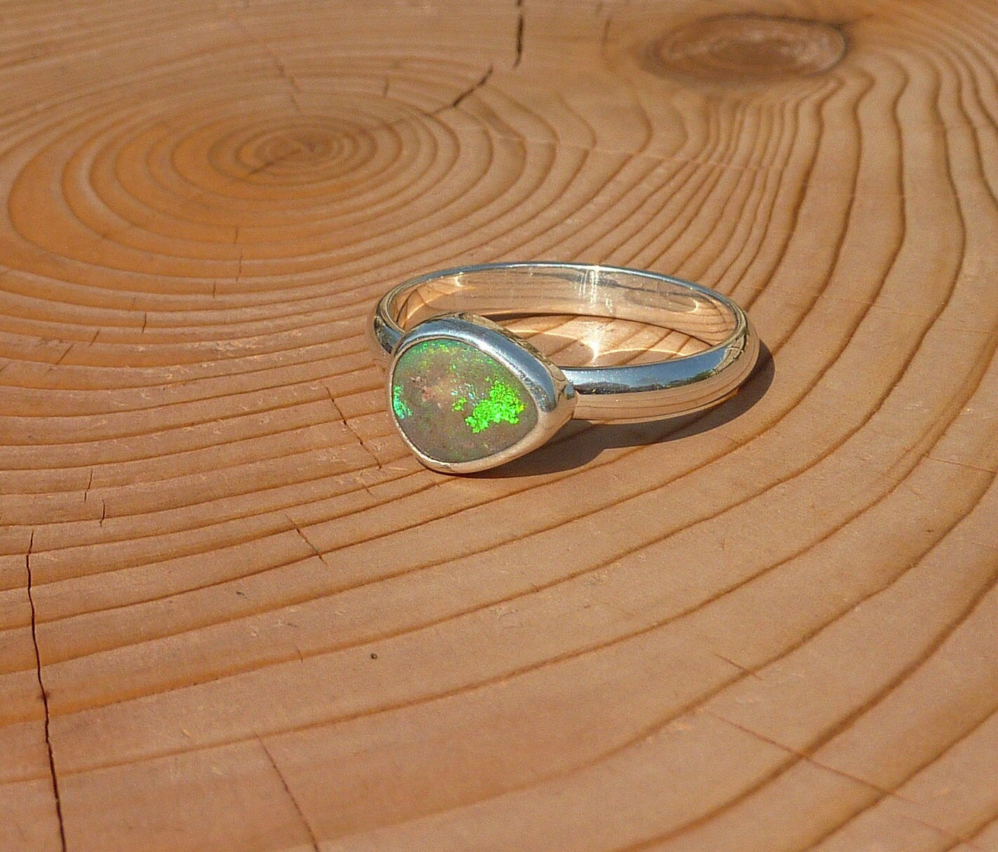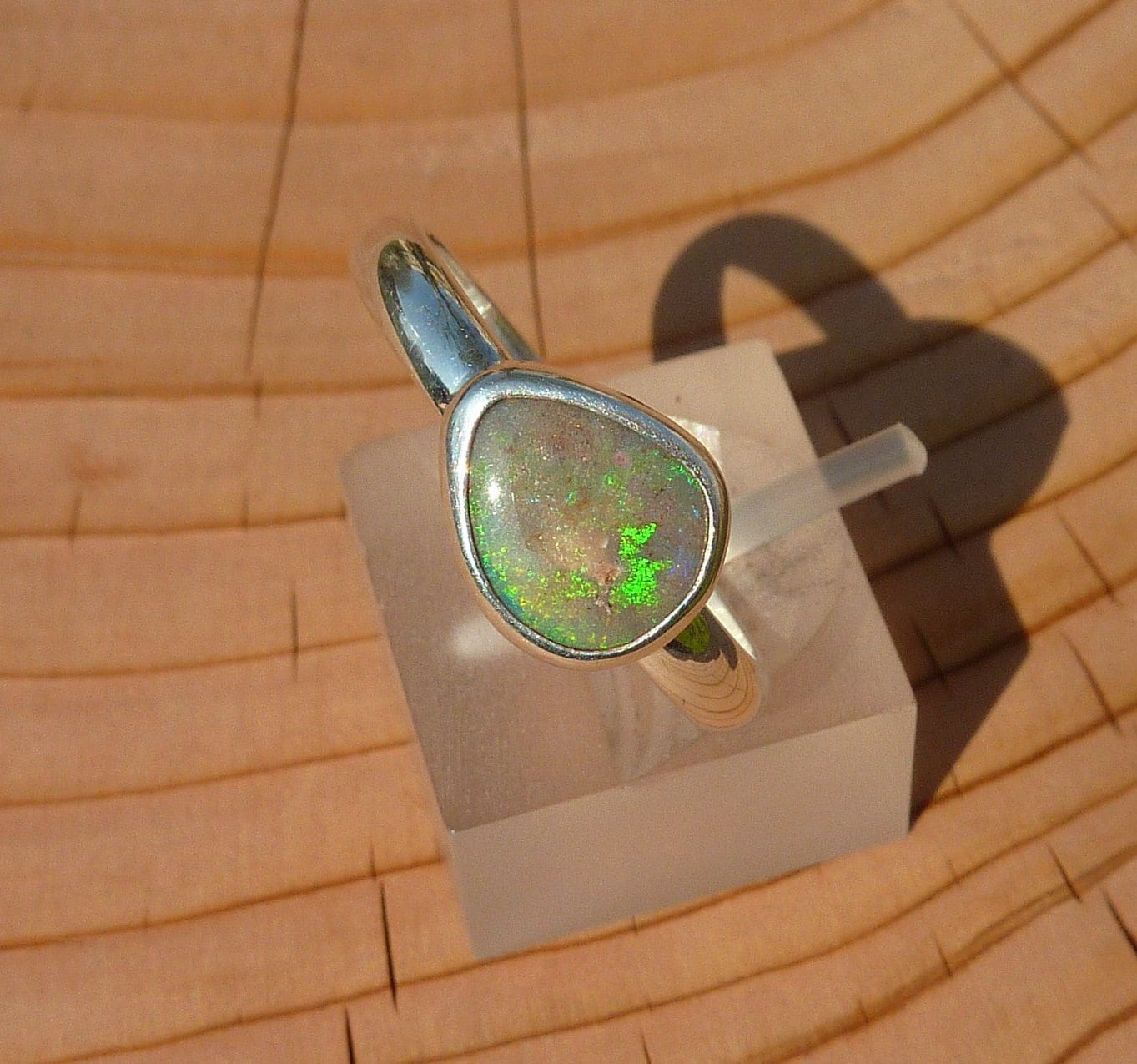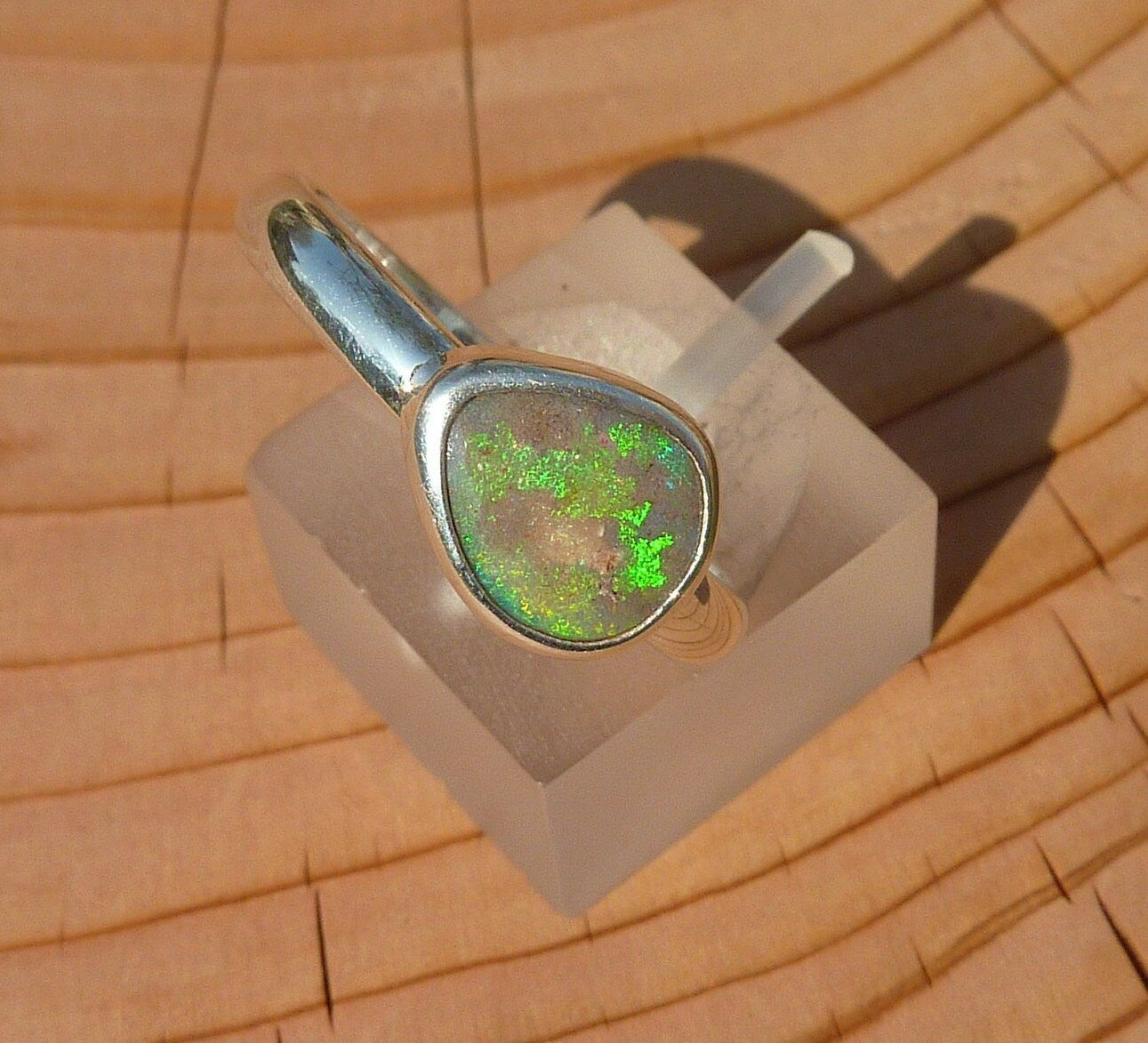 Silver opal ring, opal is a solid from Coober Pedy, South Australia.
