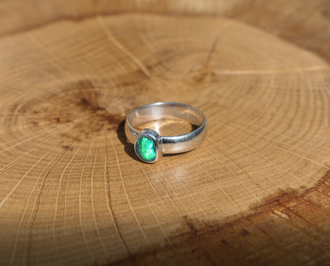 Silver opal ring.