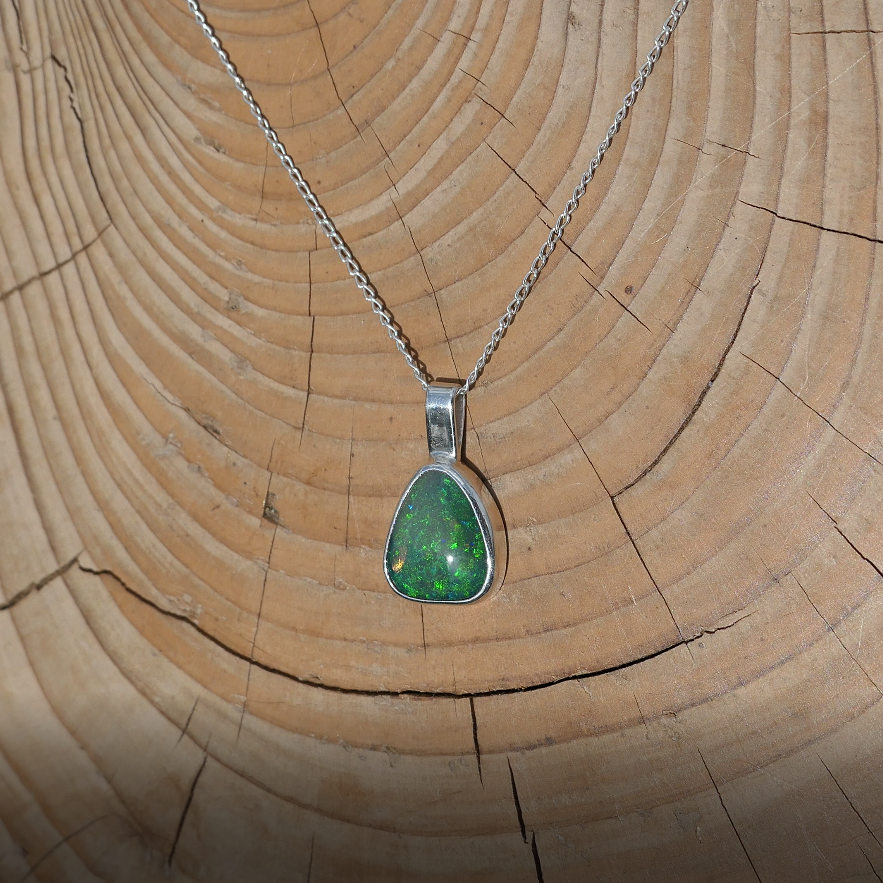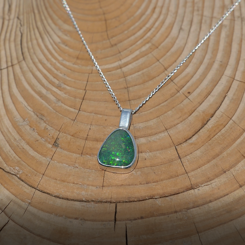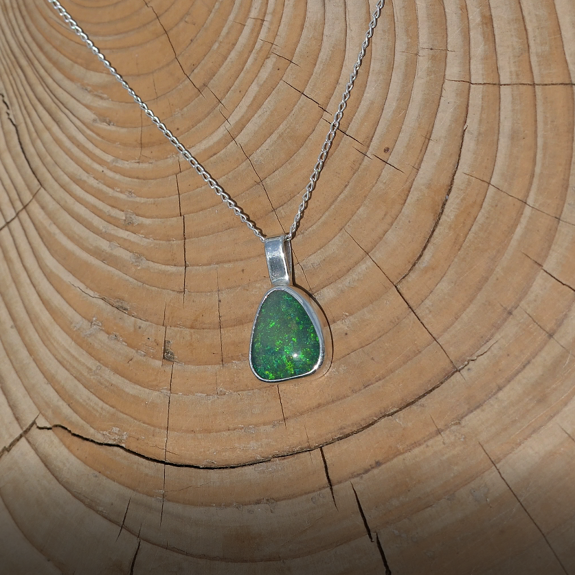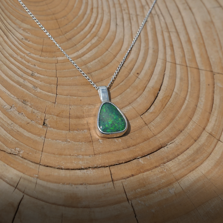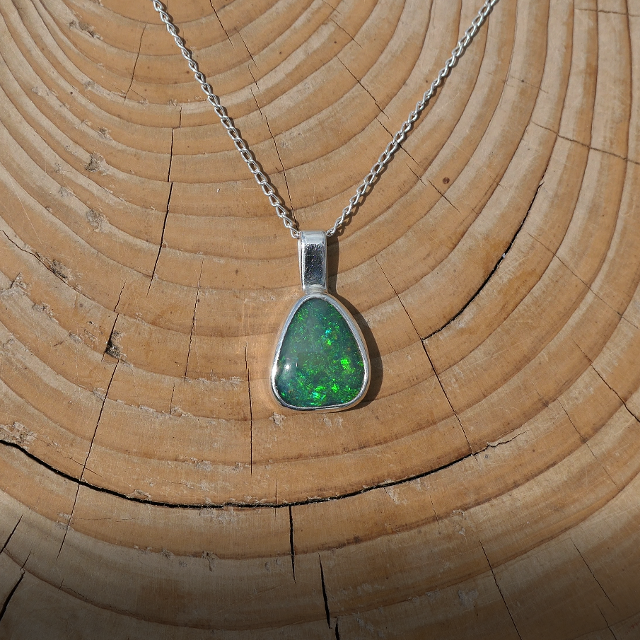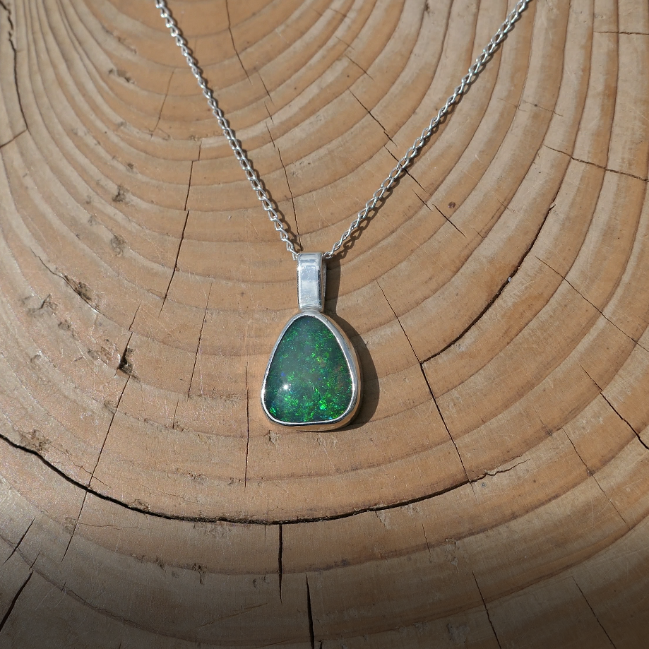 Silver pendant with solid Andamooka opal
