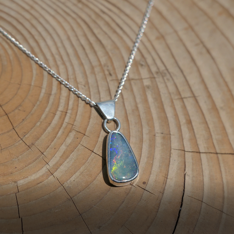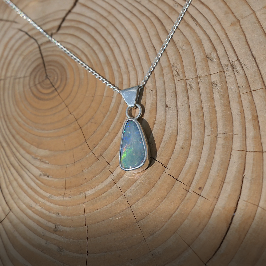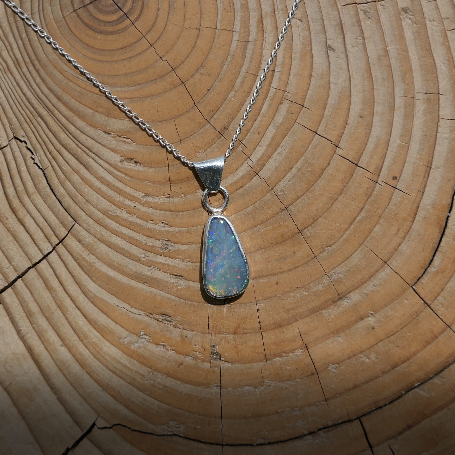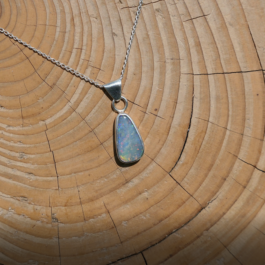 Silver pendant with solid Mintubi opal, approx 1ct, 12x6mm.