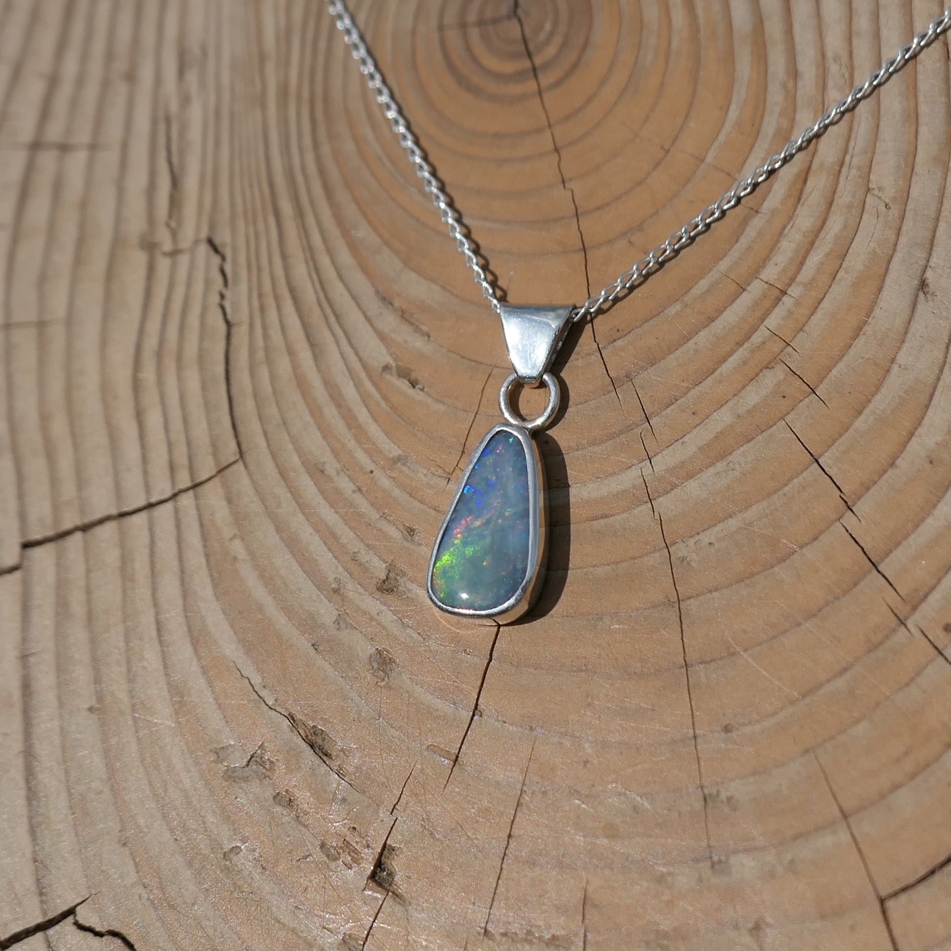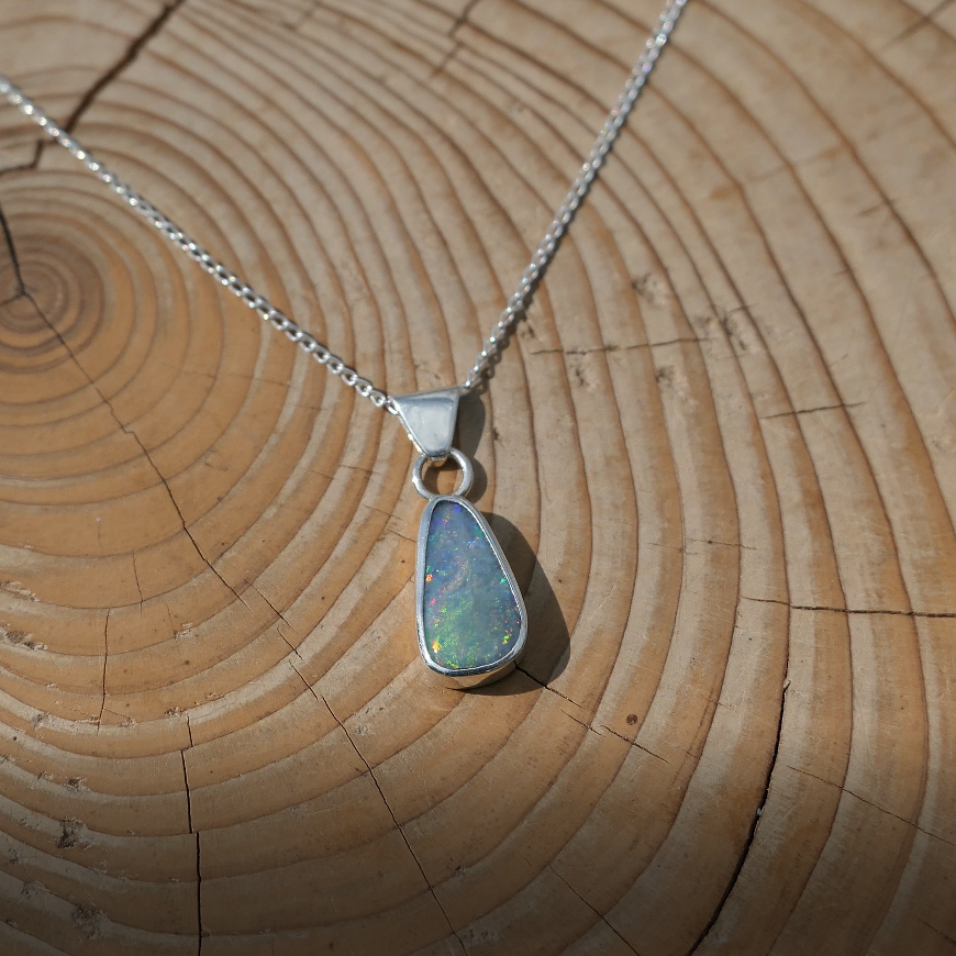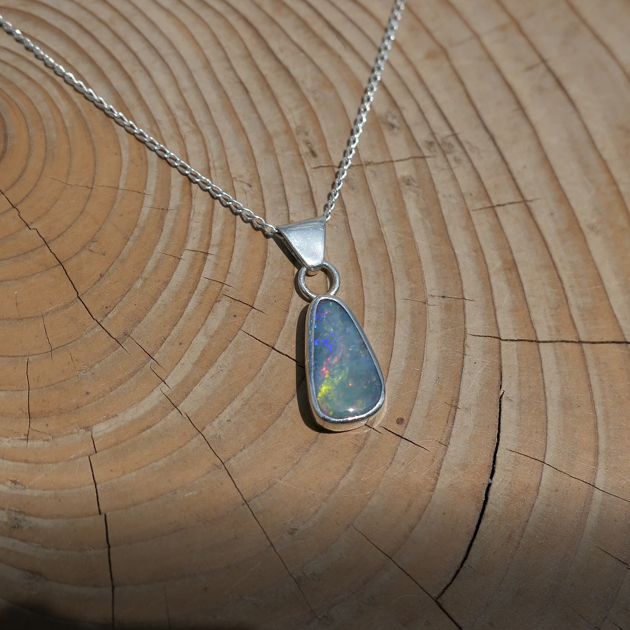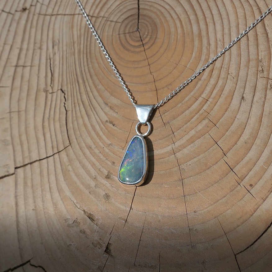 Silver pendant with solid Mintubi opal, approx 1ct, 12x6mm.