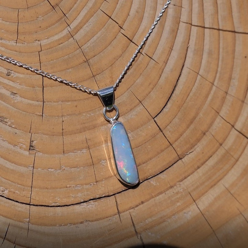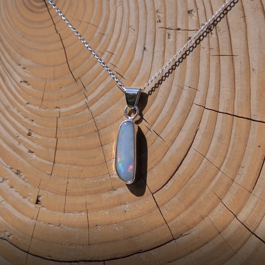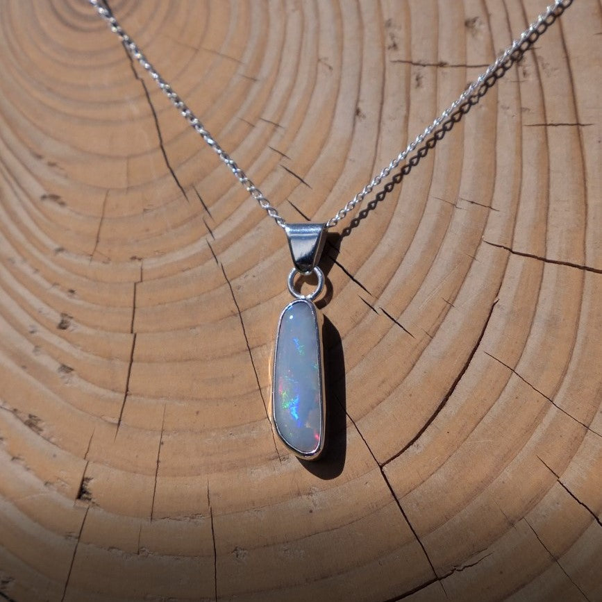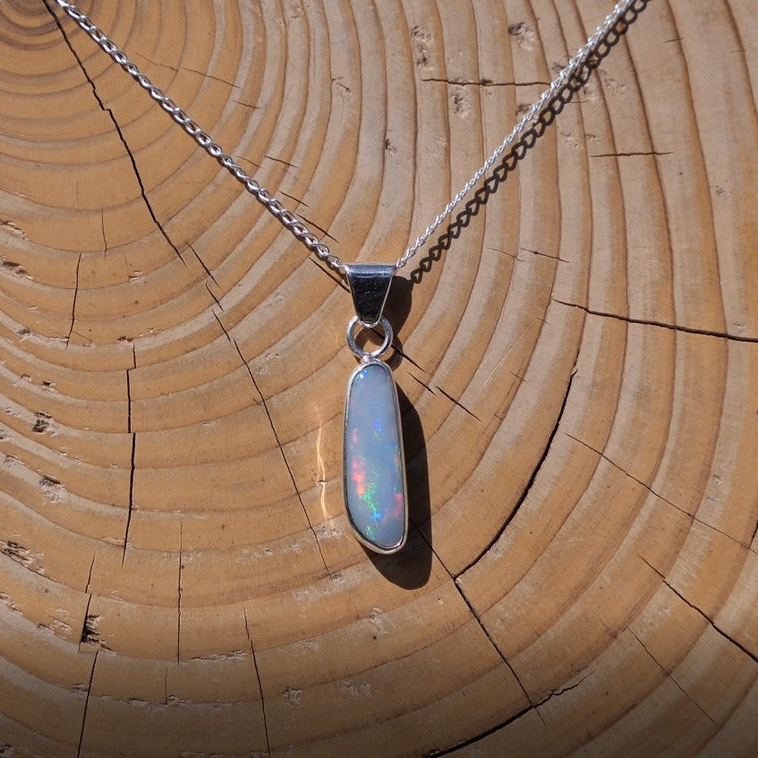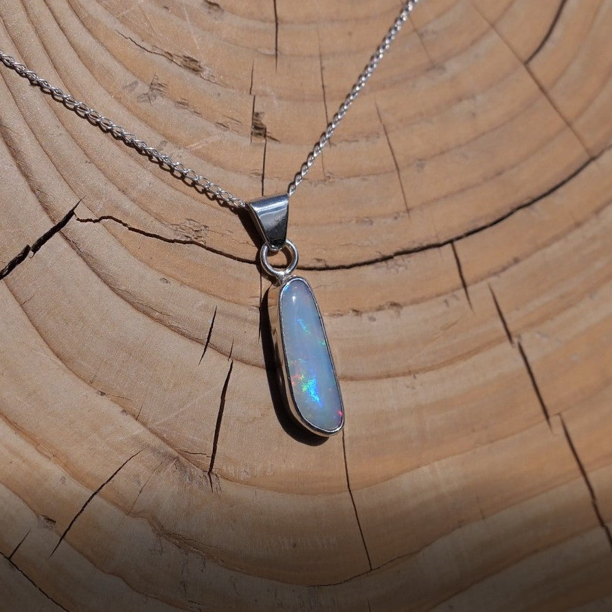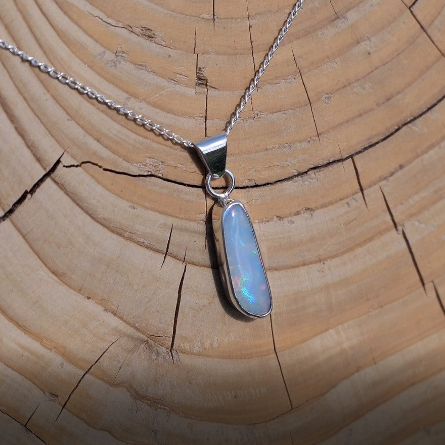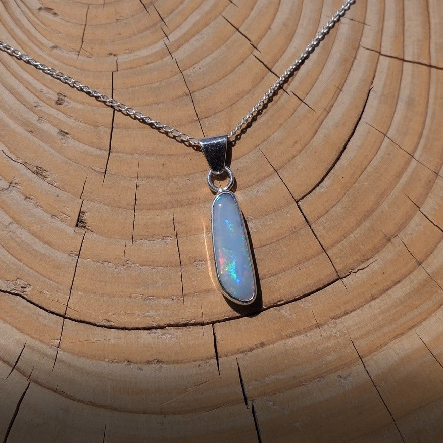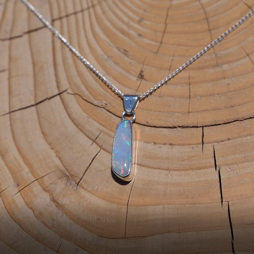 Silver pendant with white base Coober Pedy opal.