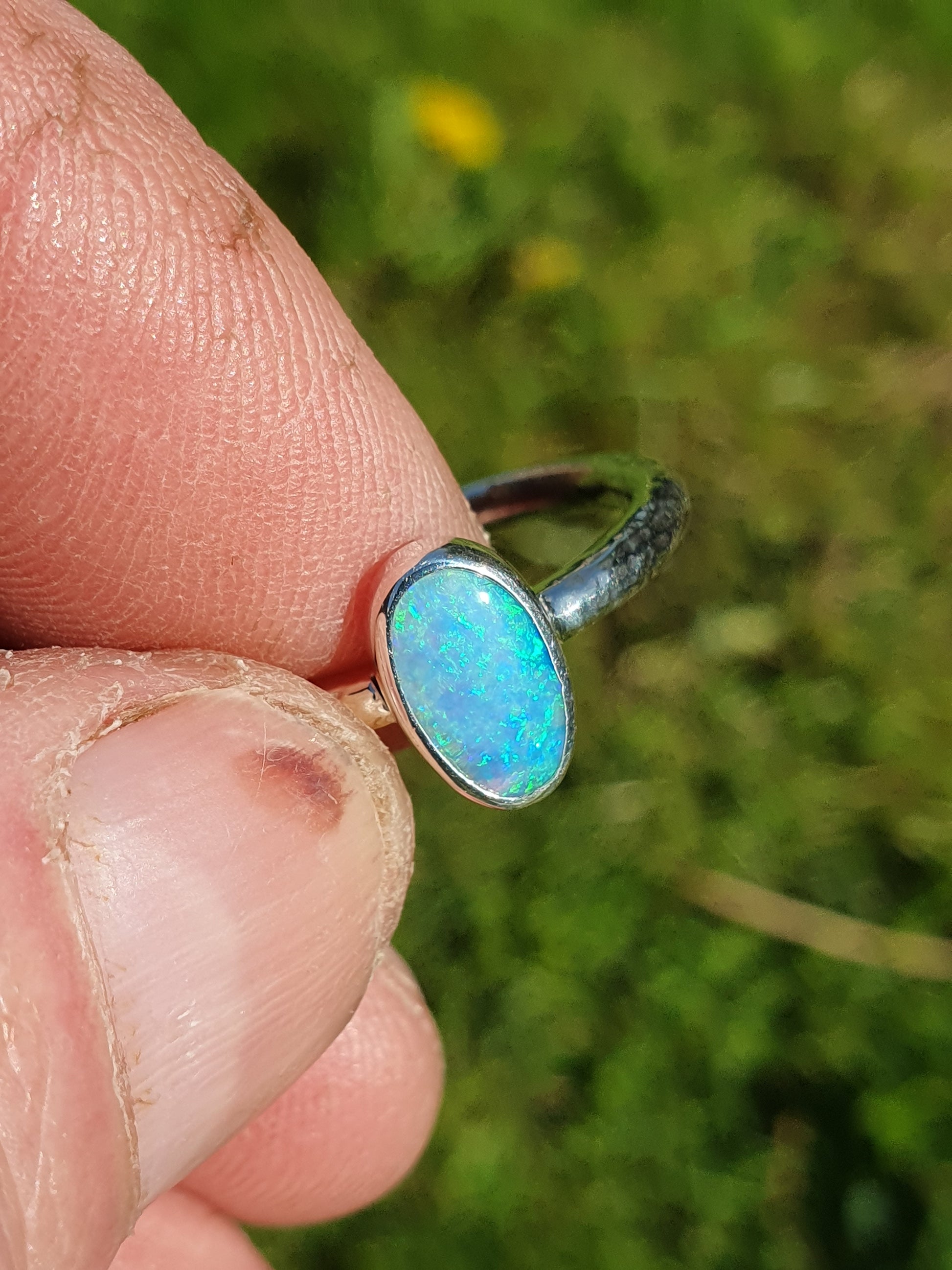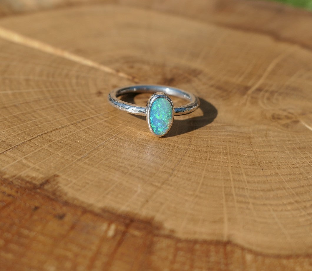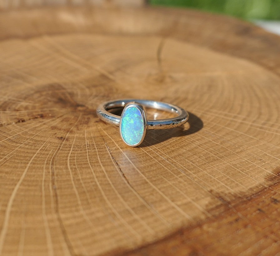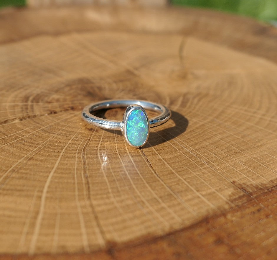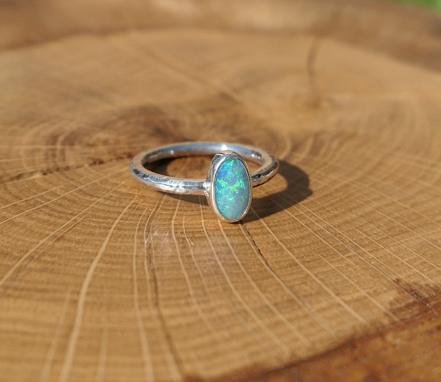 Silver ring with a solid Lightning Ridge crystal opal